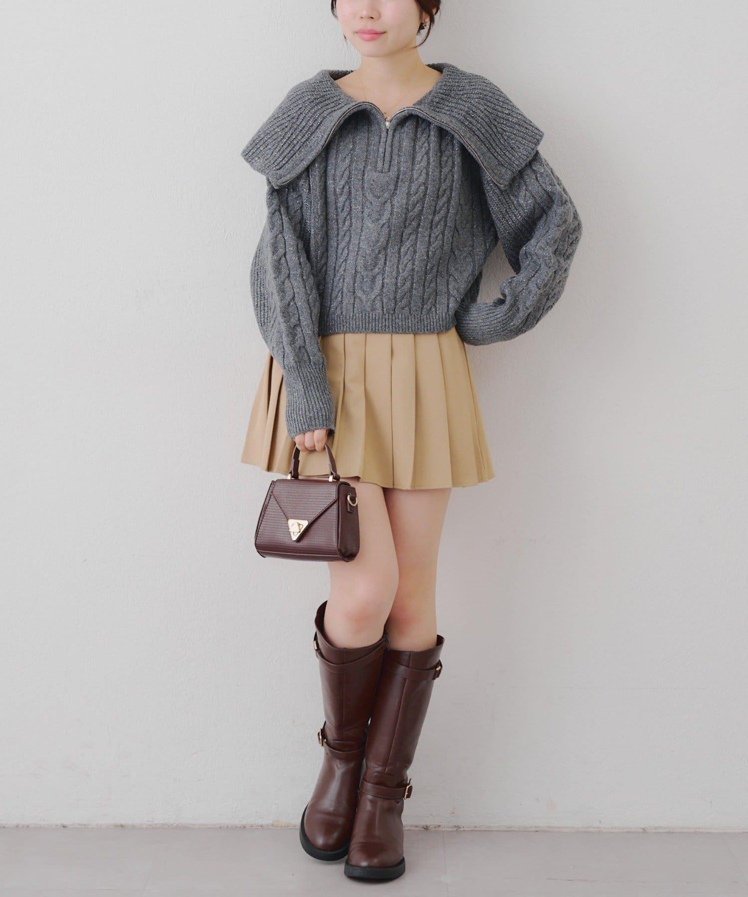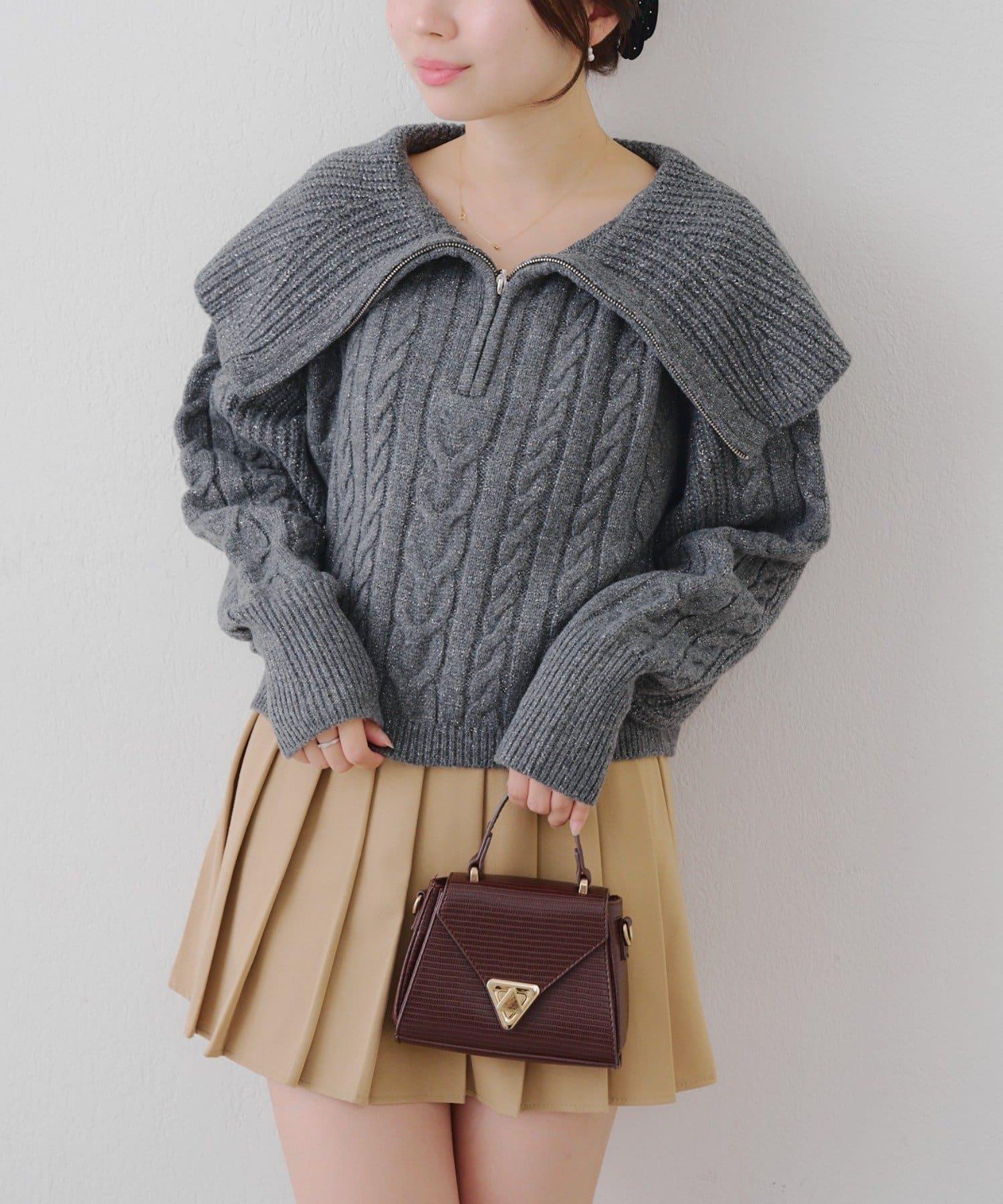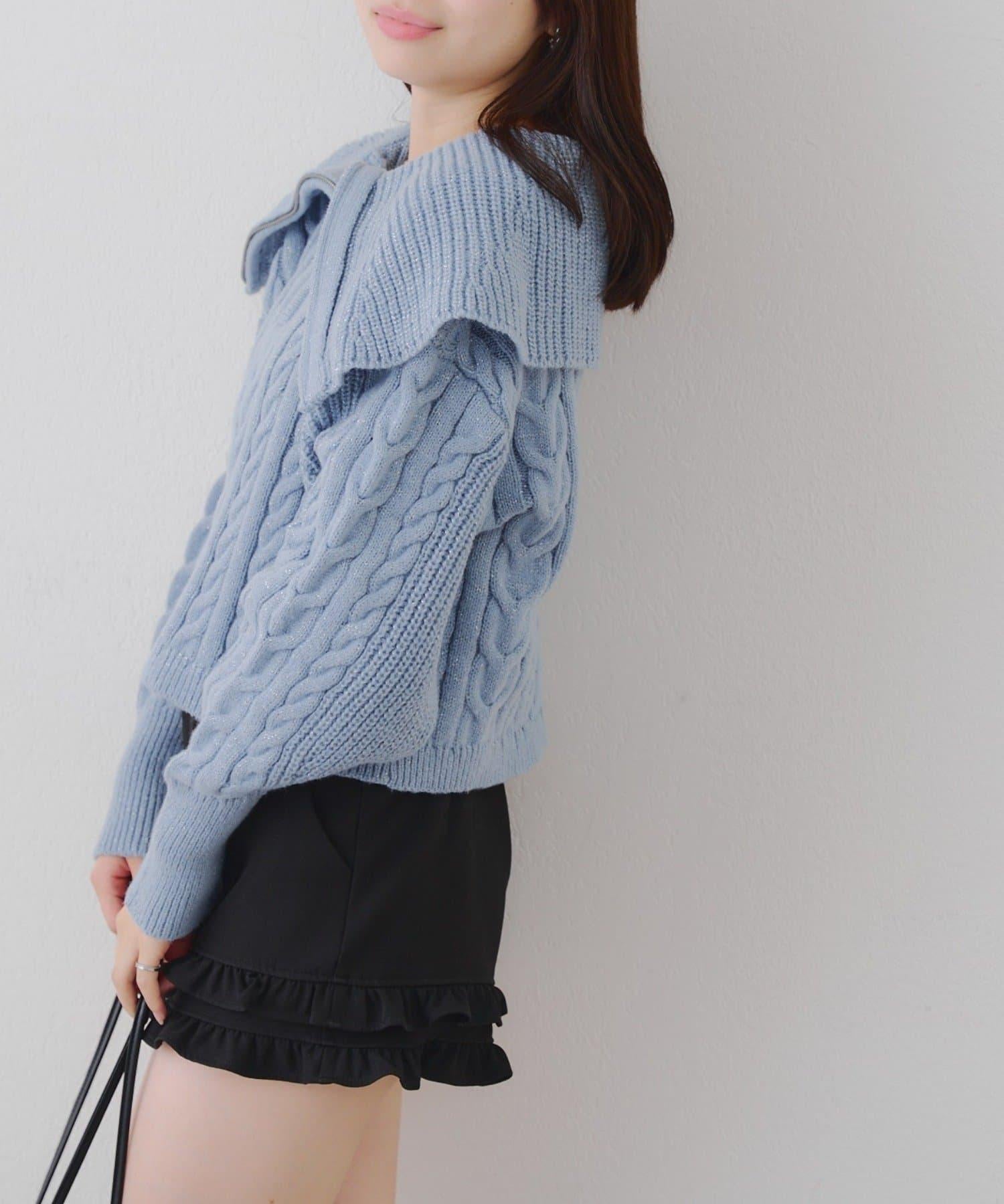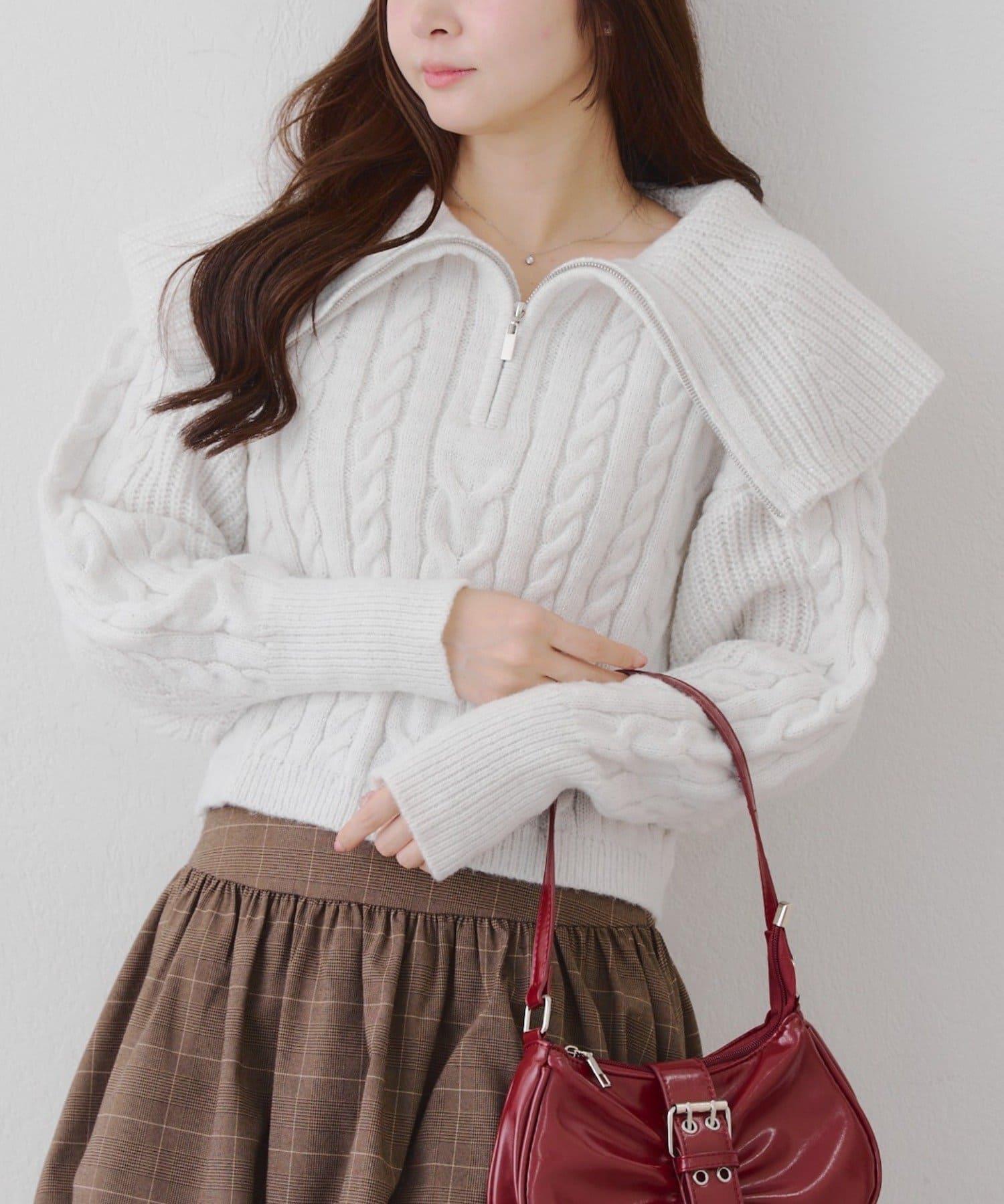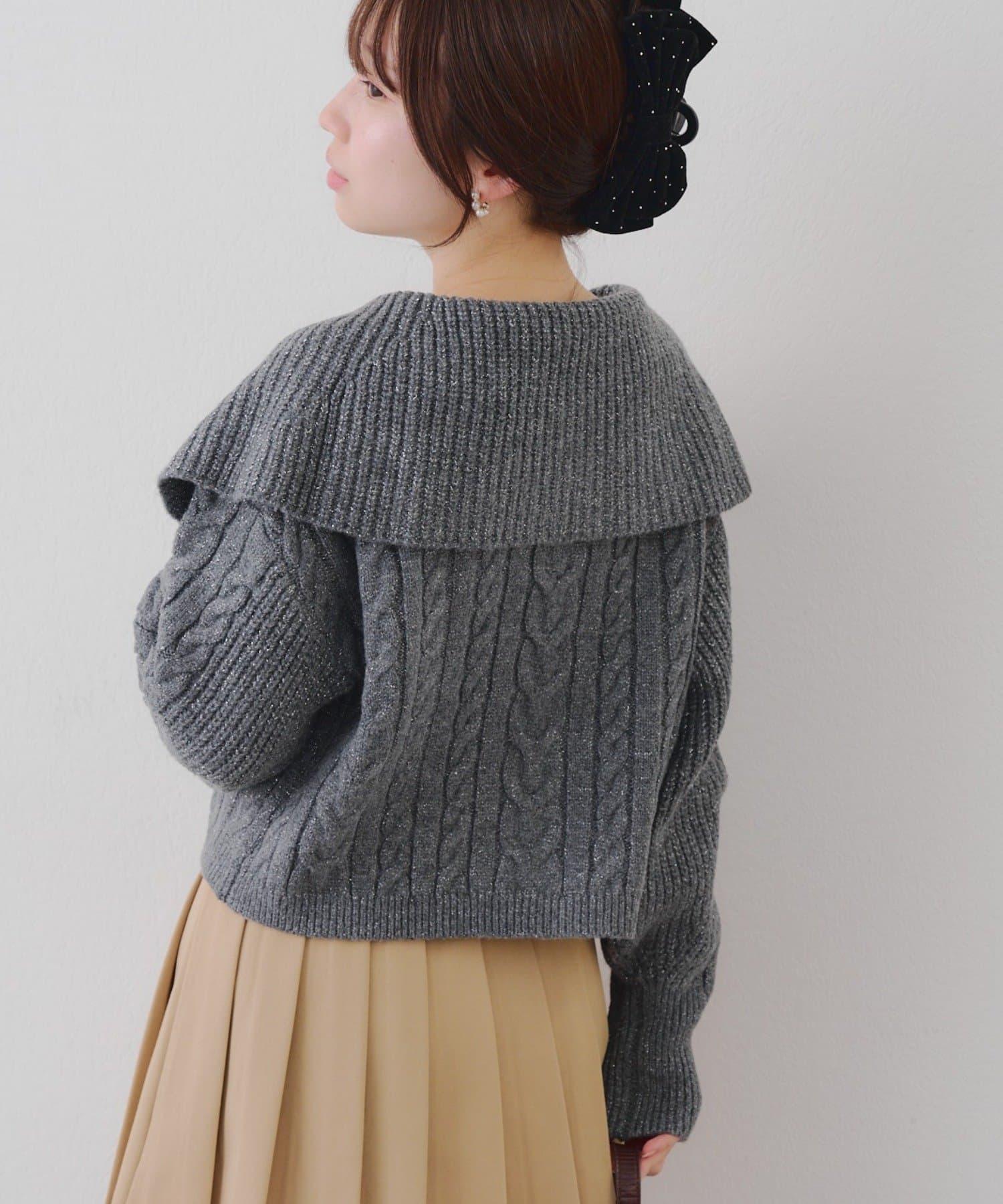 這款針織上衣採用大領設計,具有出色的小臉效果。