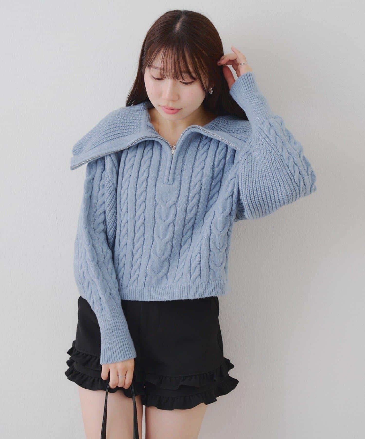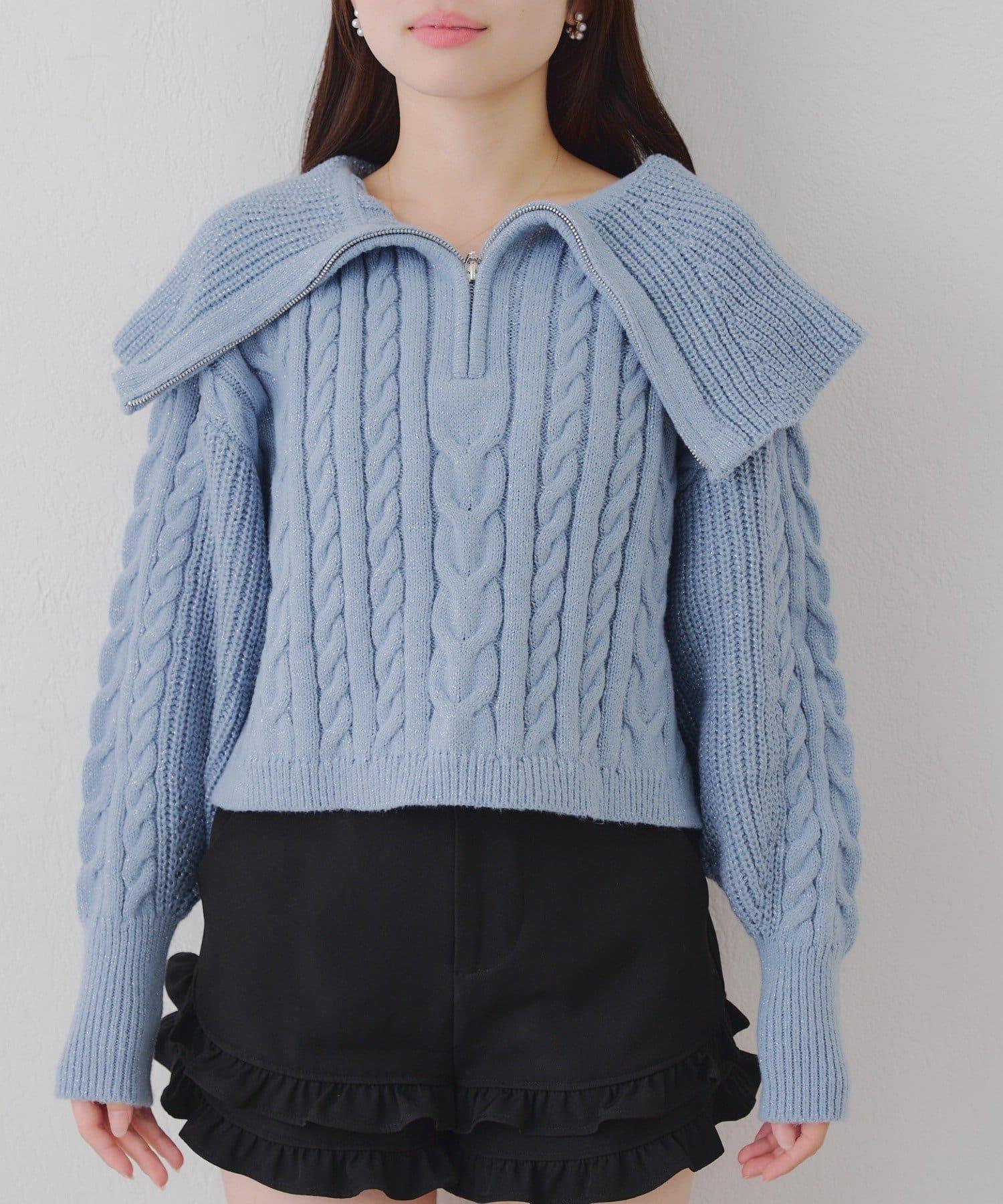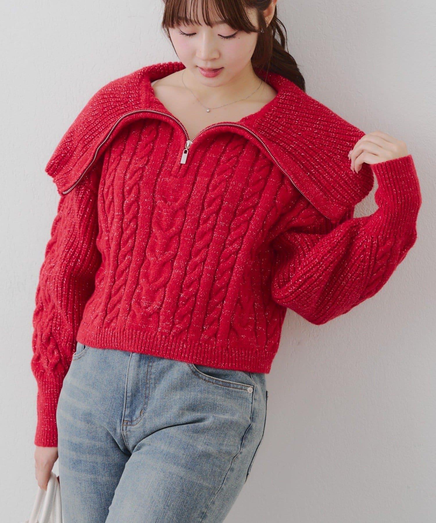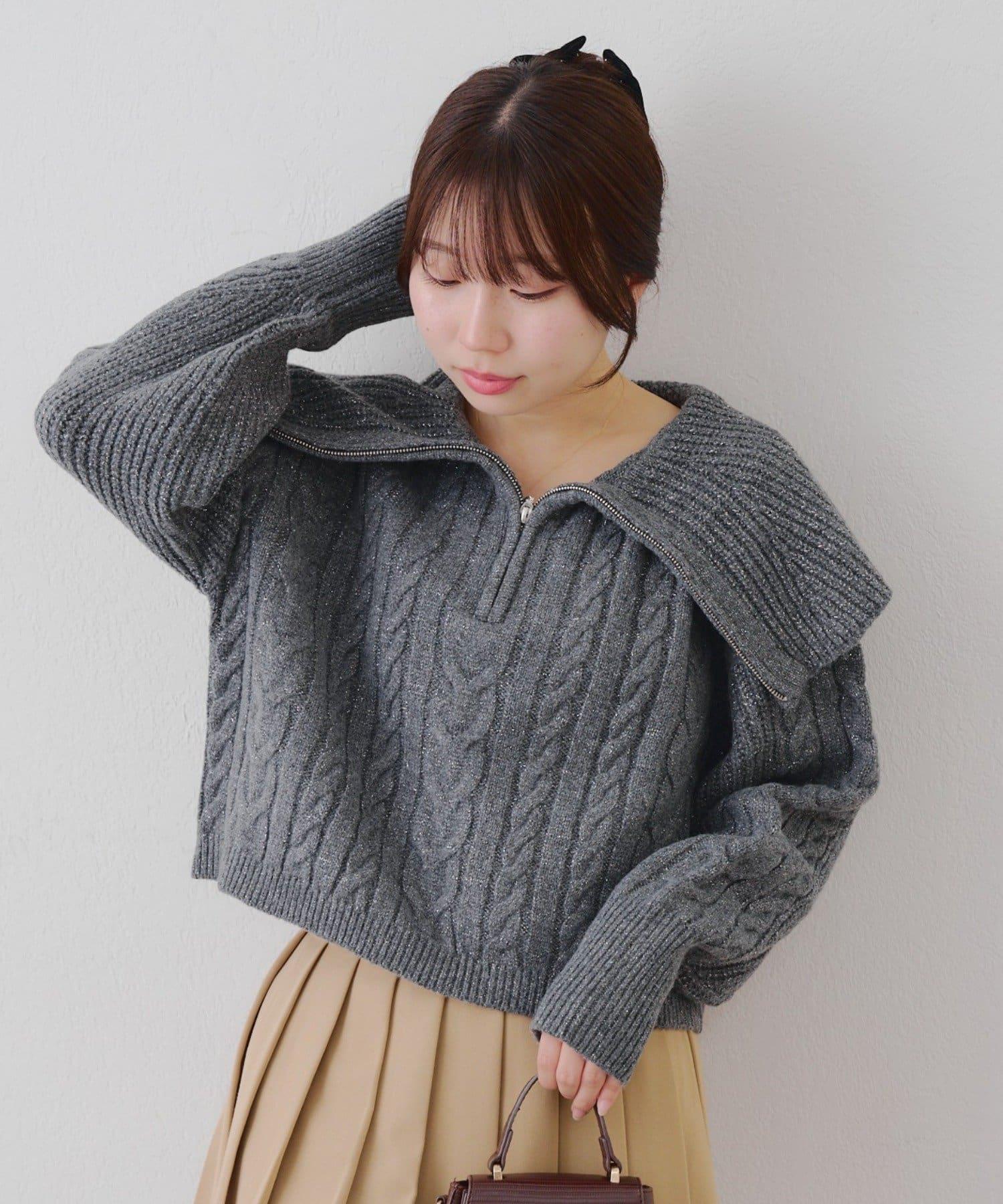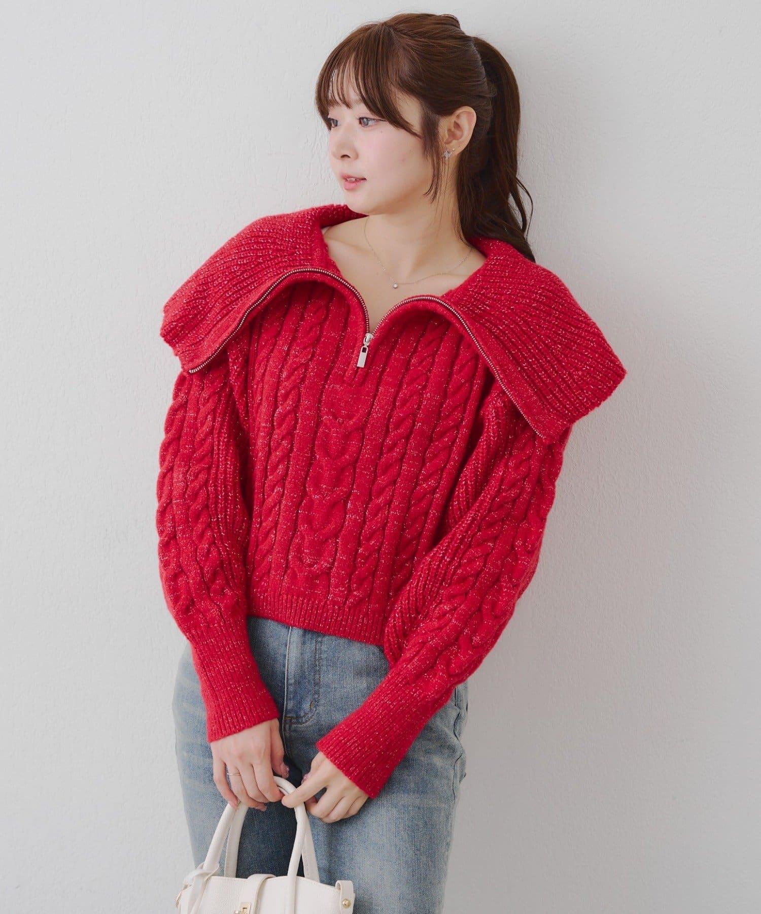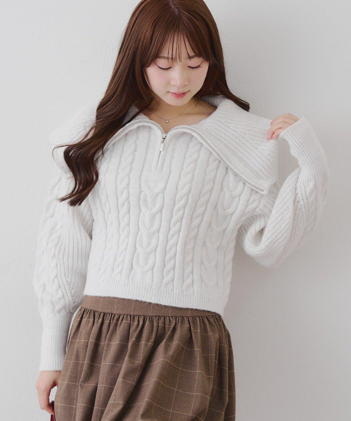 這款針織上衣採用大領設計,具有出色的小臉效果。