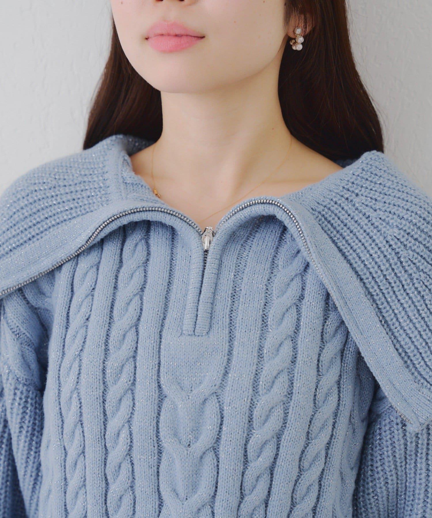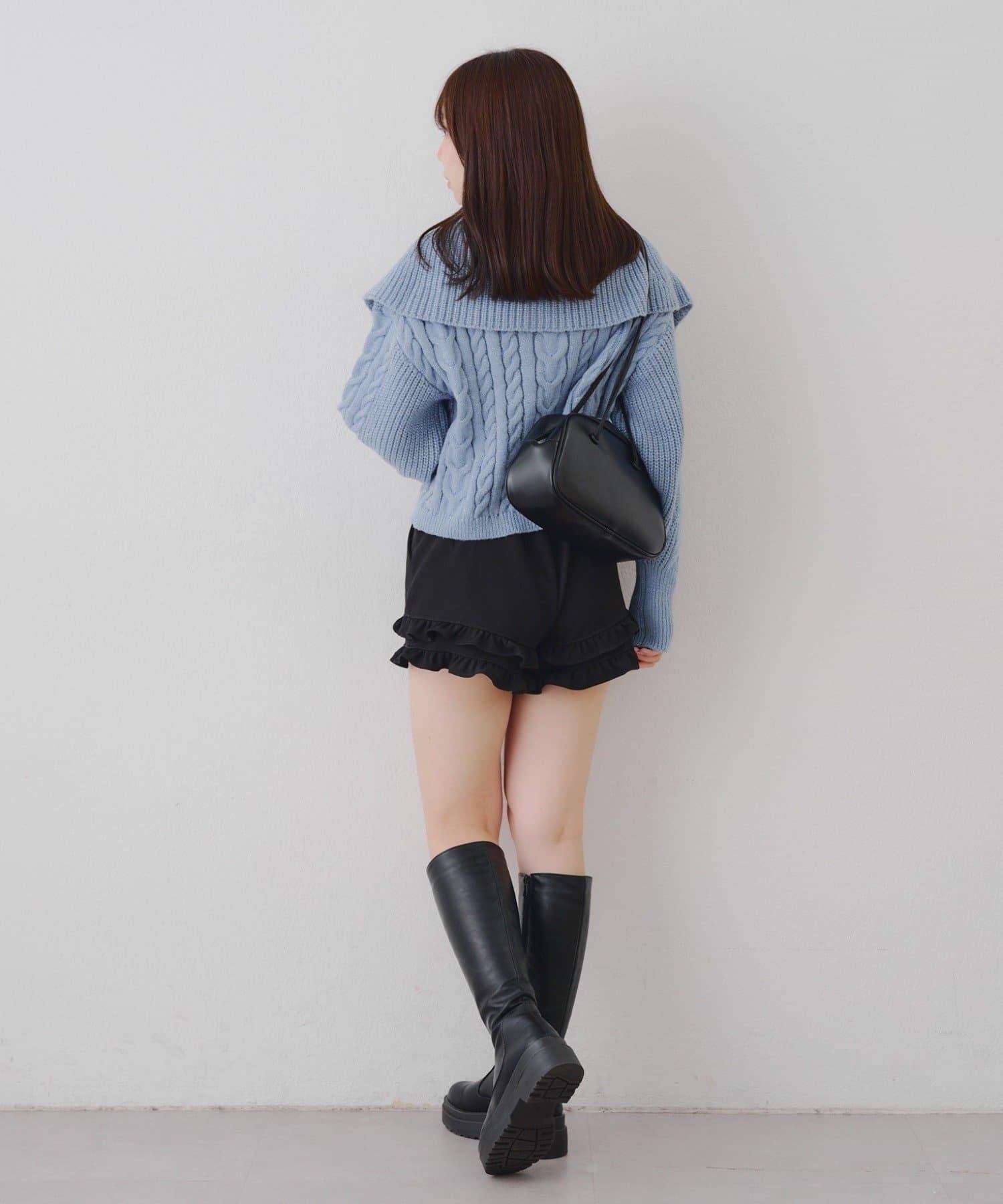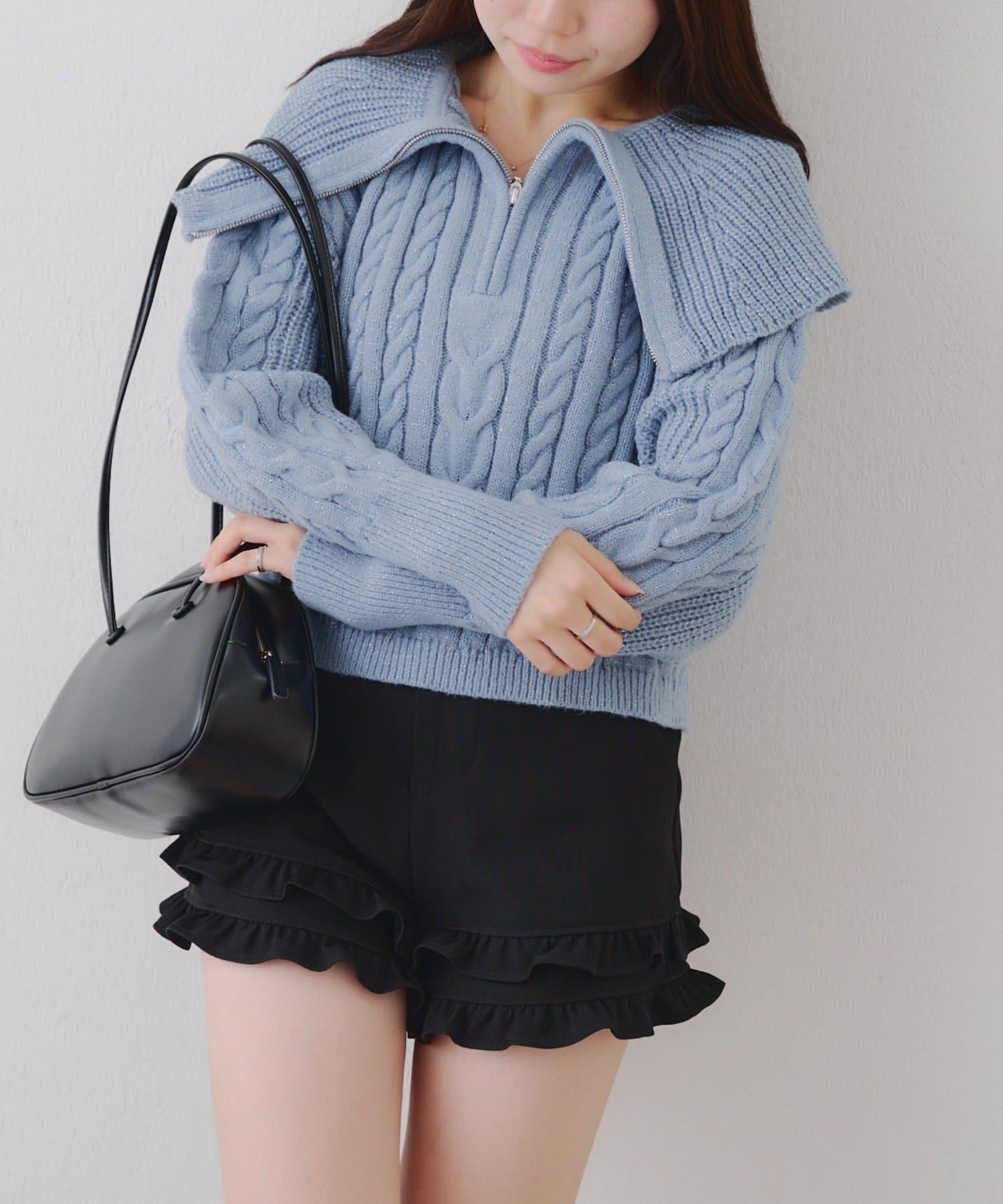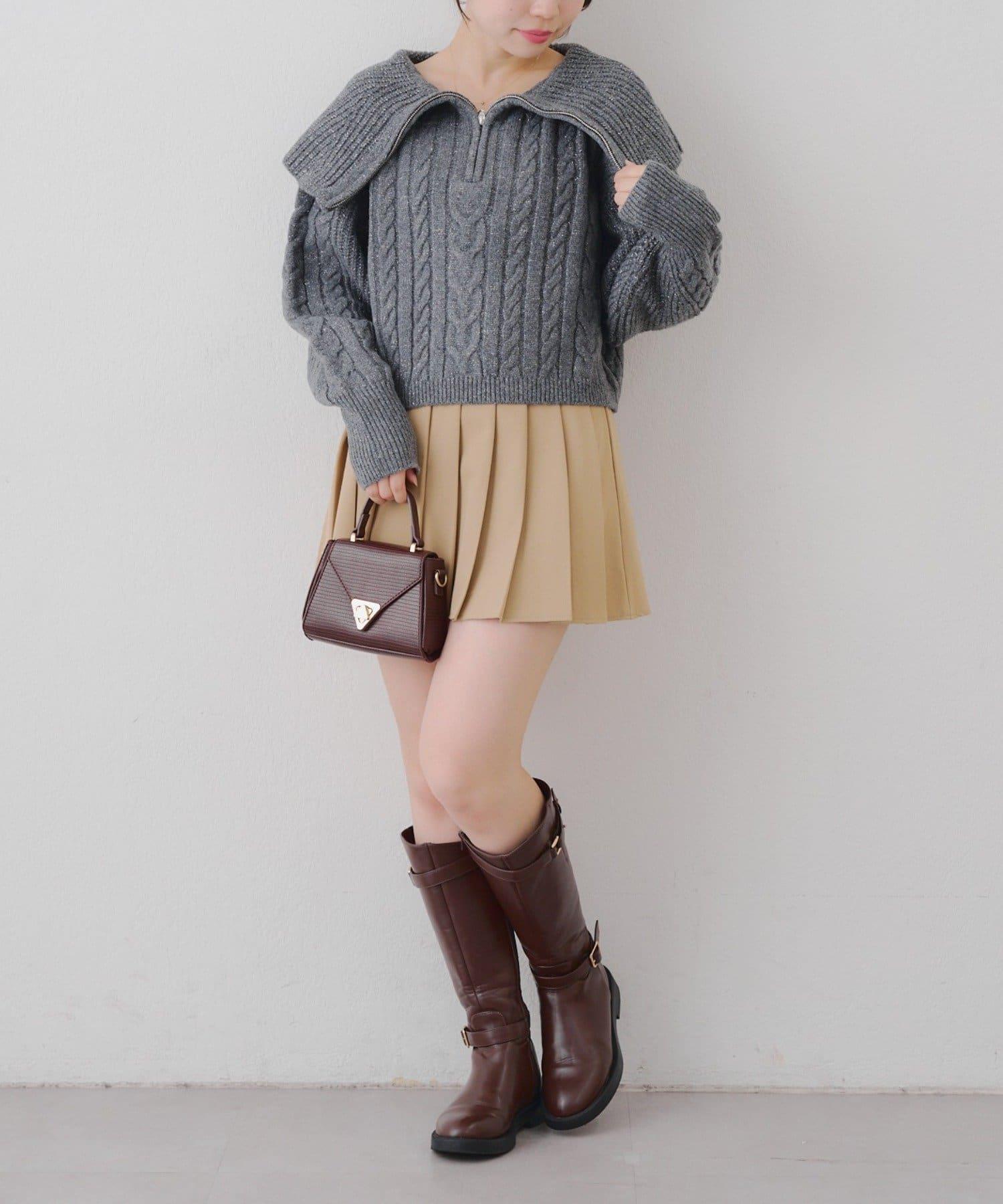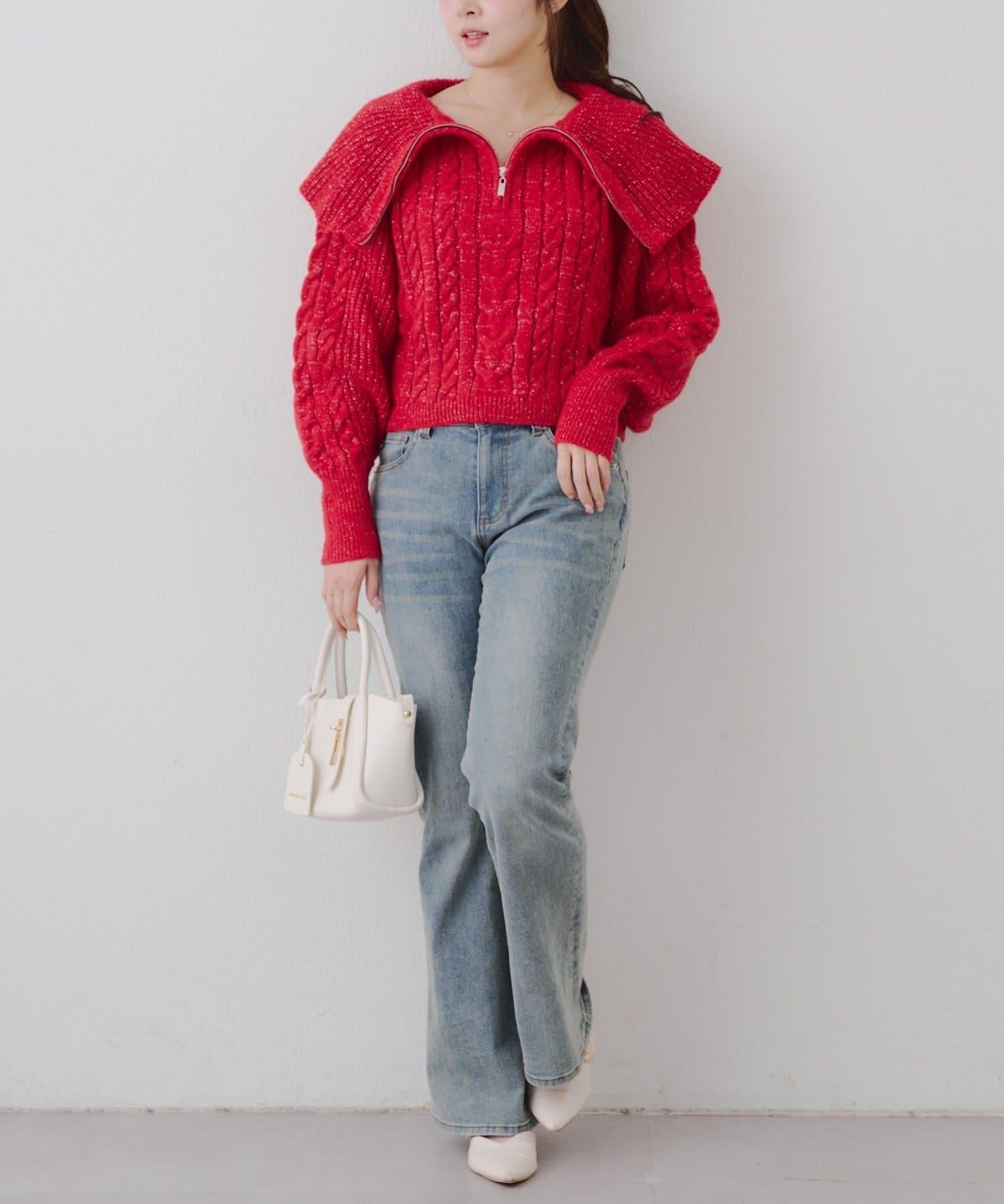 這款針織上衣採用大領設計,具有出色的小臉效果。