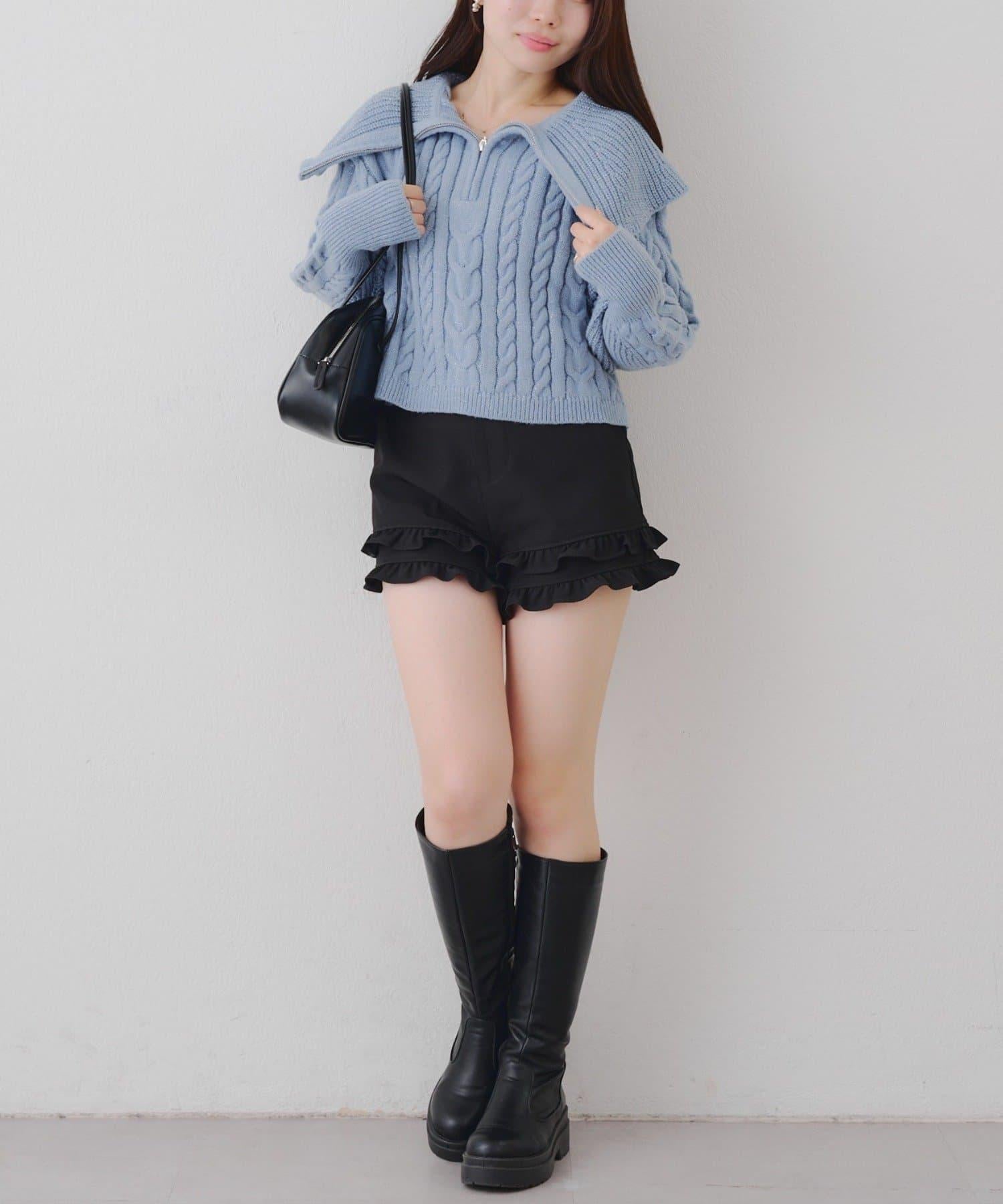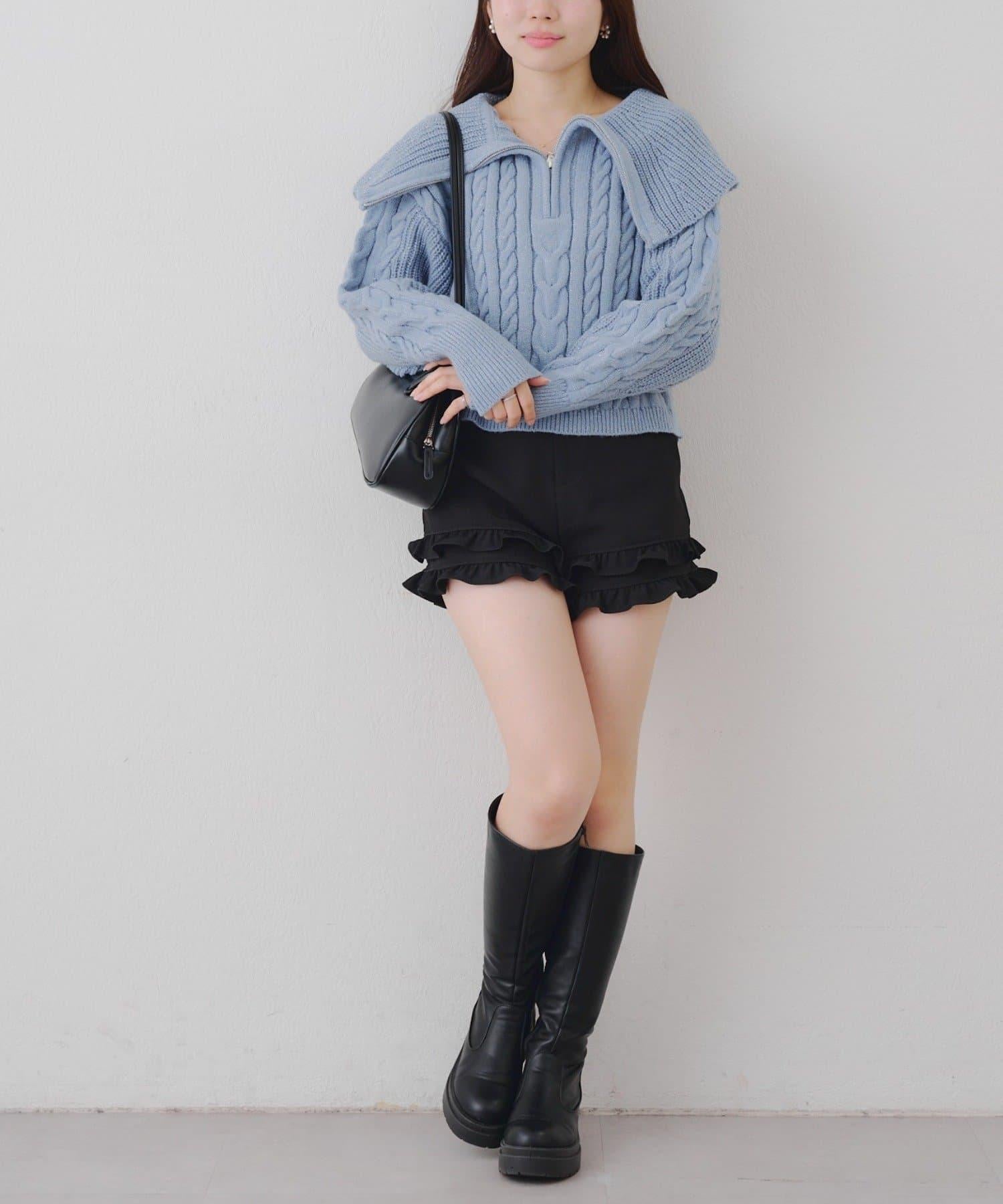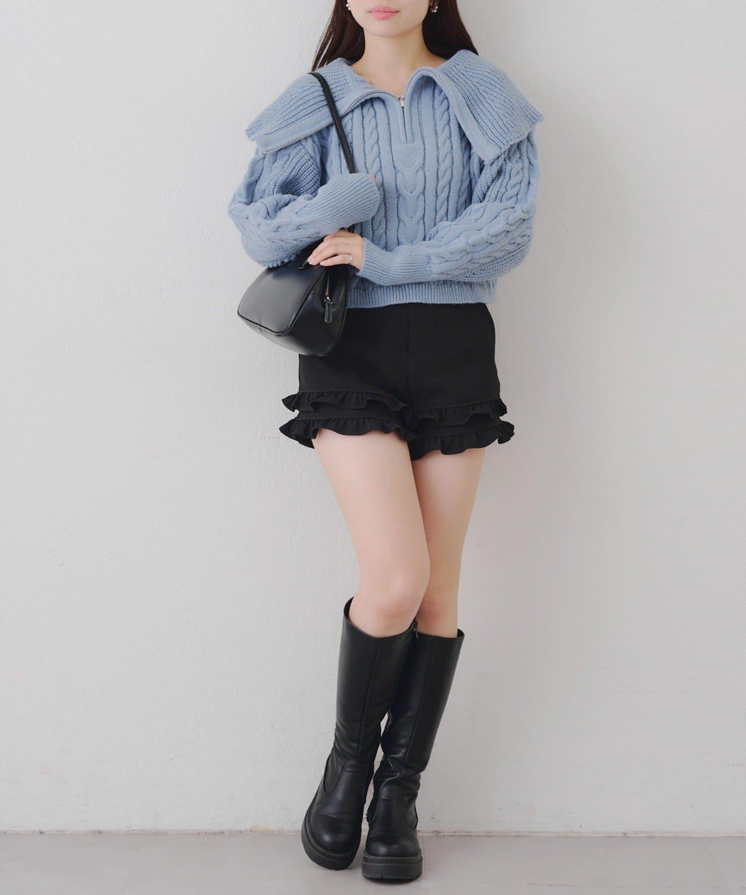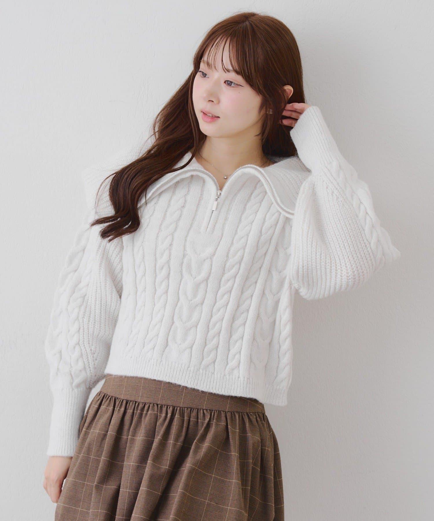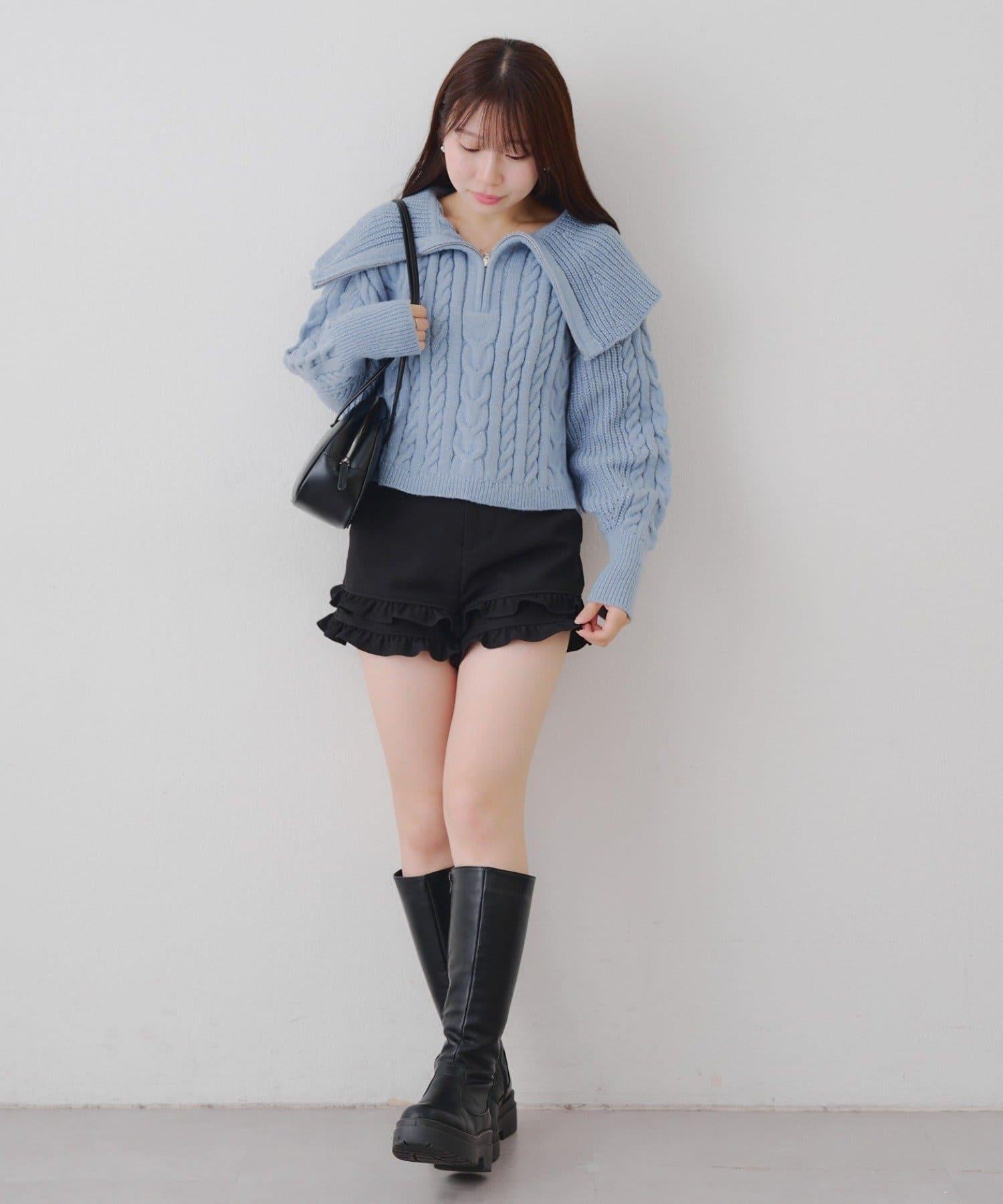 這款針織上衣採用大領設計,具有出色的小臉效果。