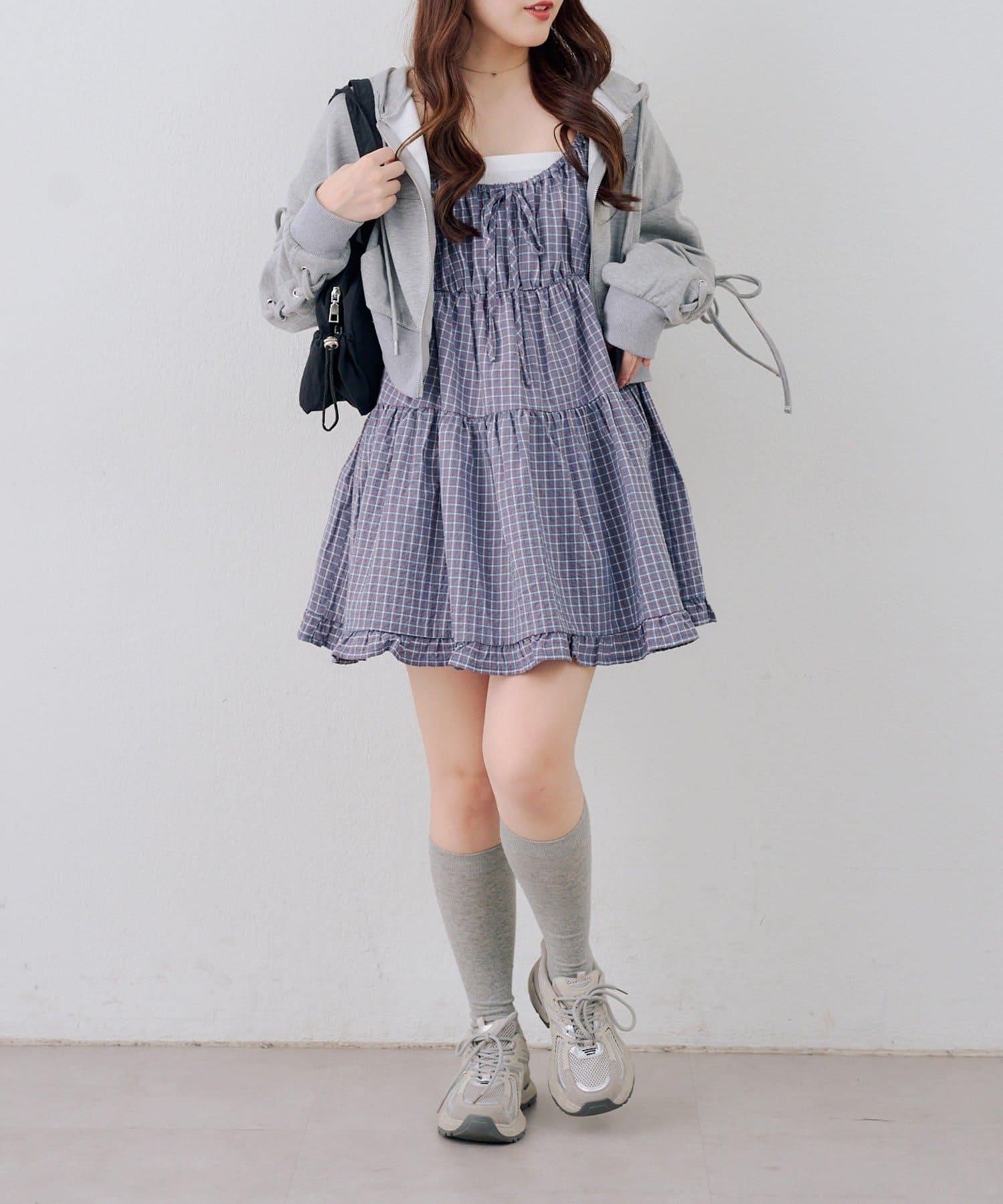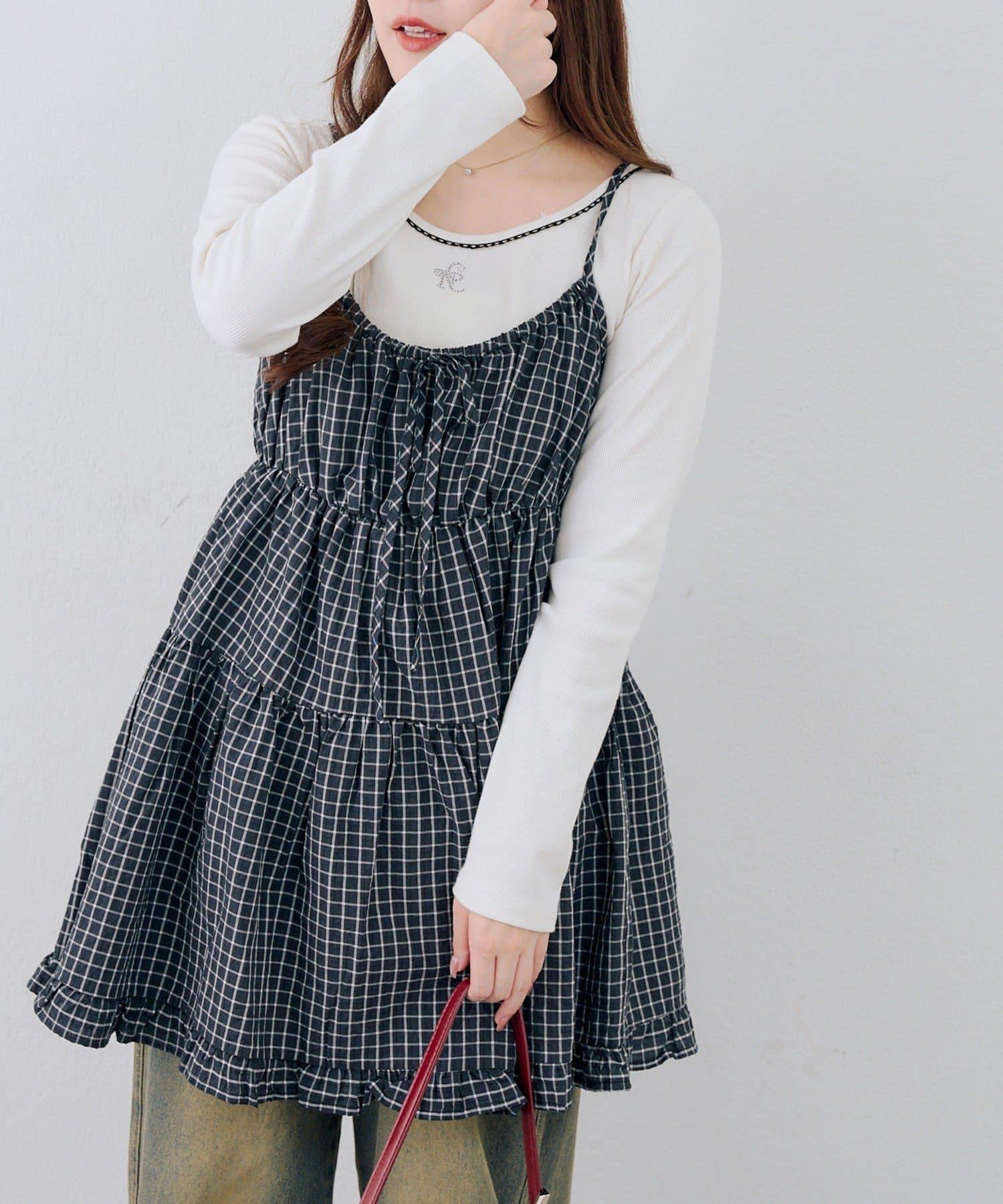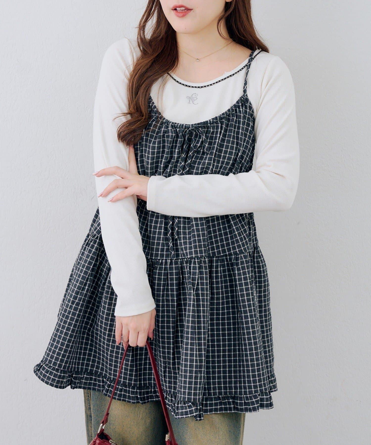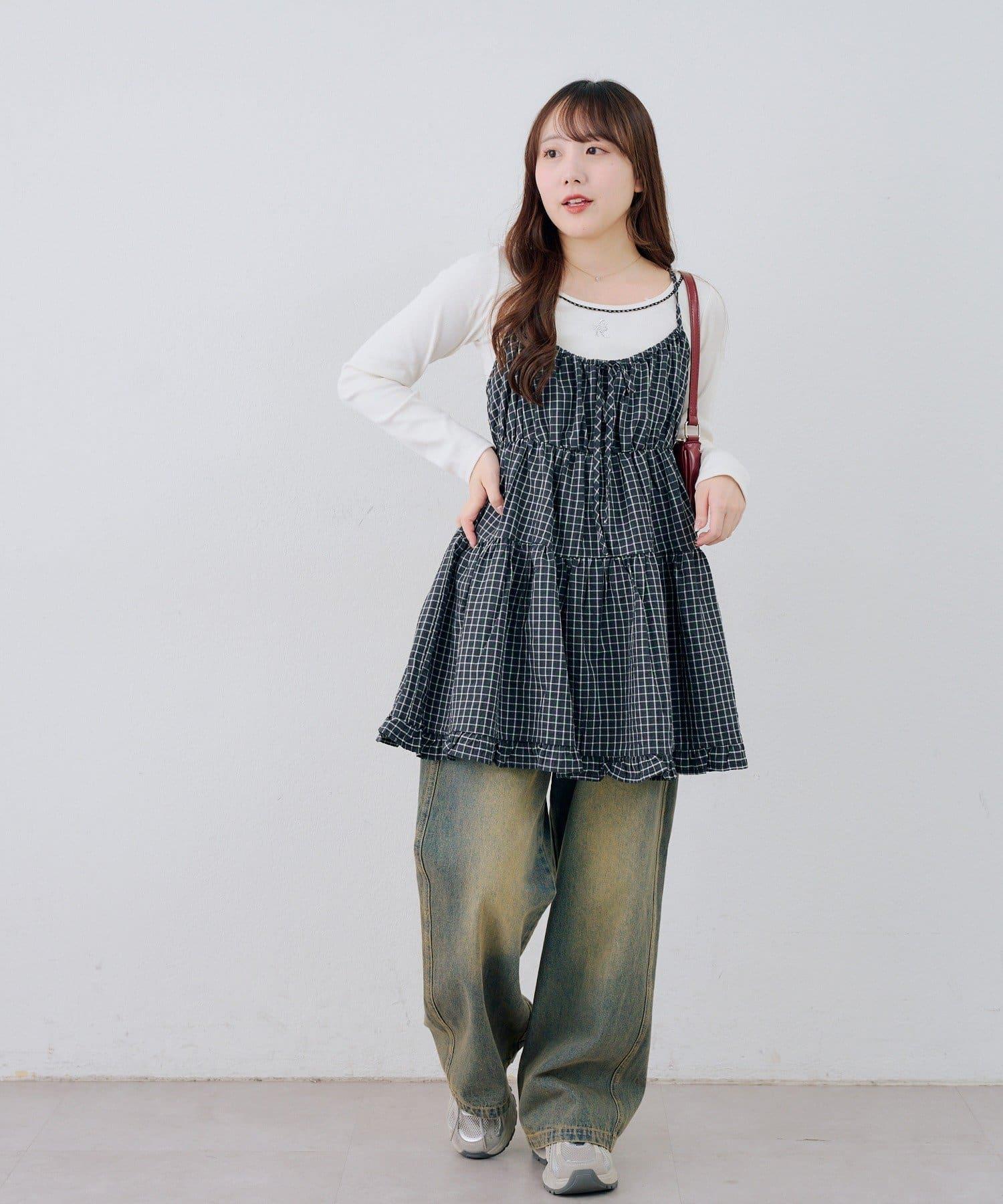 這款格紋層疊長衫連衣裙給人酷酷的印象。