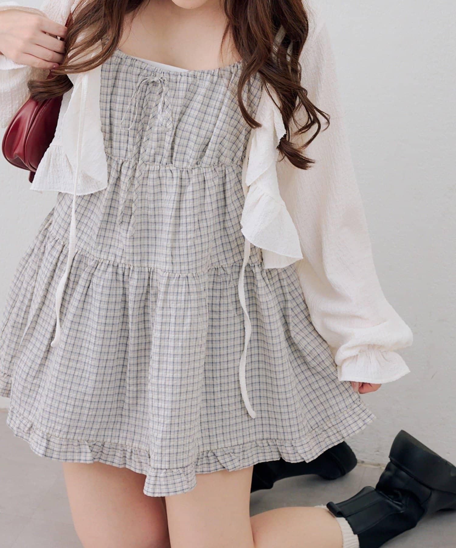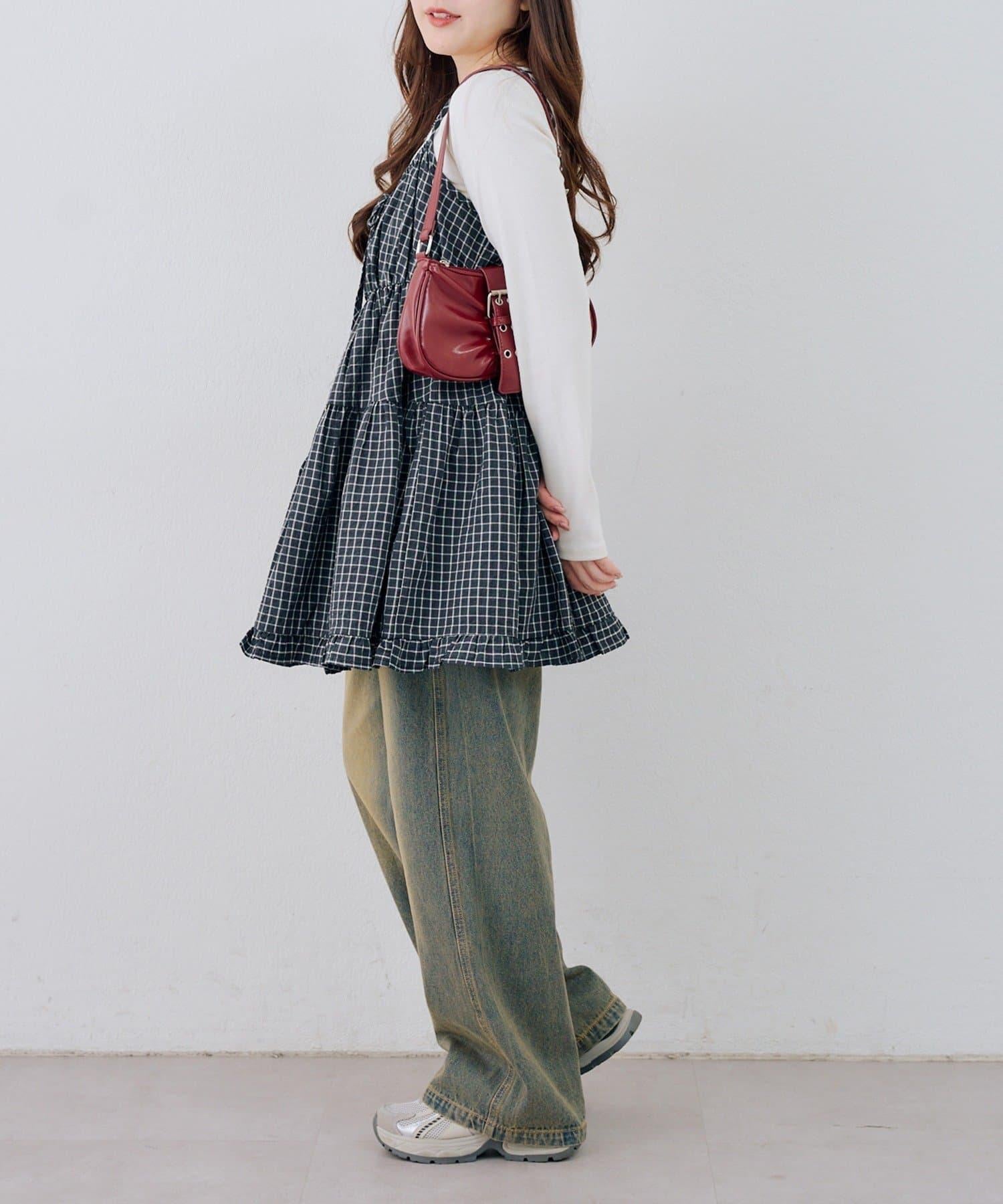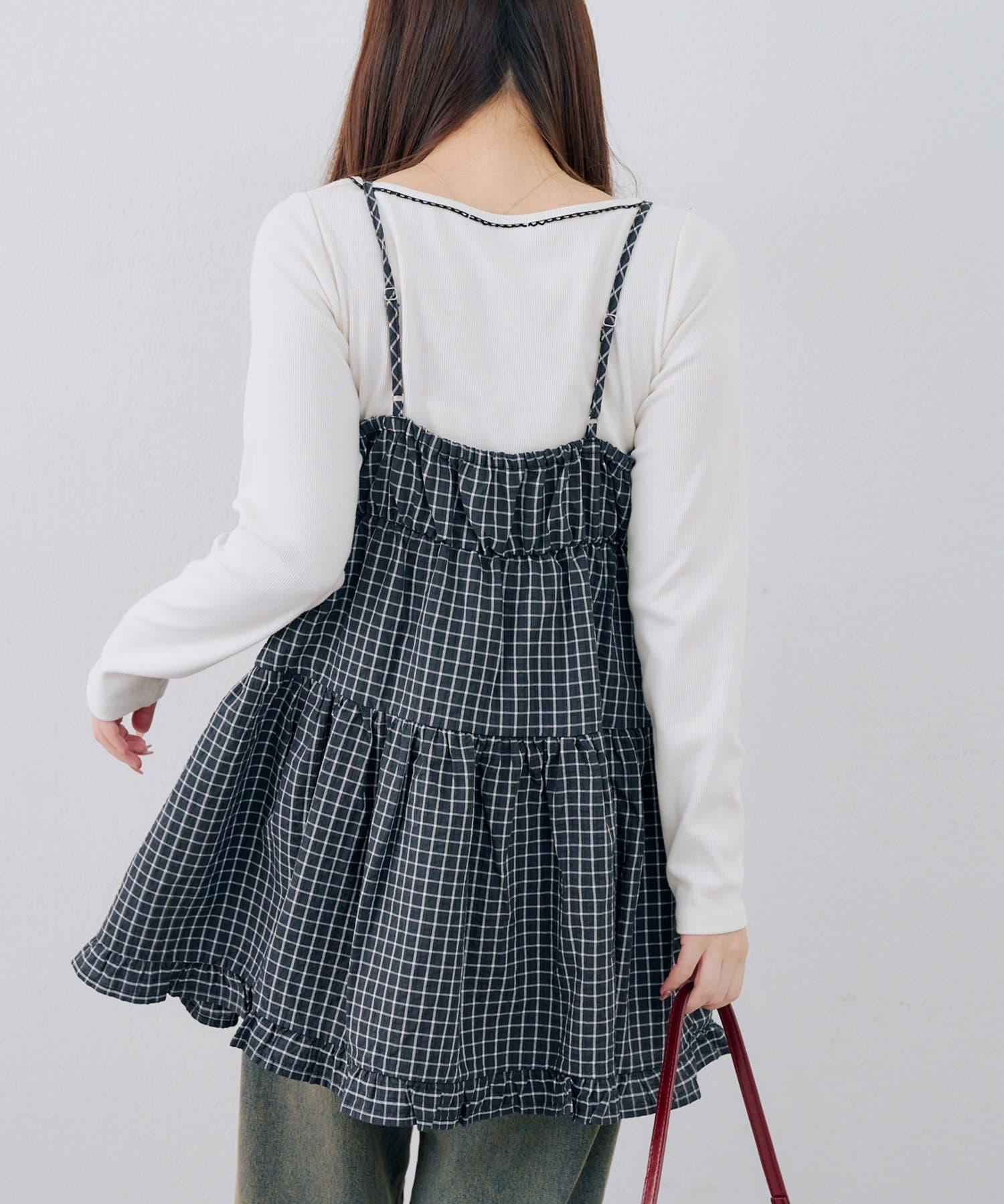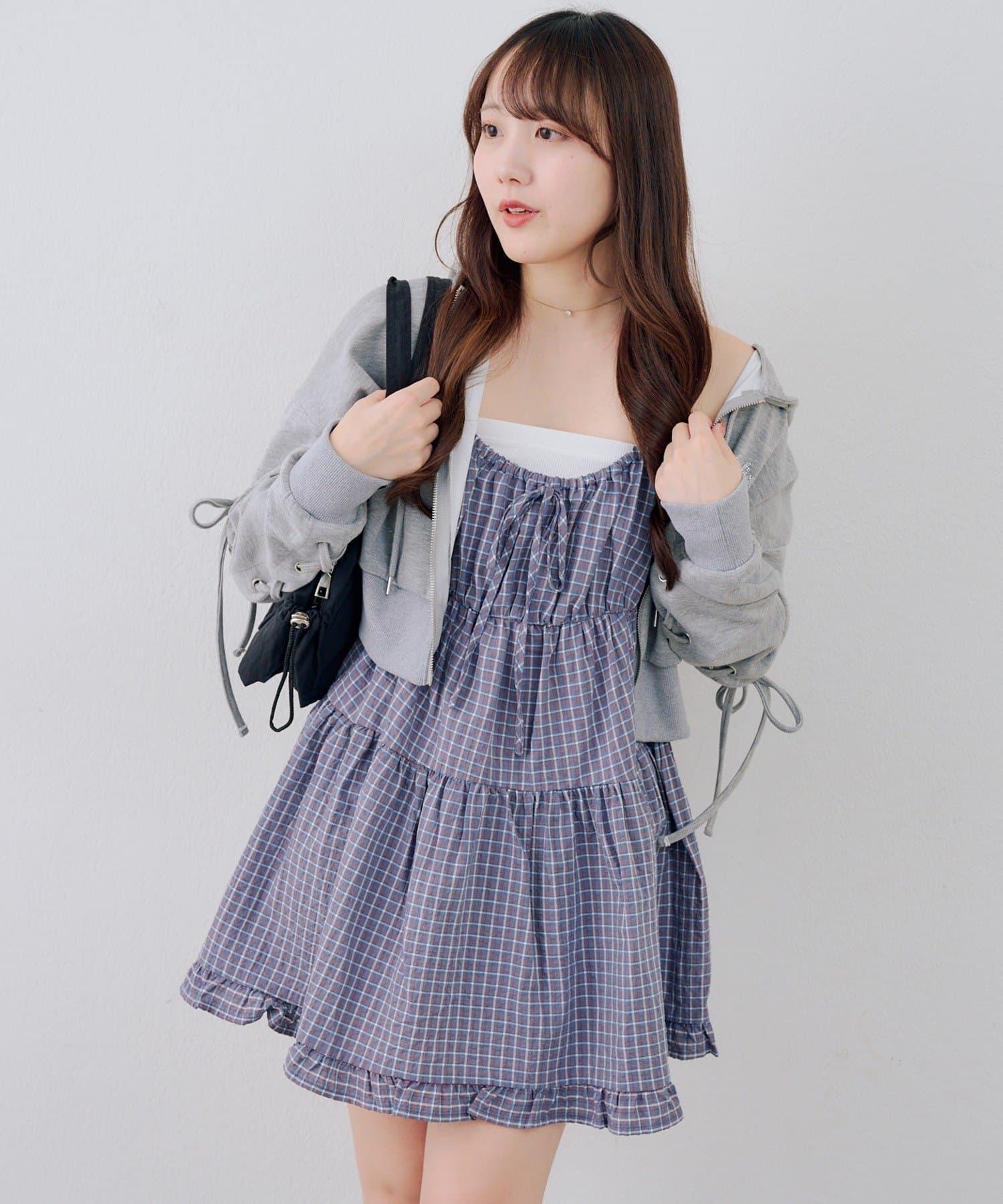 這款格紋層疊長衫連衣裙給人酷酷的印象。