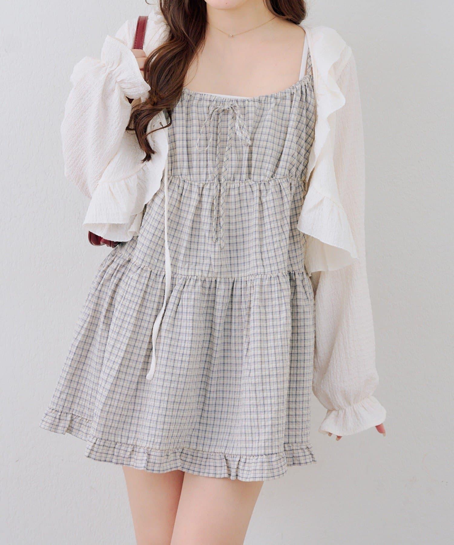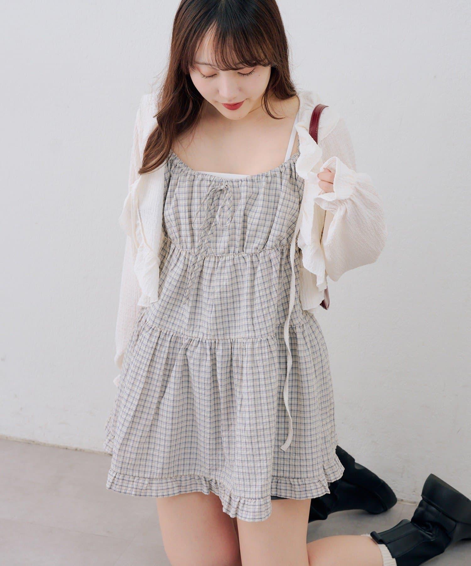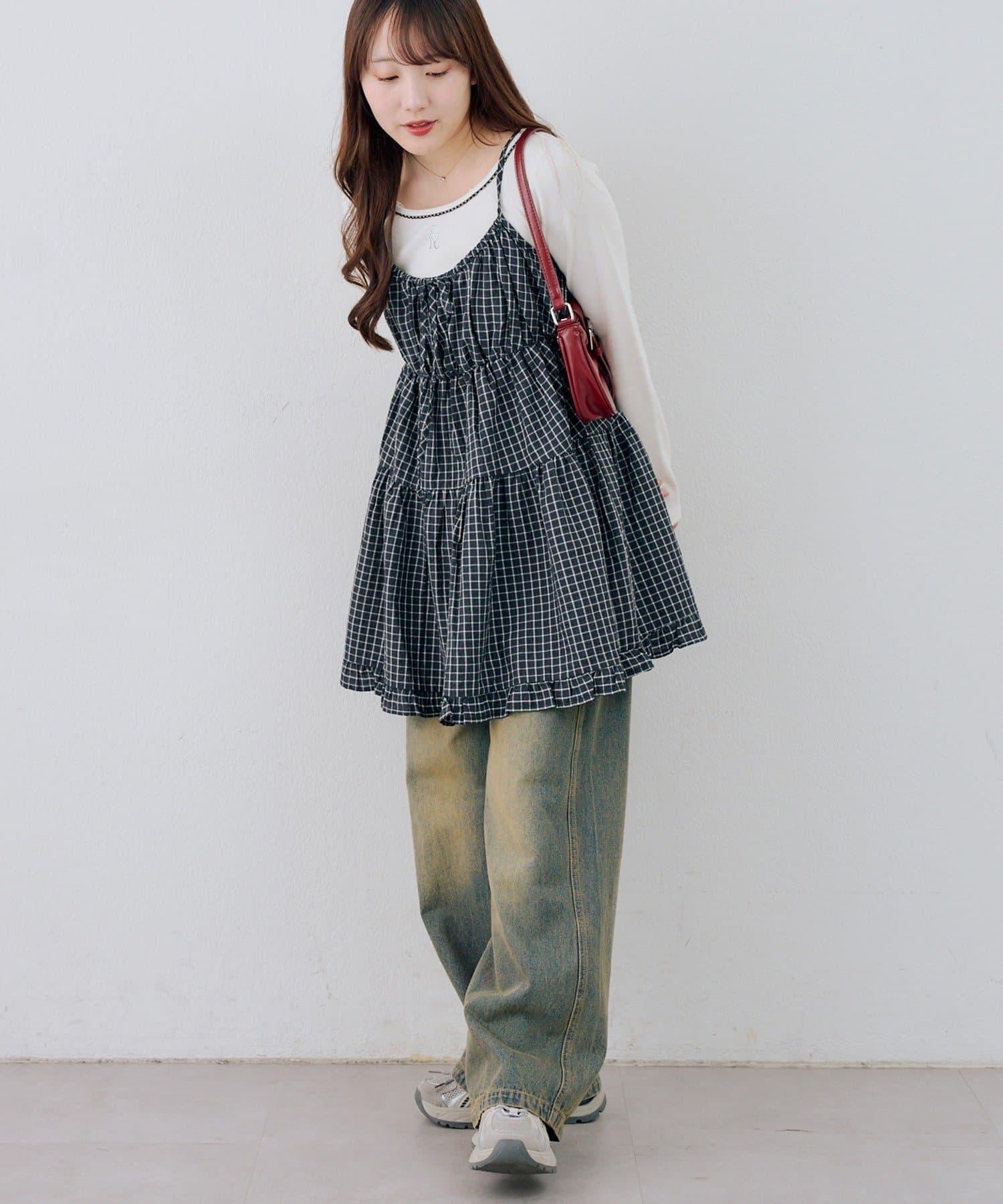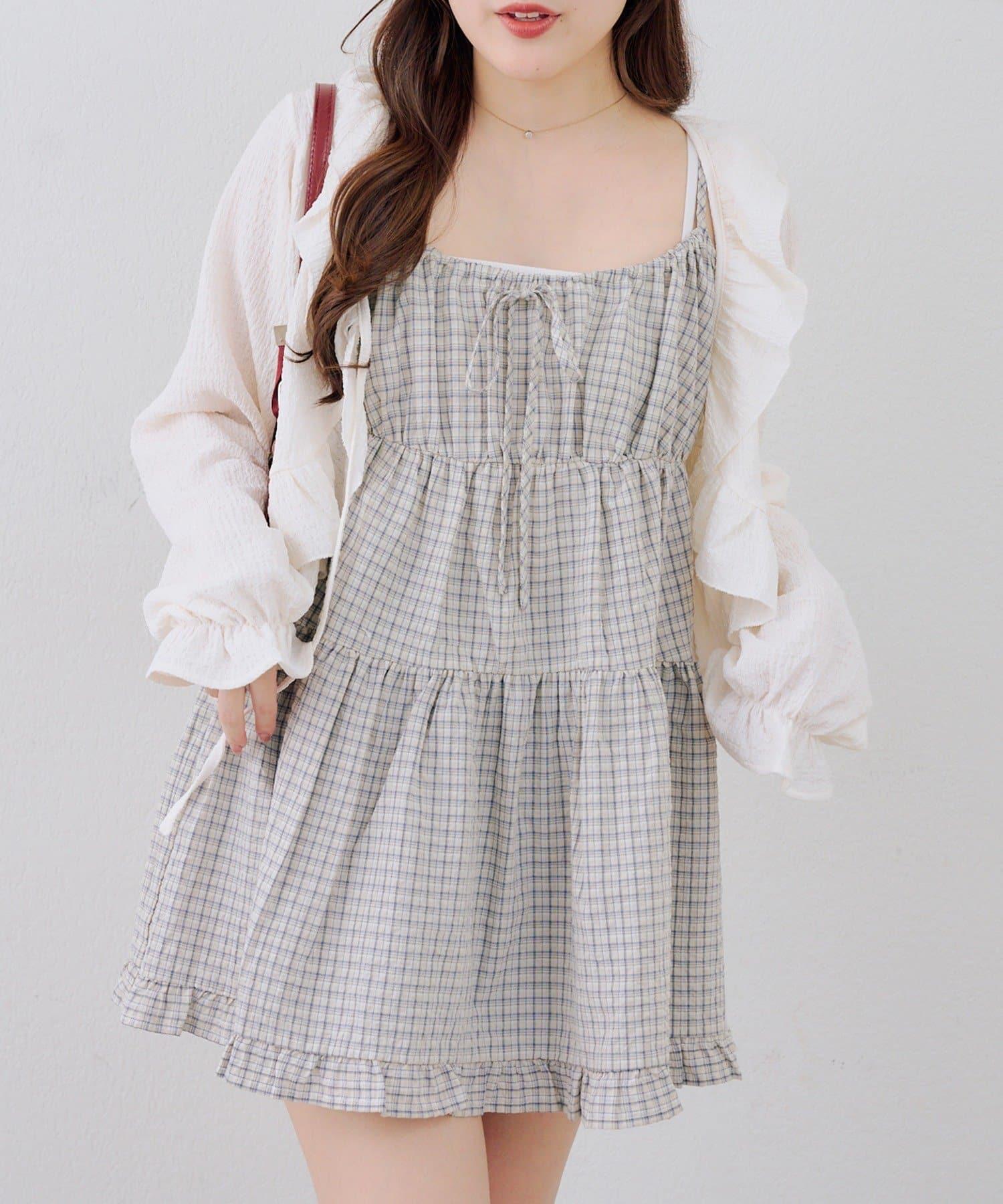 這款格紋層疊長衫連衣裙給人酷酷的印象。