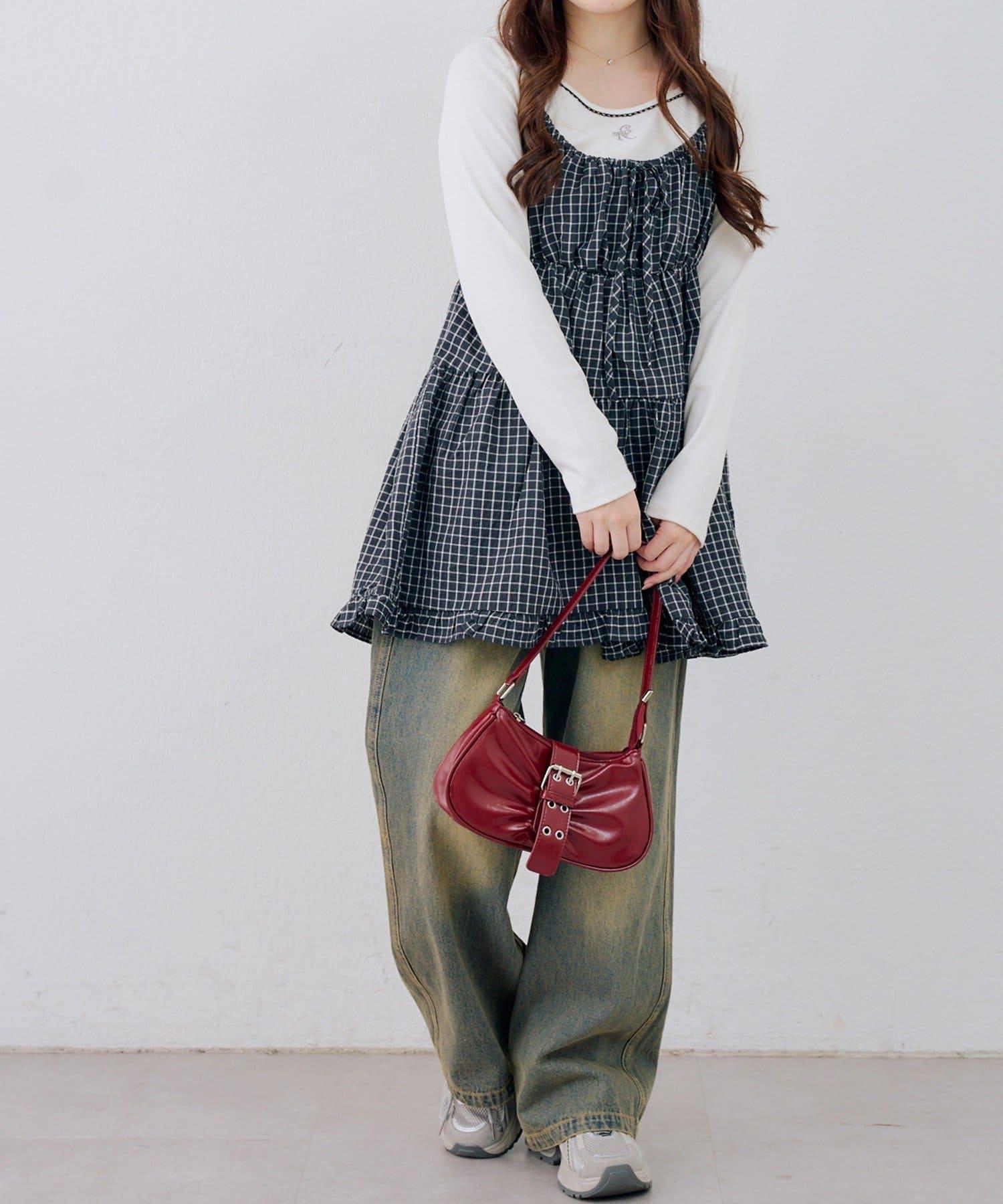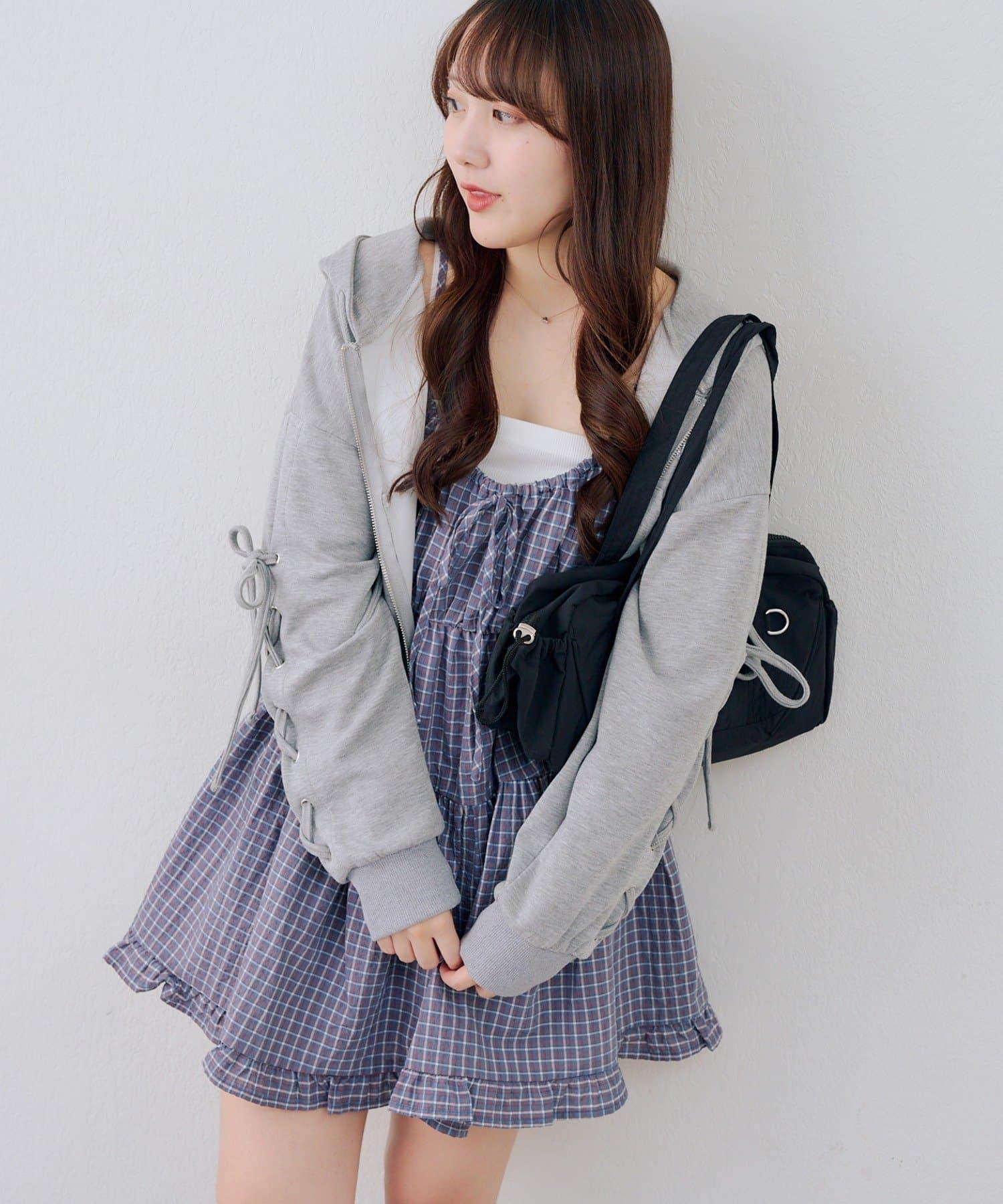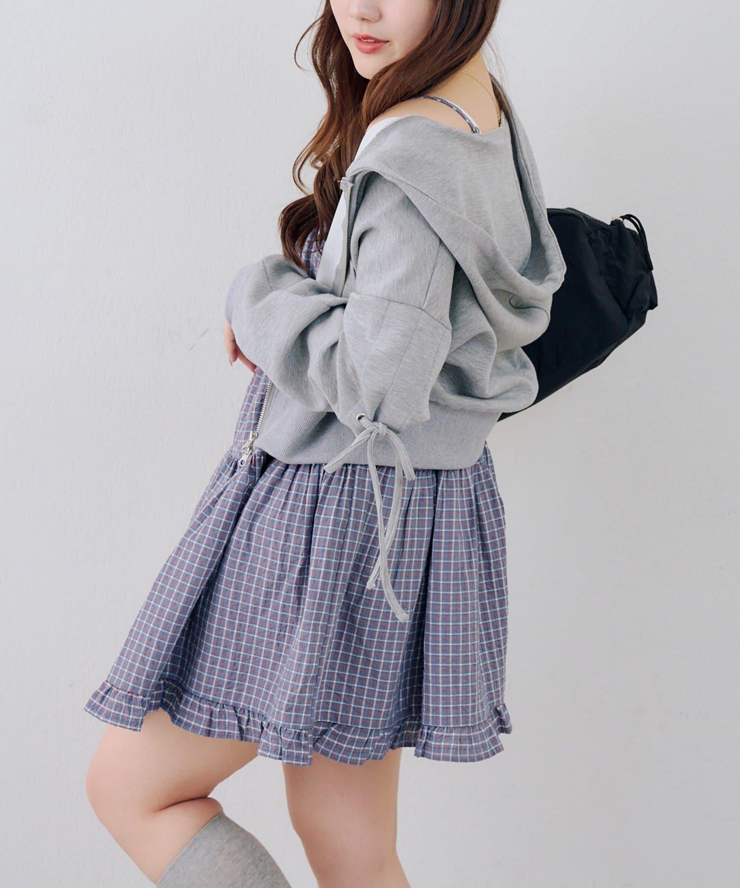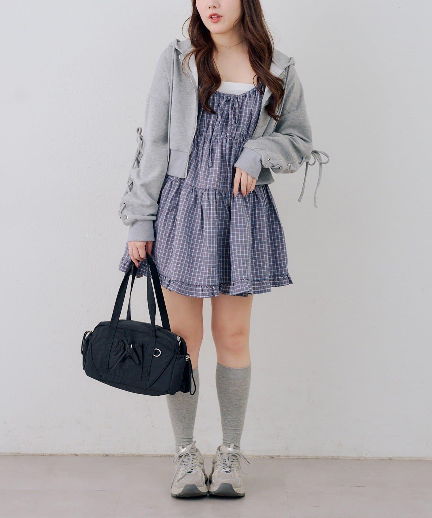 這款格紋層疊長衫連衣裙給人酷酷的印象。