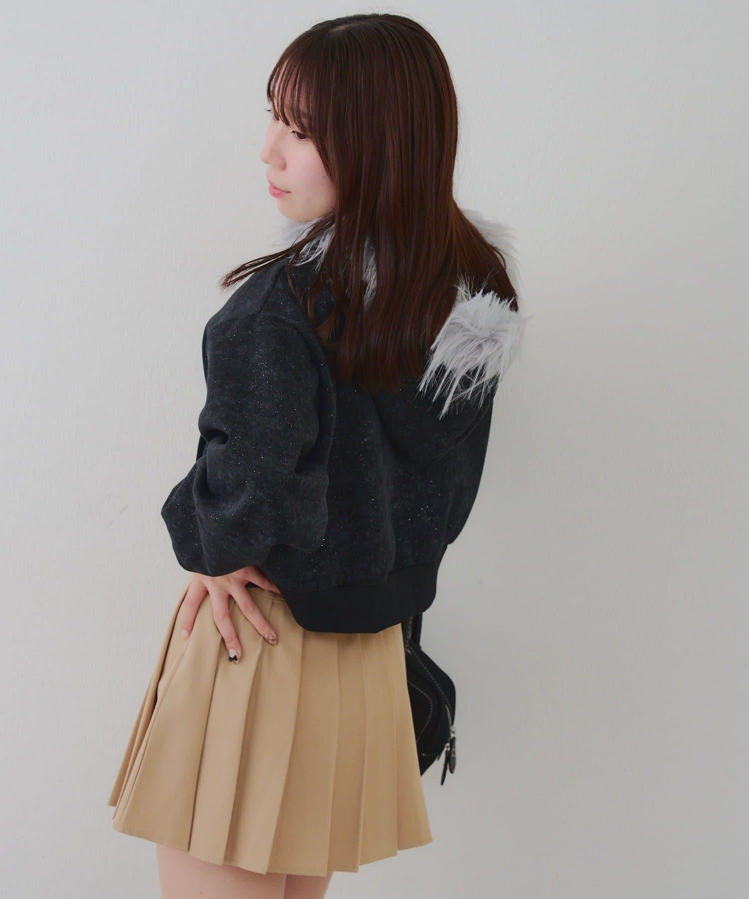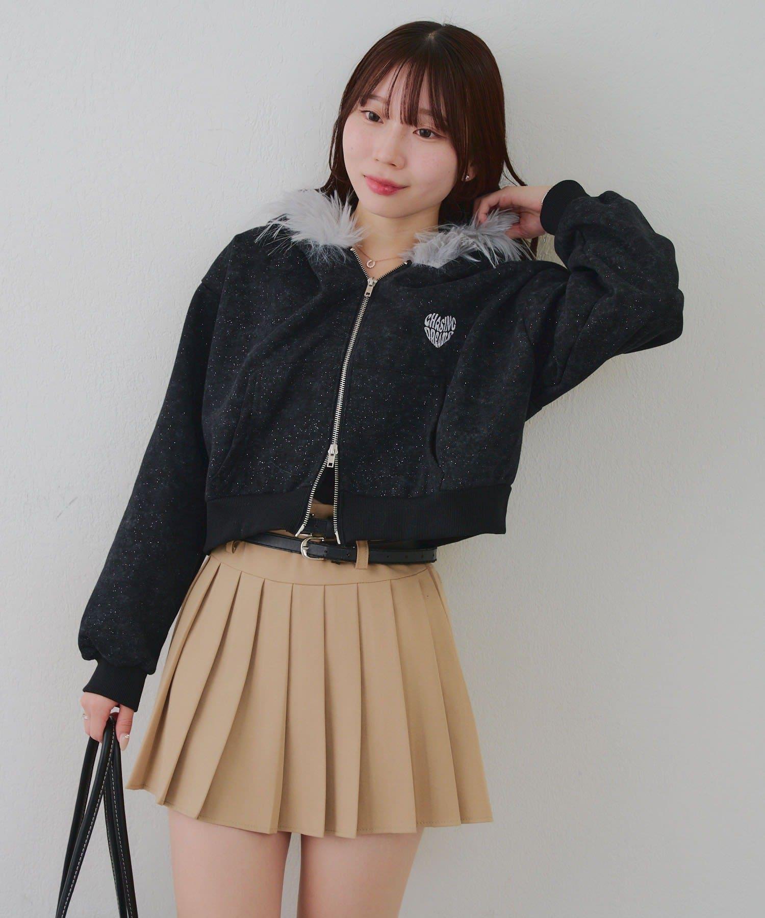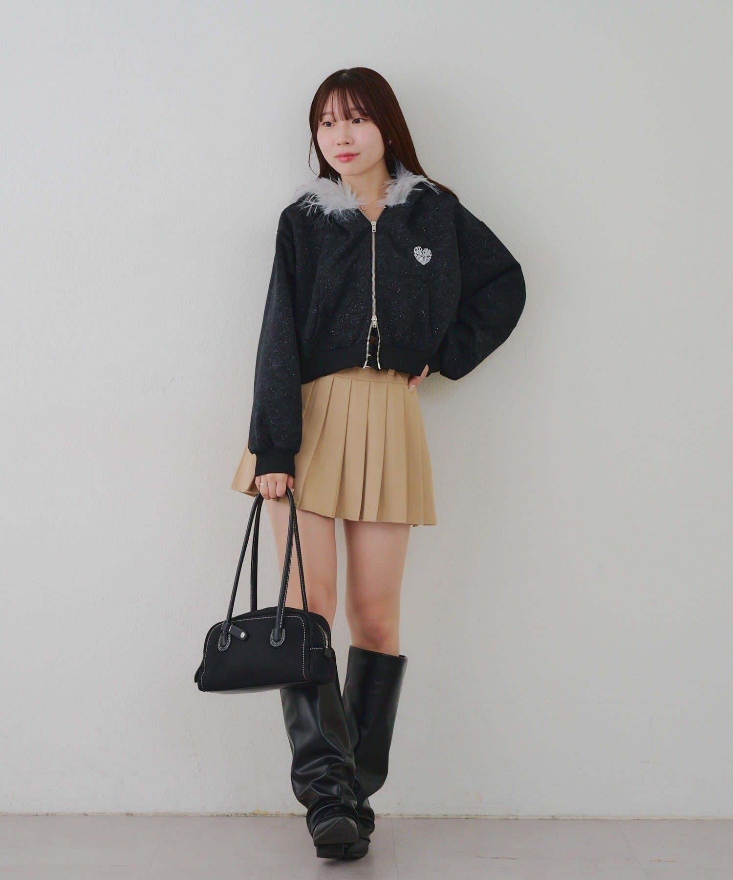 褶皺、層疊迷你裙和長筒靴的休閒少女搭配。