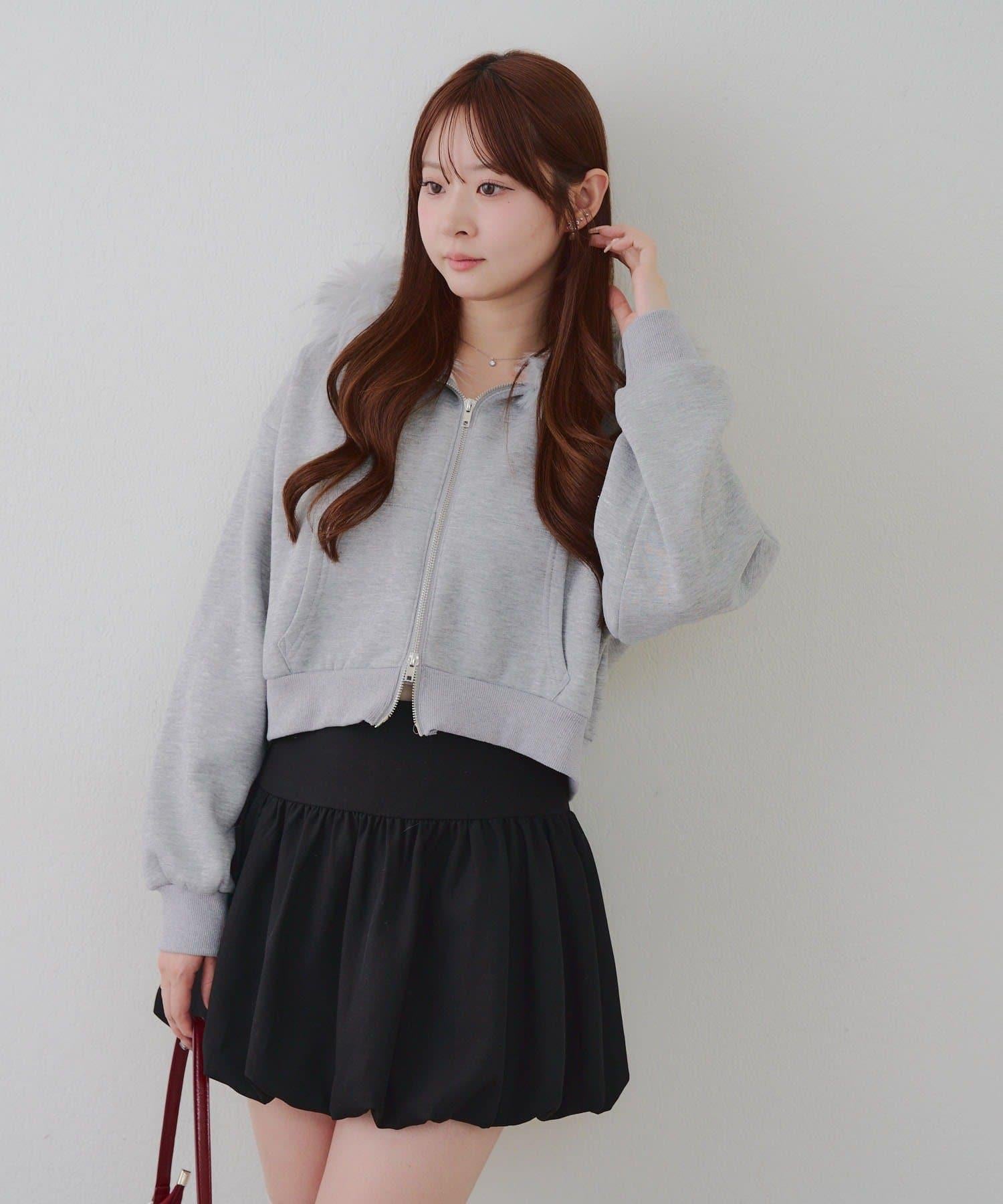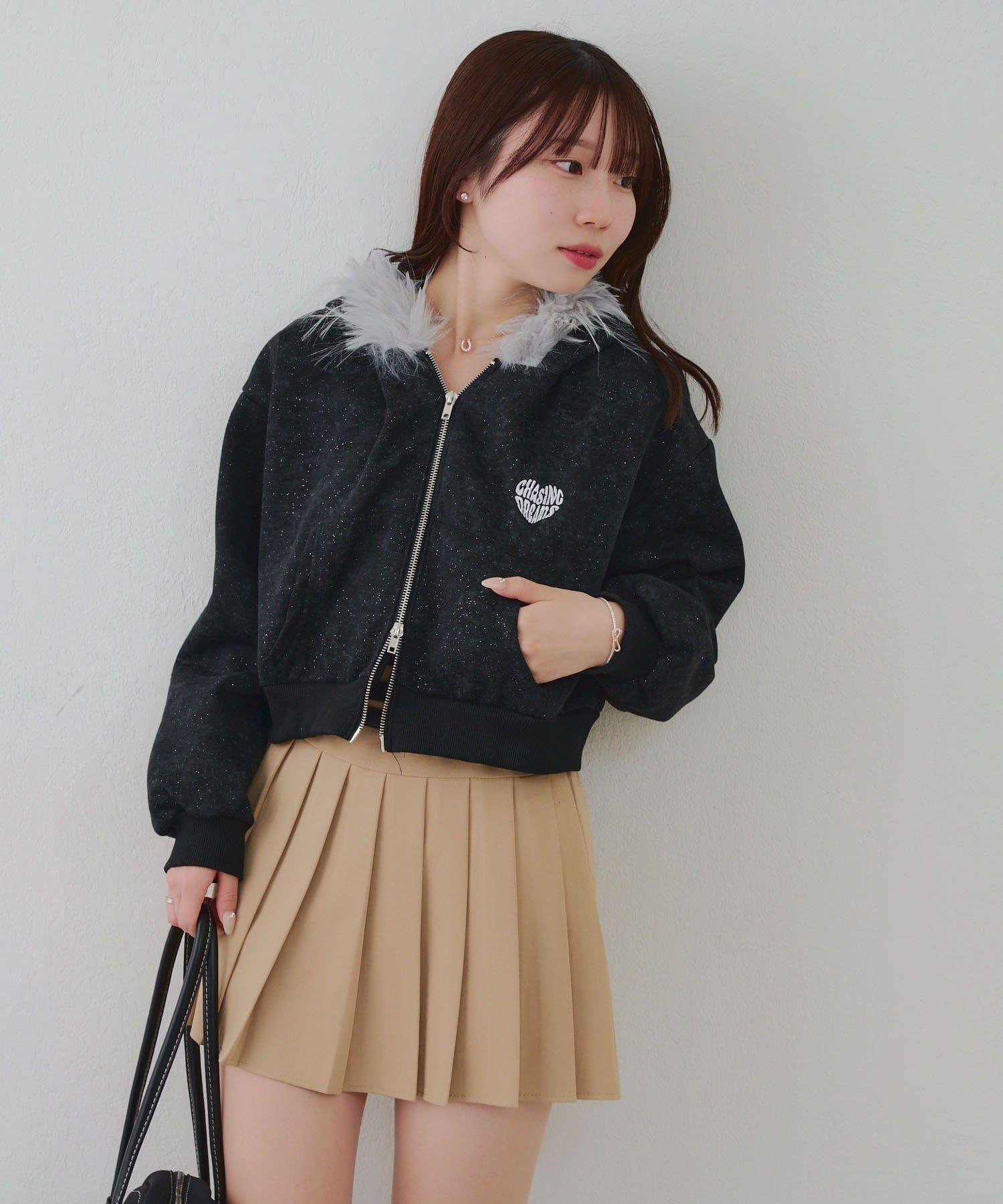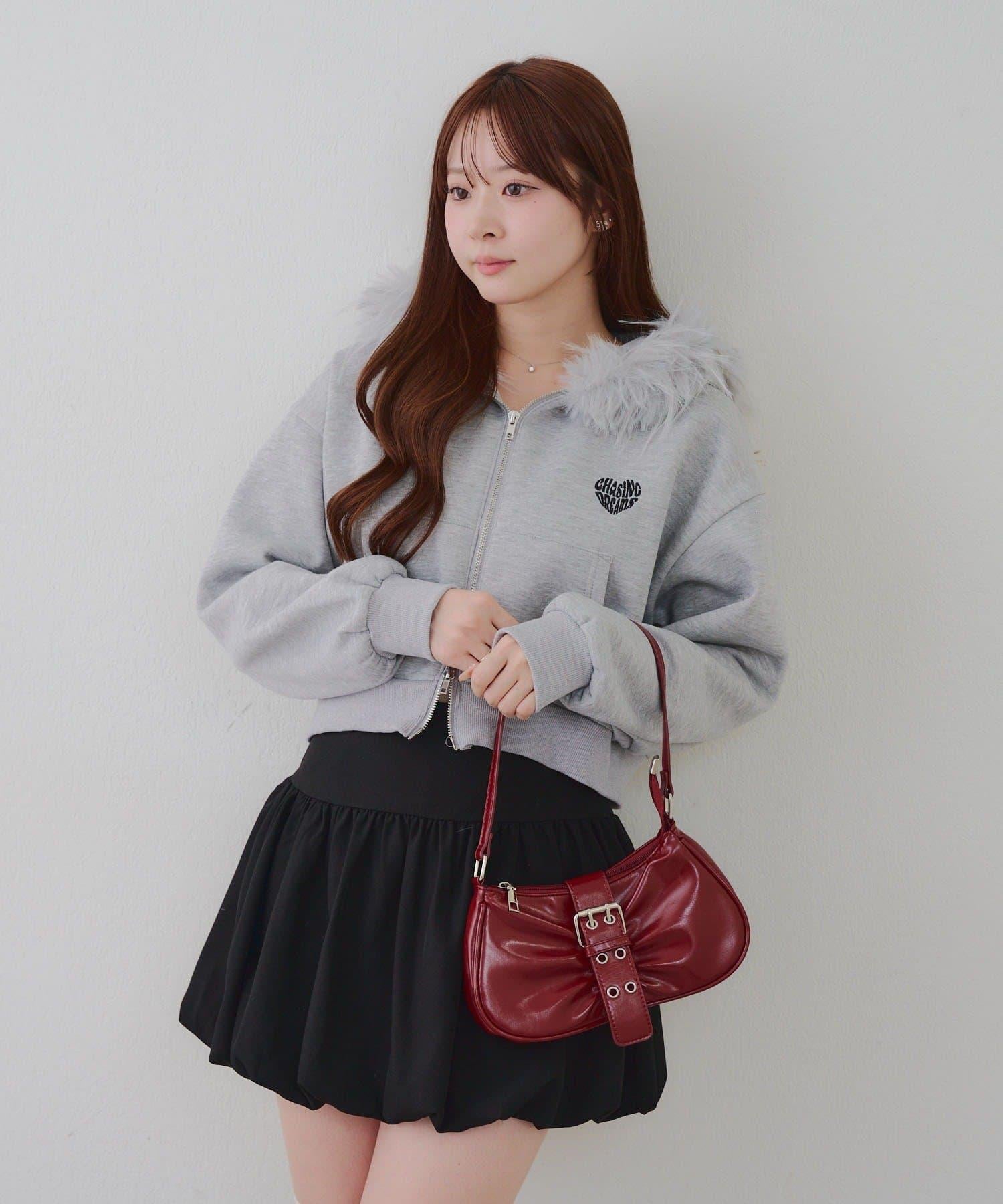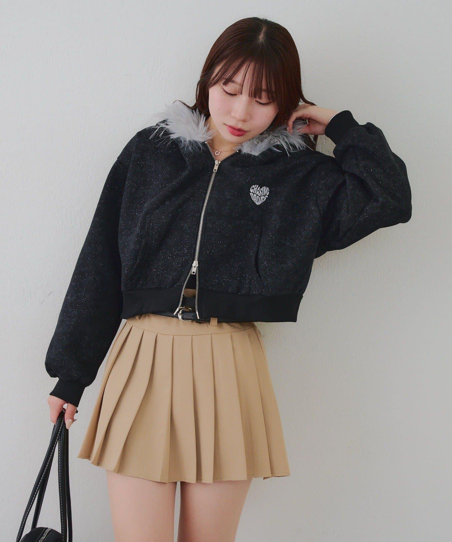 褶皺、層疊迷你裙和長筒靴的休閒少女搭配。