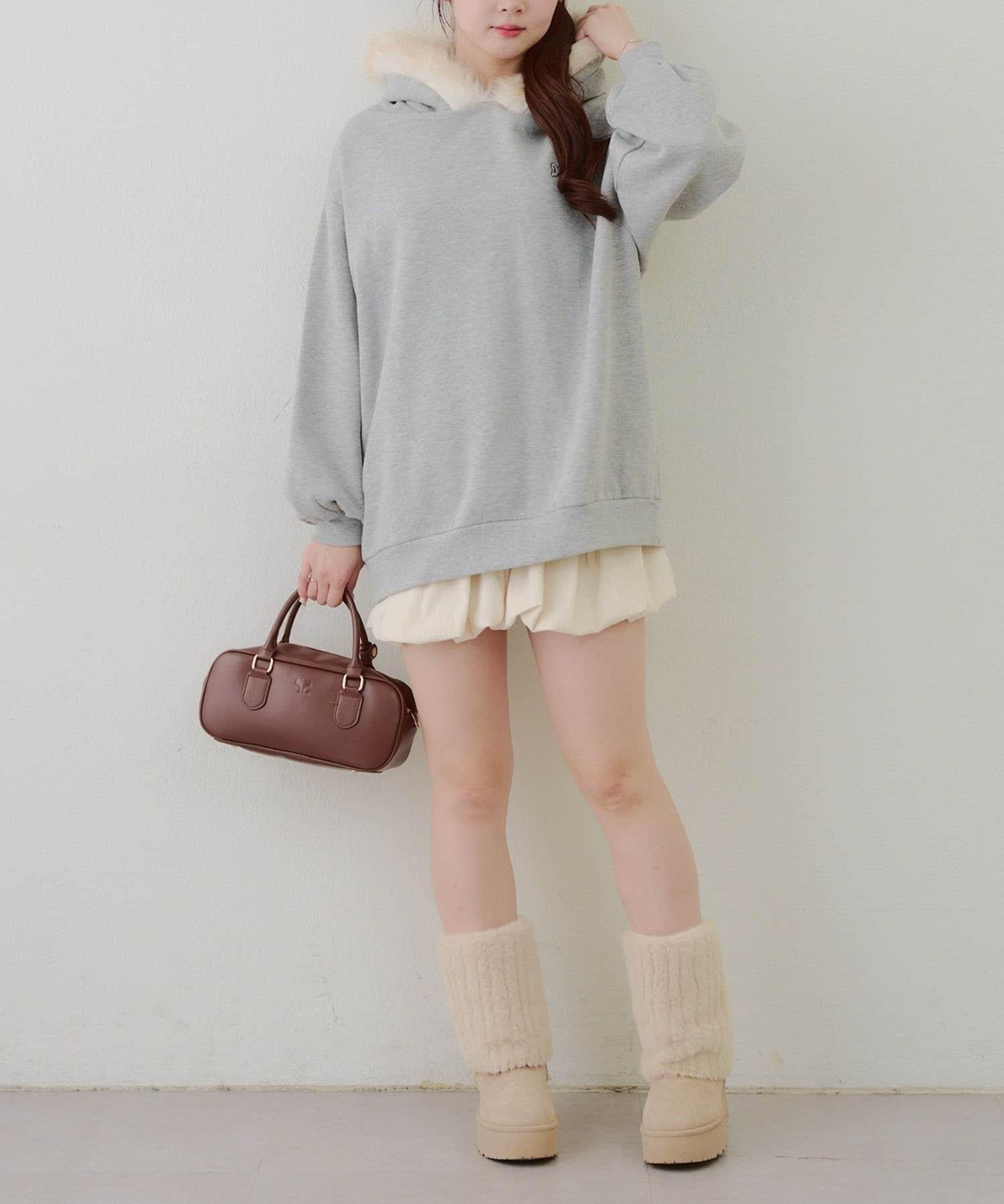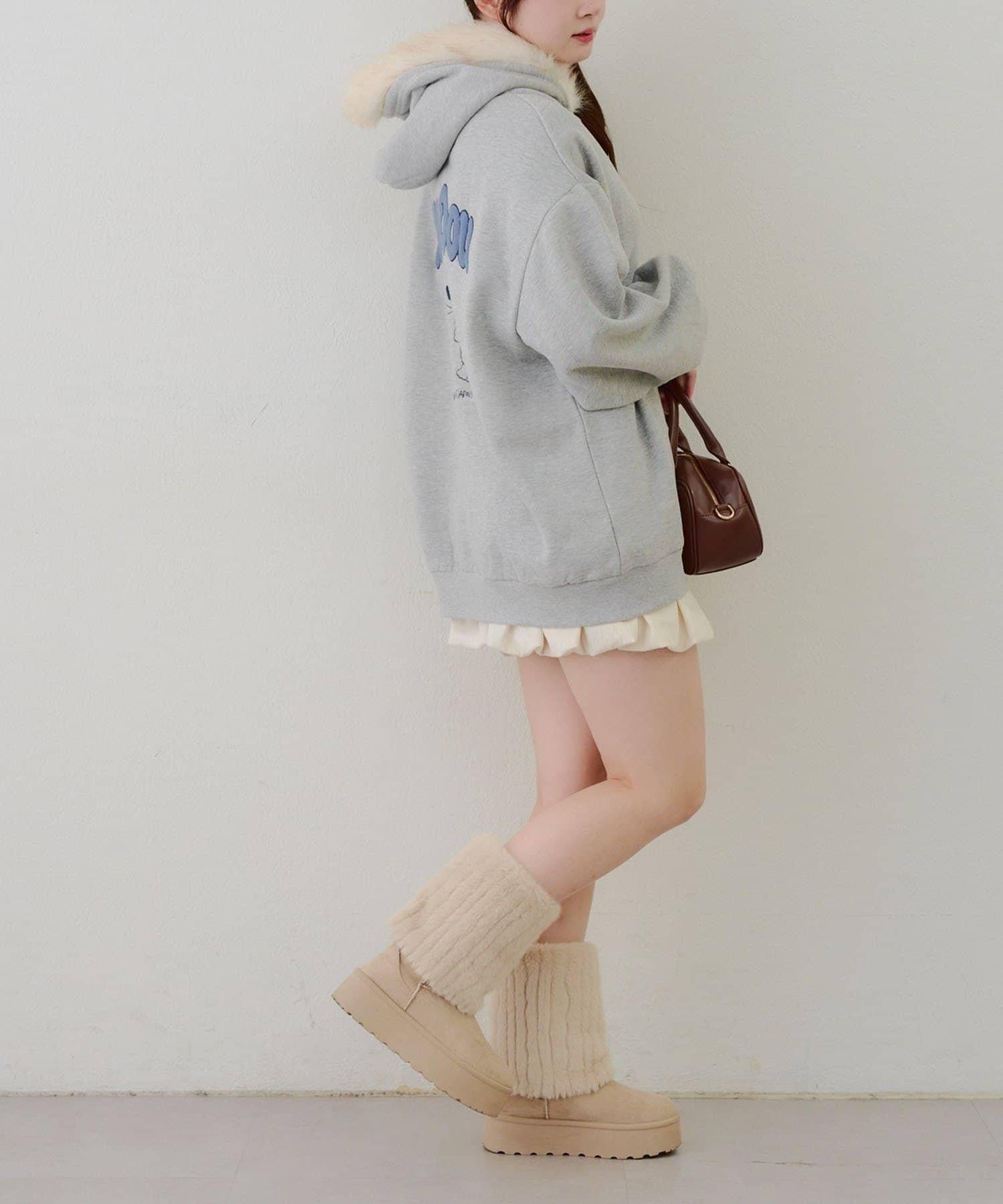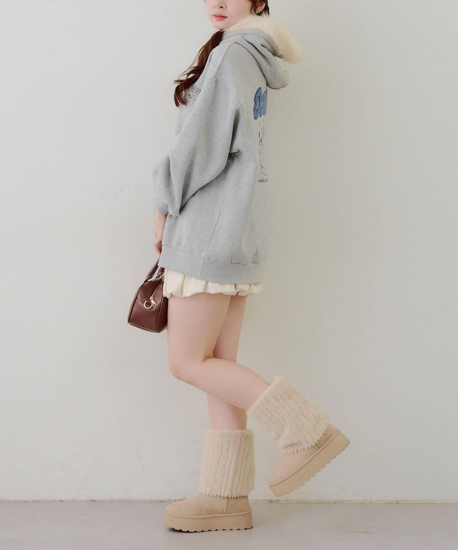 搭配迷你長裙和長筒靴,休閒少女風十足。