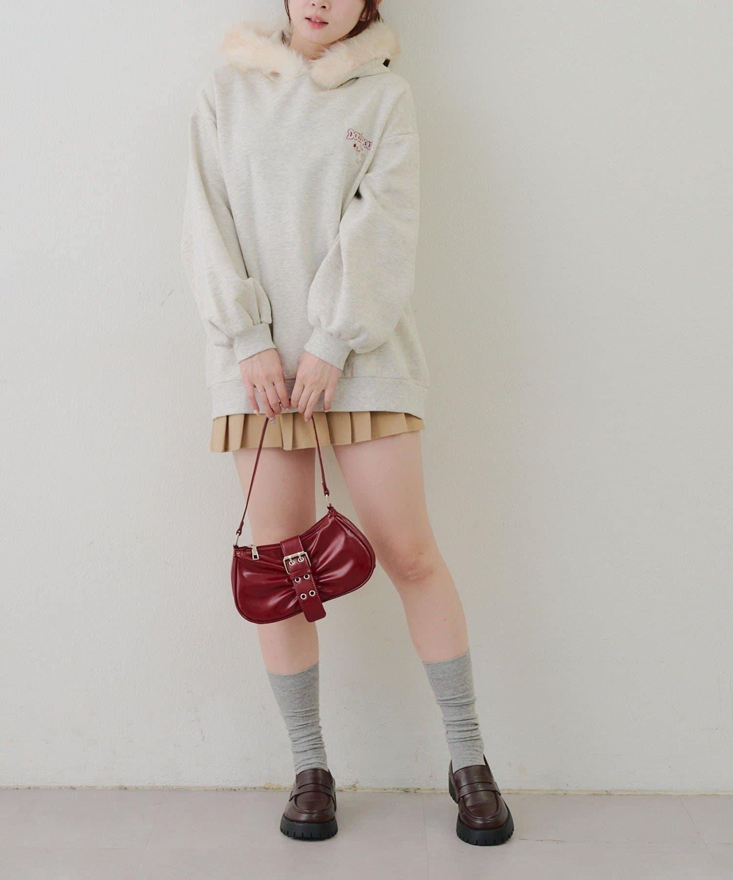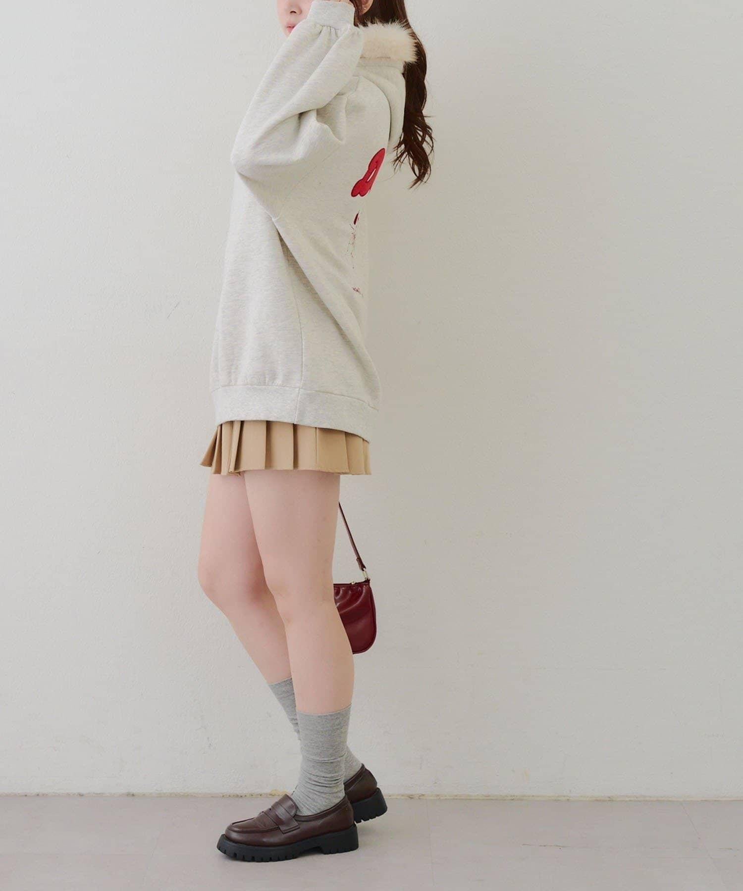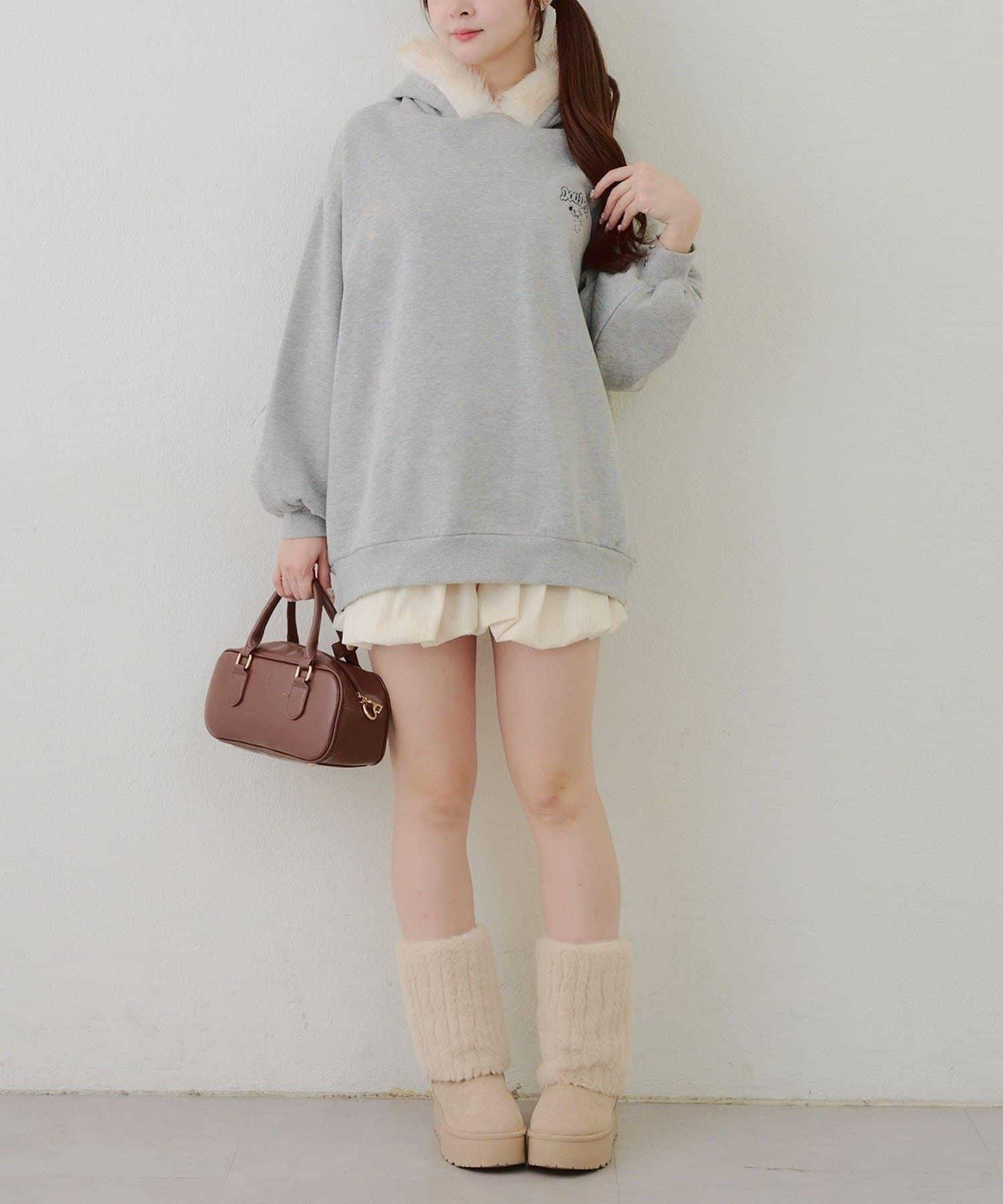 搭配迷你長裙和長筒靴,休閒少女風十足。
