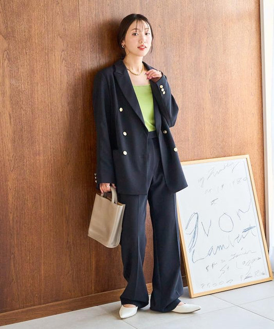 搭配高腰喇叭褲和高跟鞋,打造成熟休閒風格。