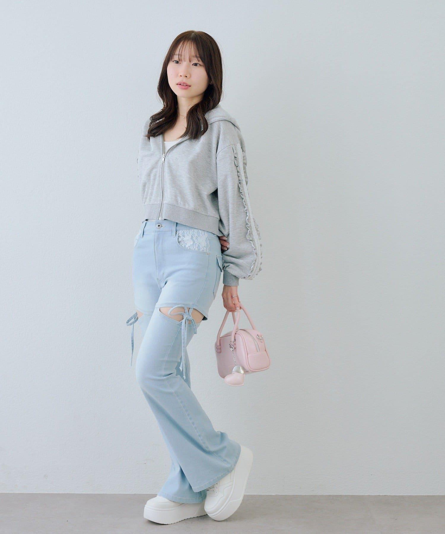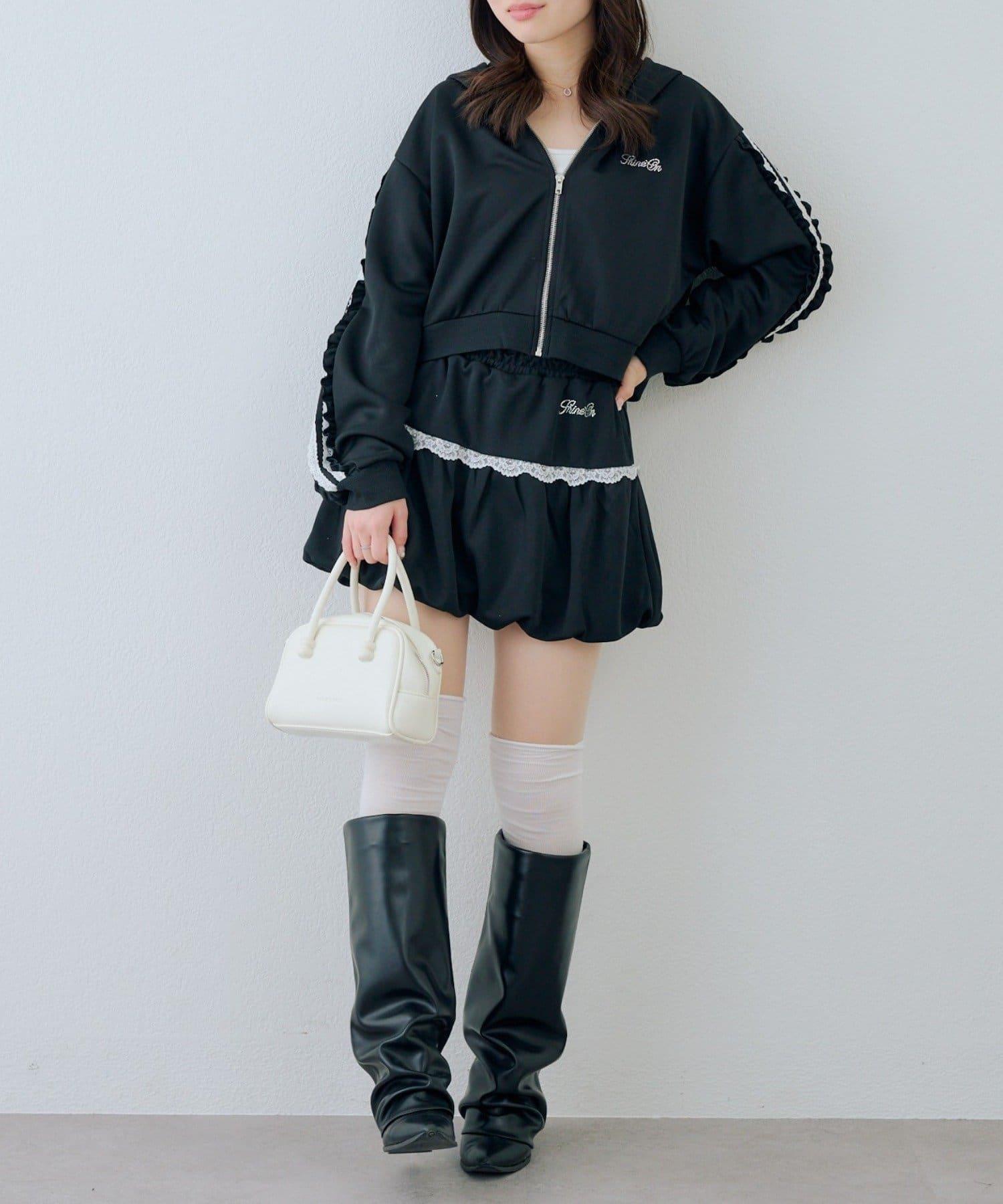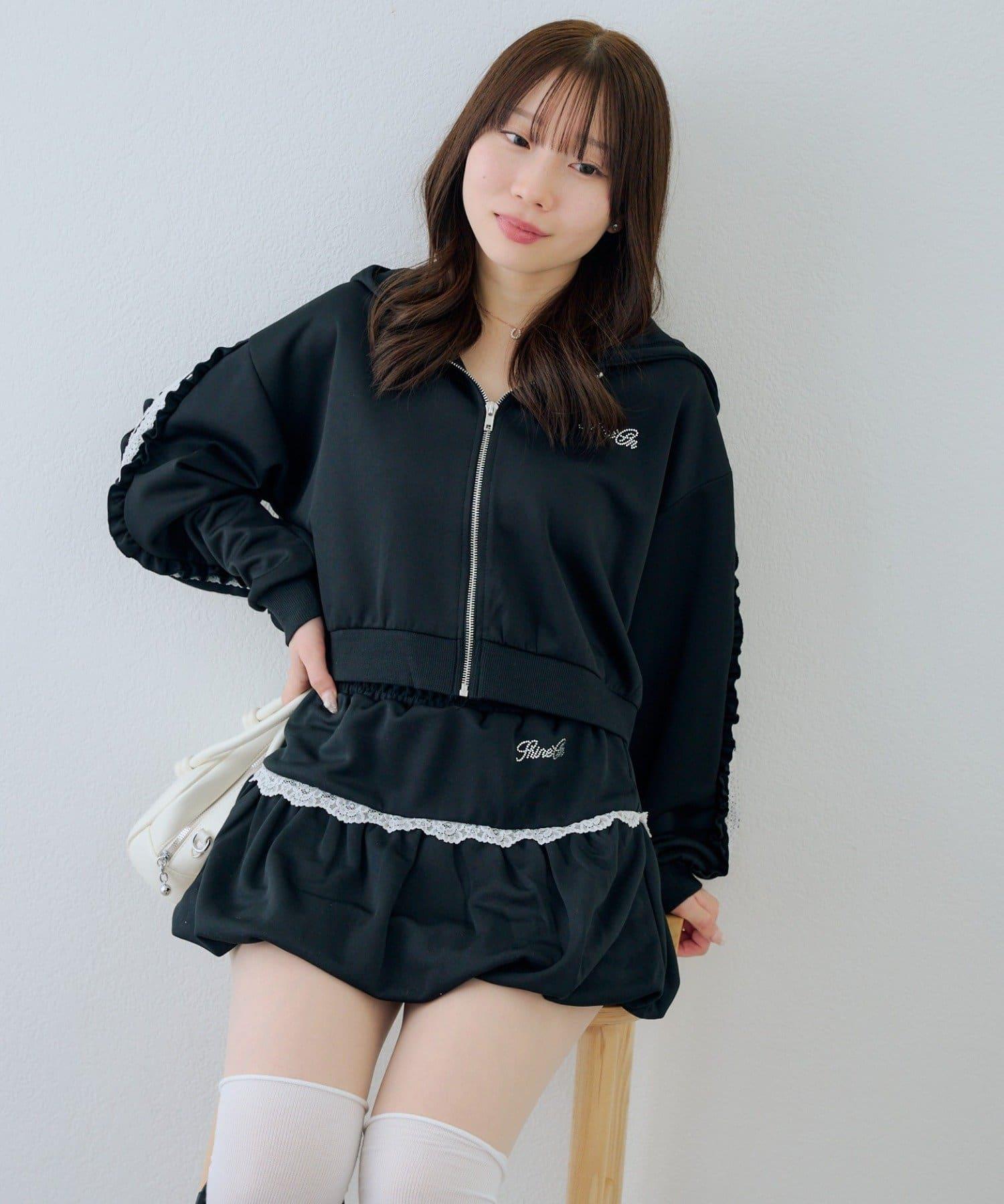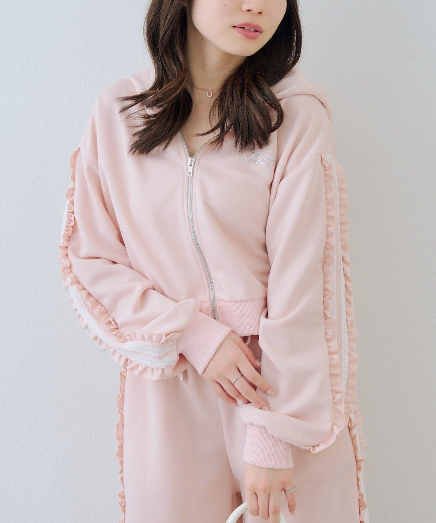 少女風格的休閒拉鍊連帽衫,袖子上有醒目的褶皺線條。