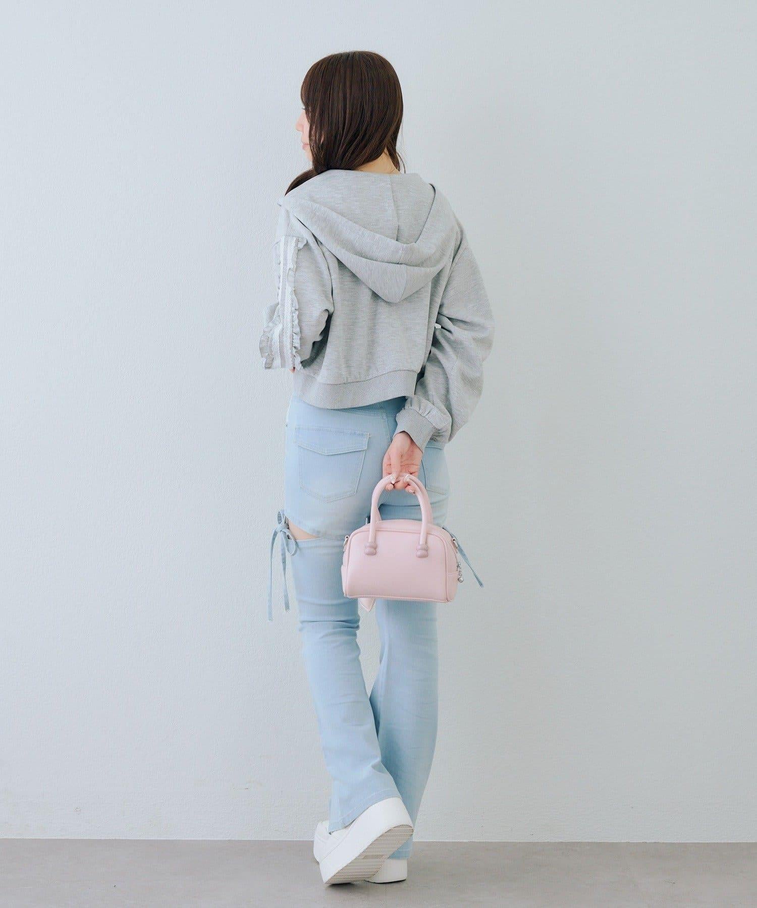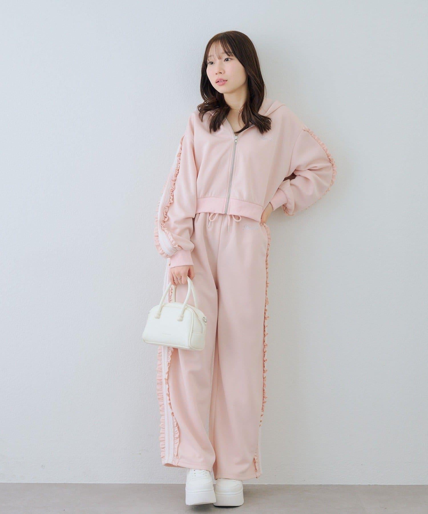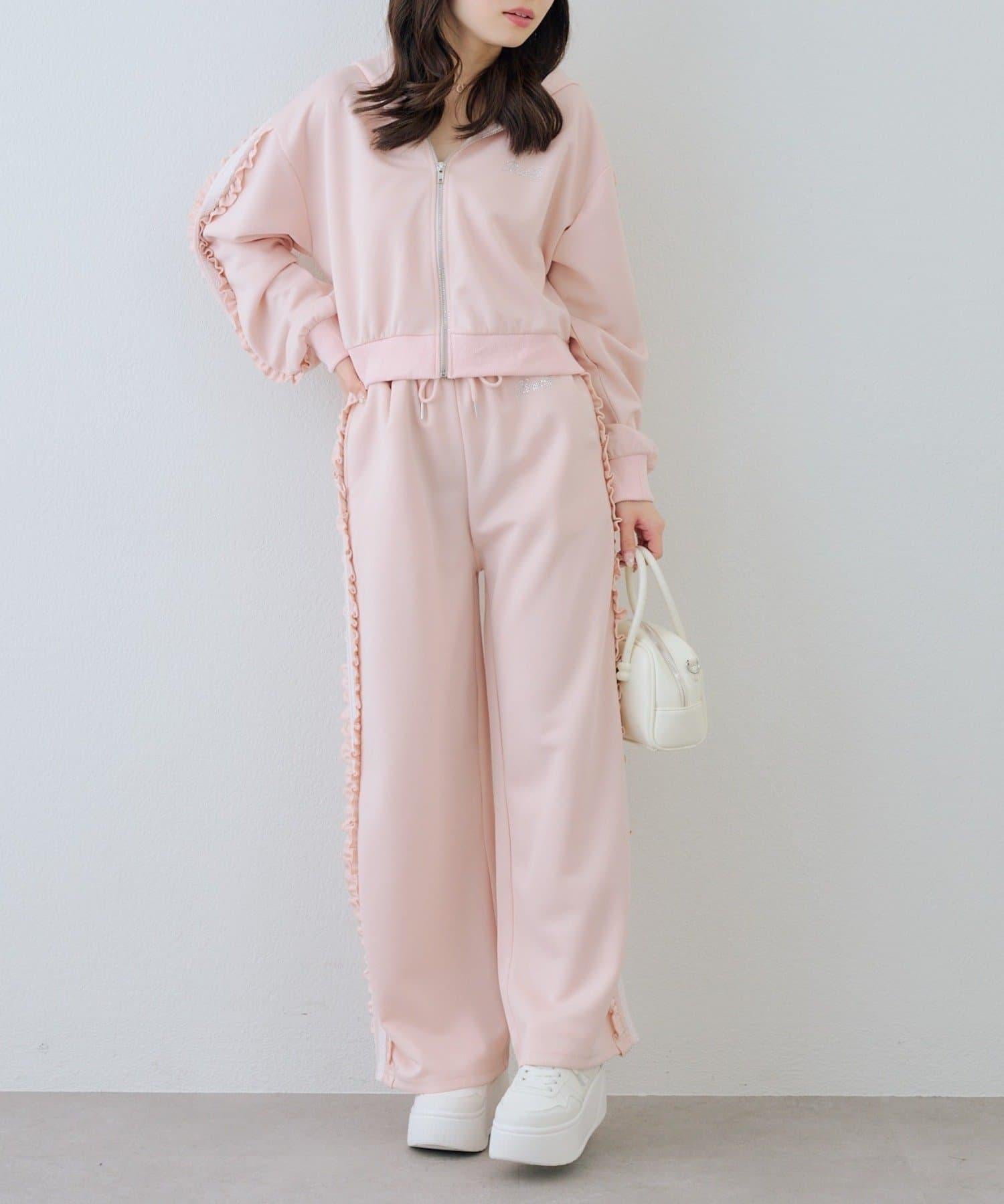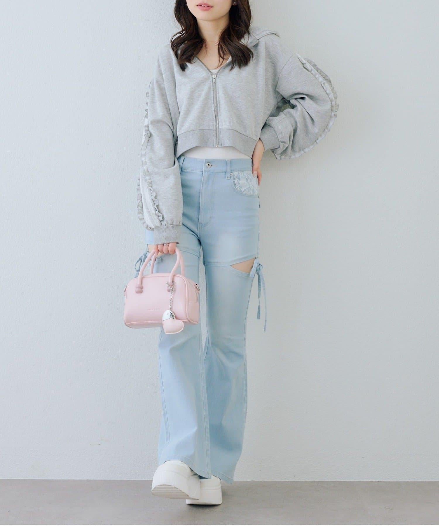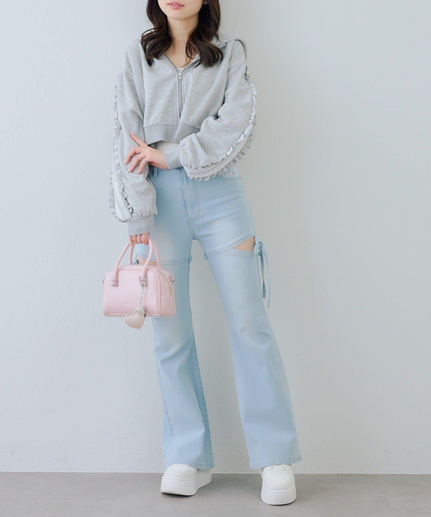 少女風格的休閒拉鍊連帽衫,袖子上有醒目的褶皺線條。