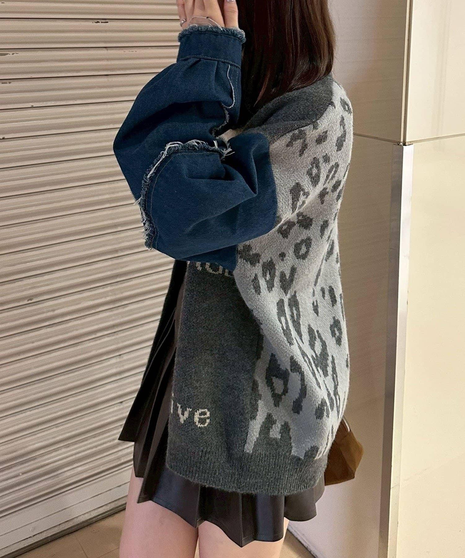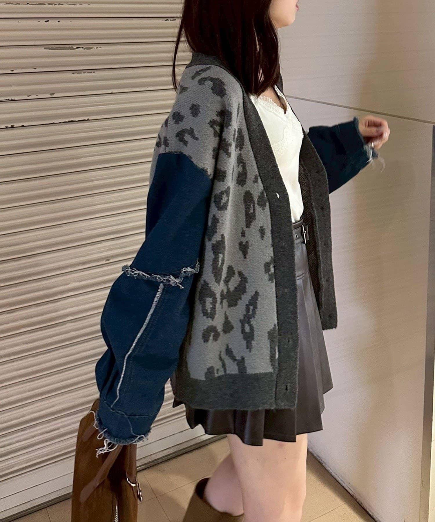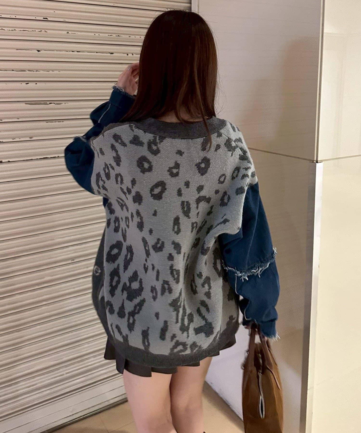 【RMAF】牛仔拼接豹紋開衫