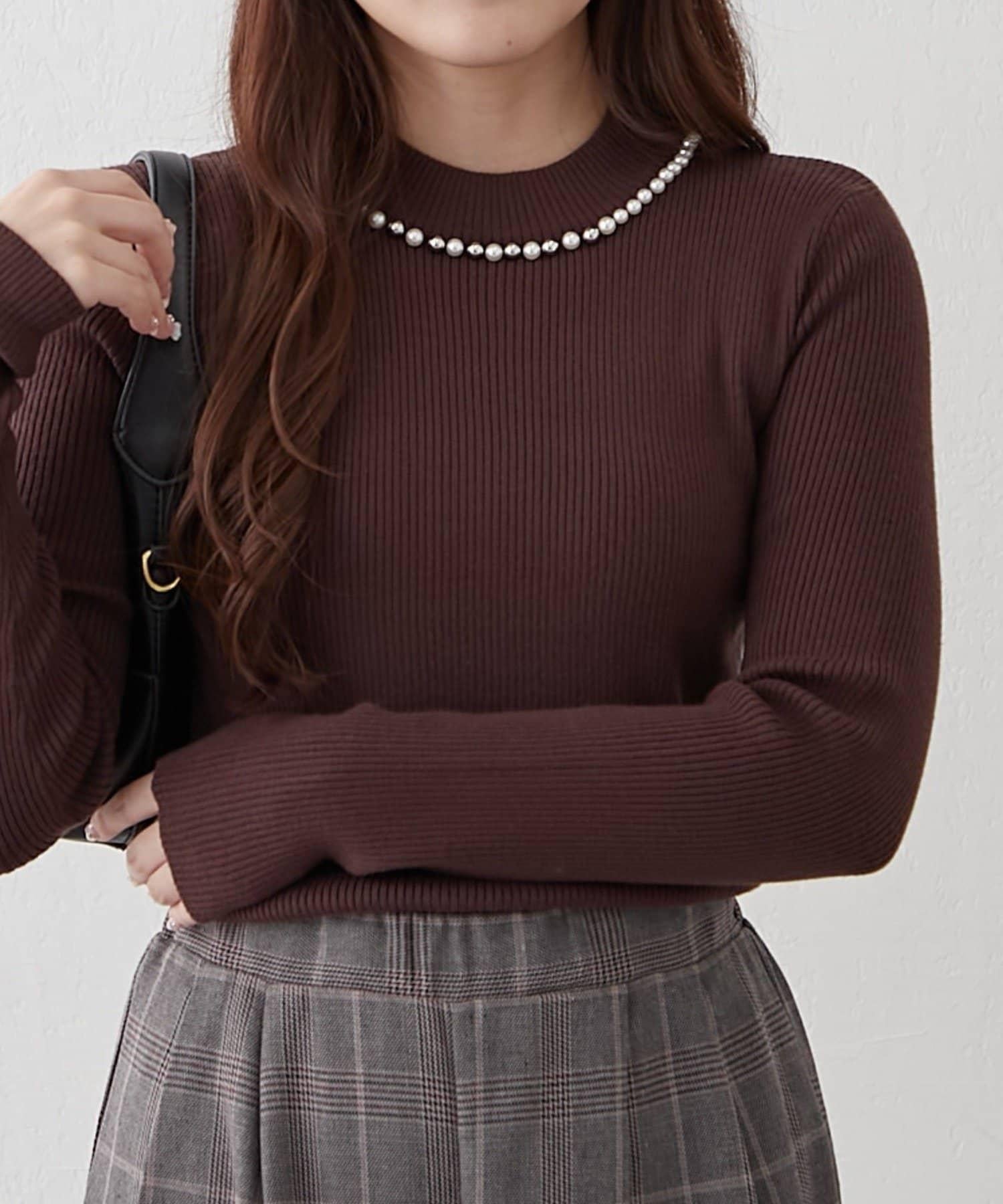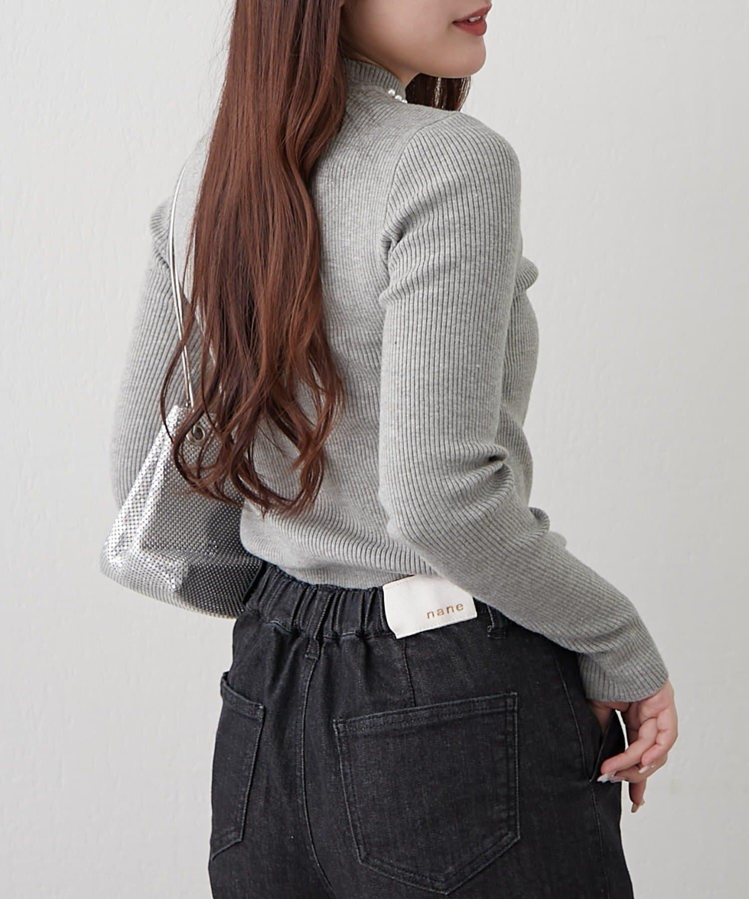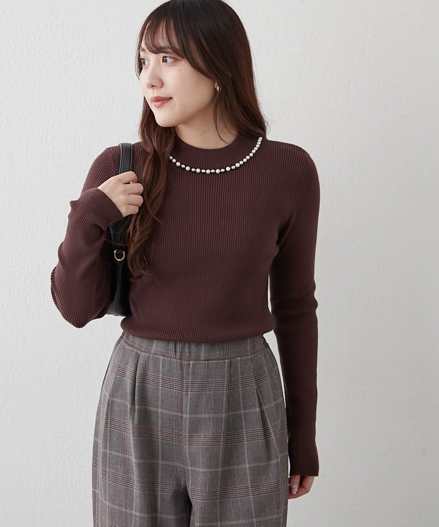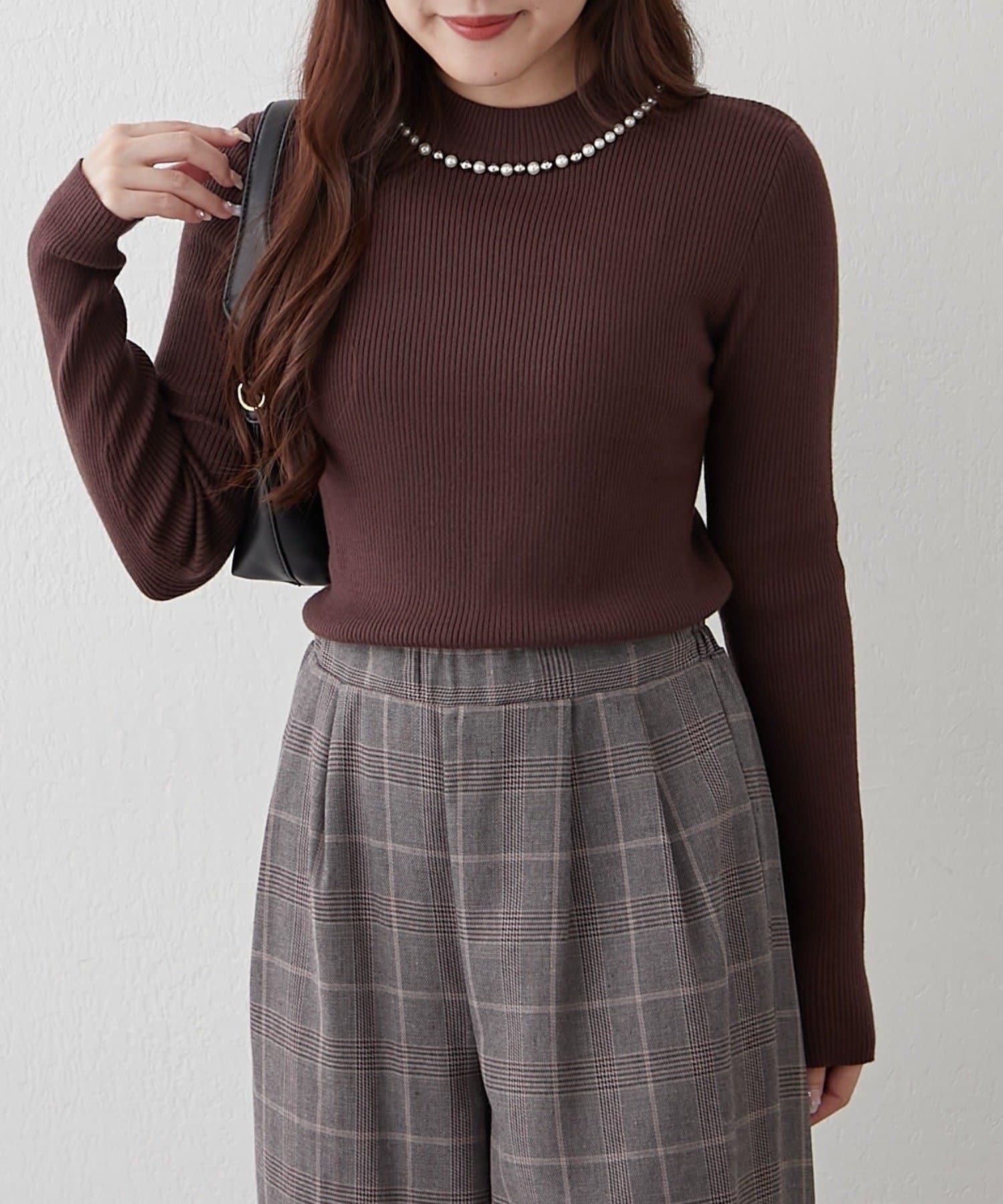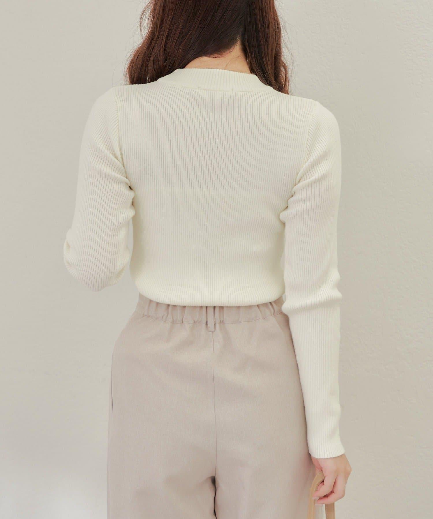 【RMAF】珍珠裝飾小高領羅紋針織衫