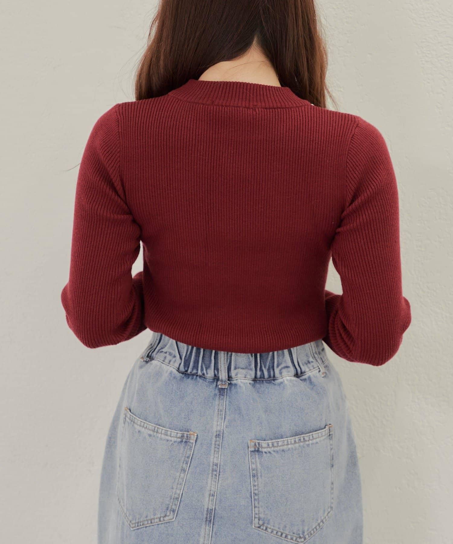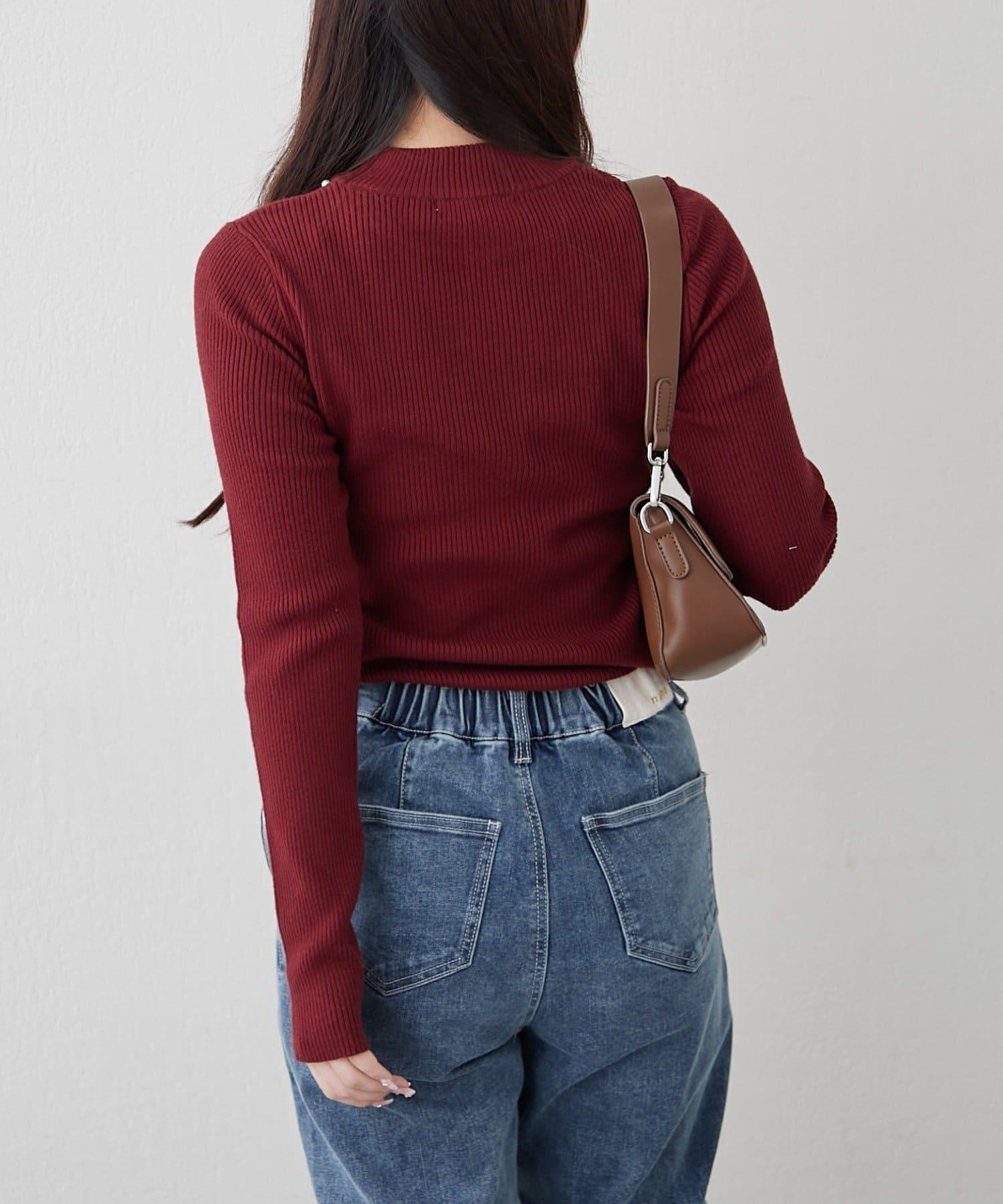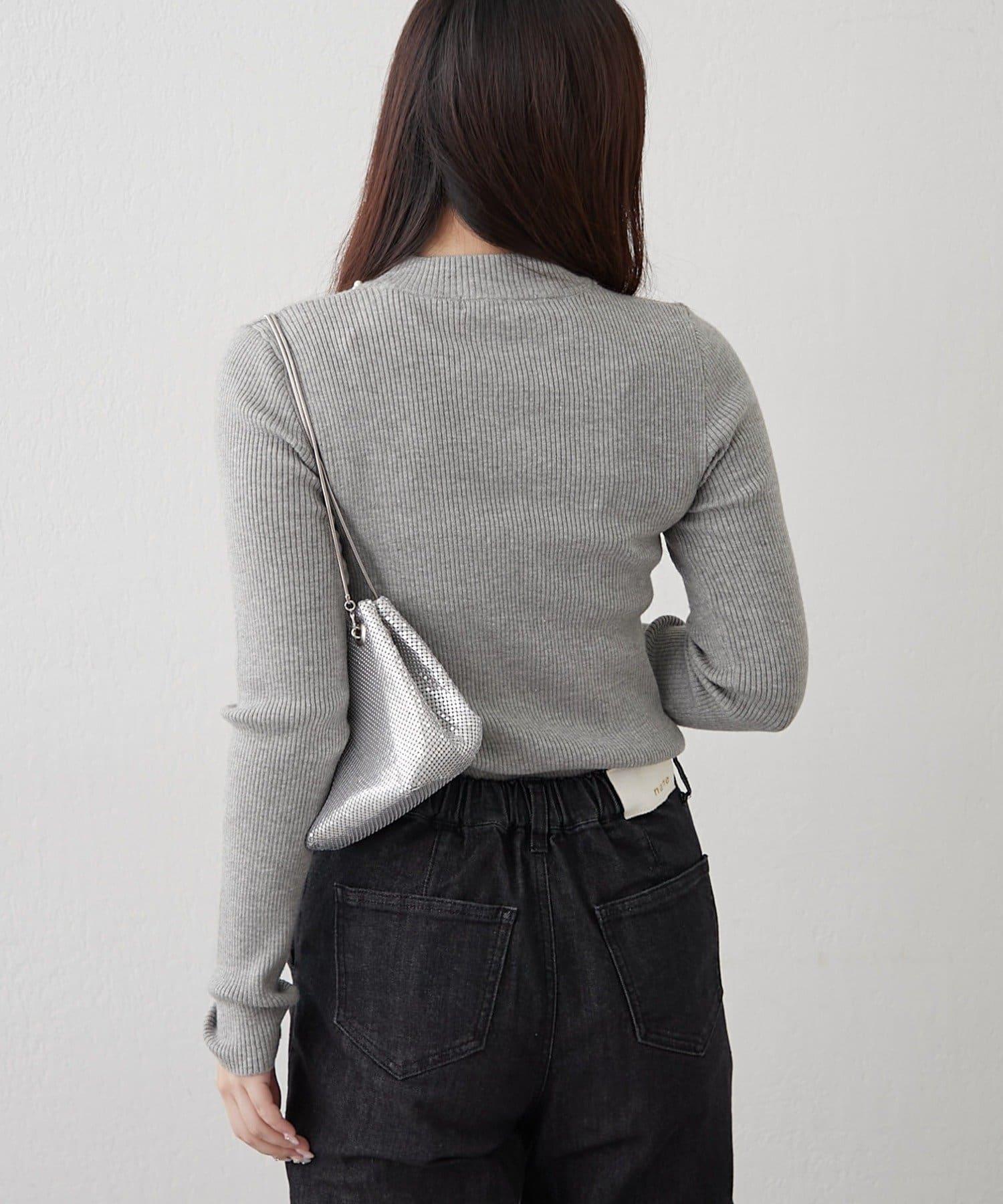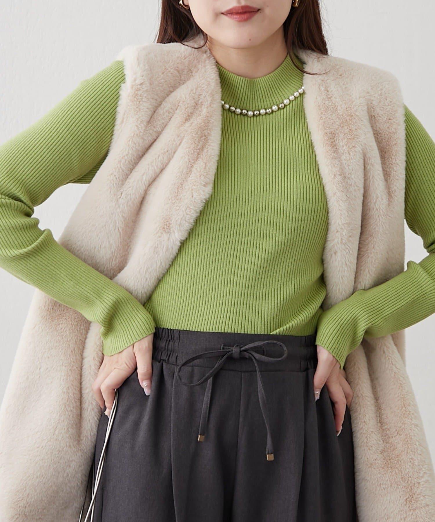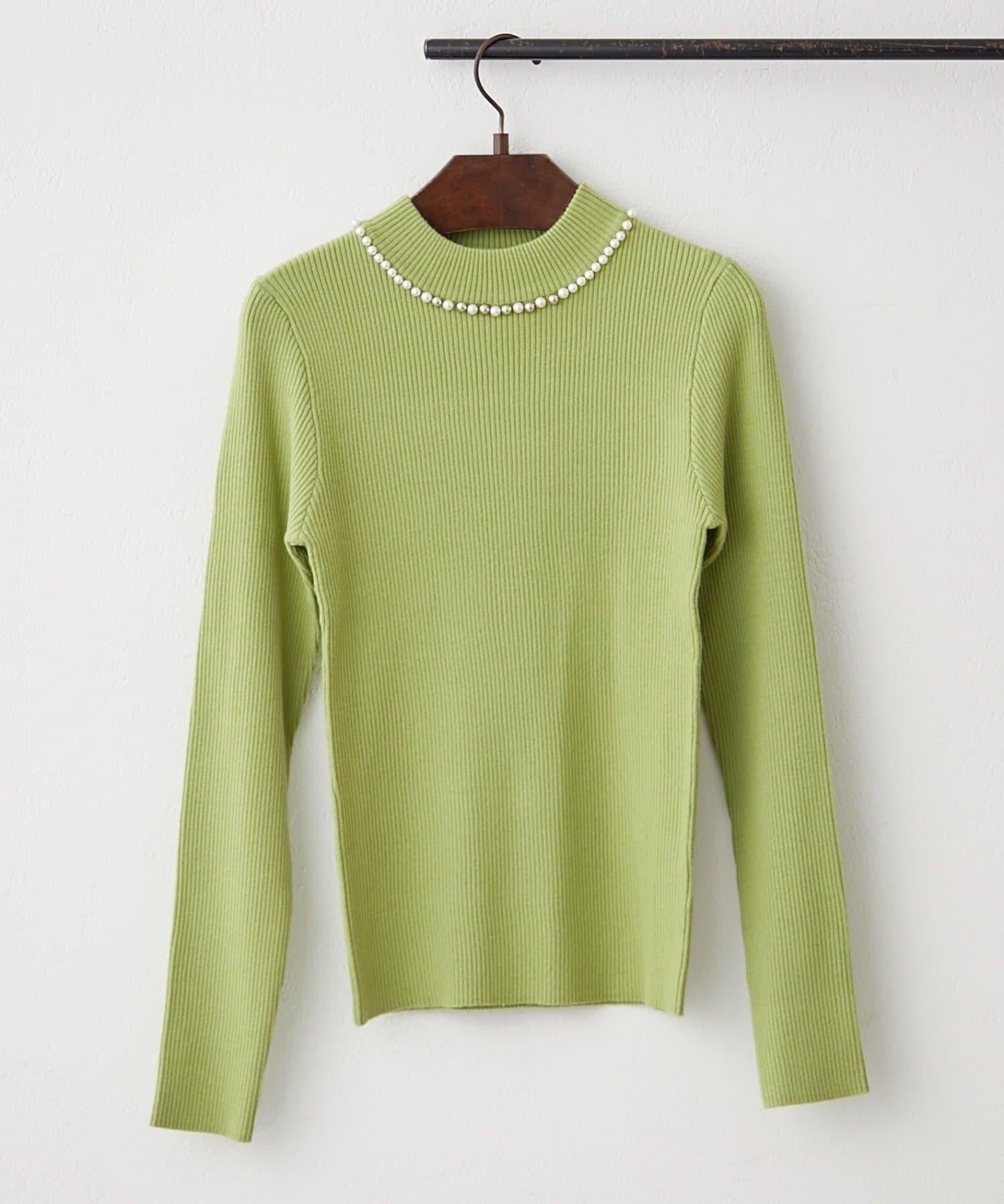 【RMAF】珍珠裝飾小高領羅紋針織衫