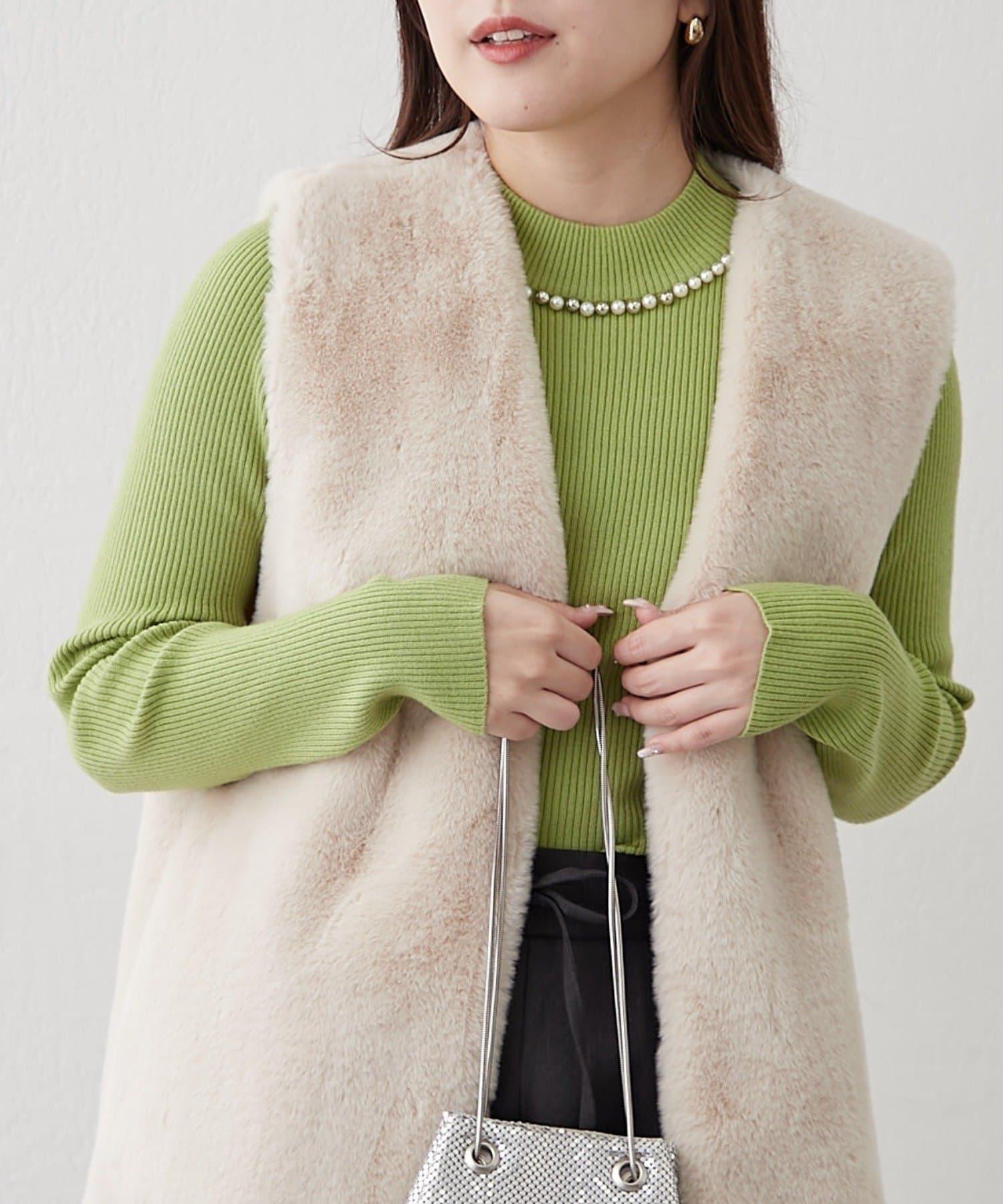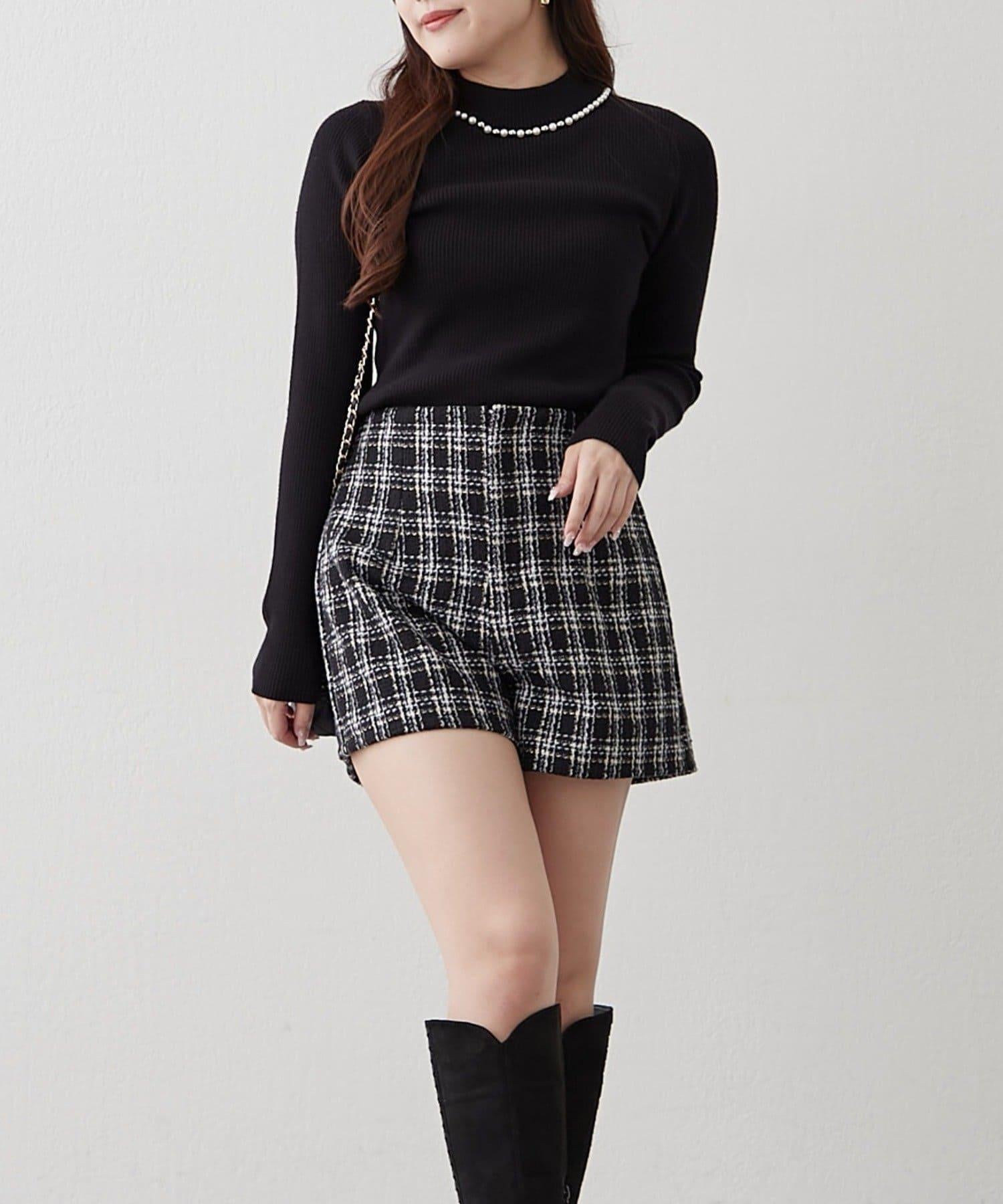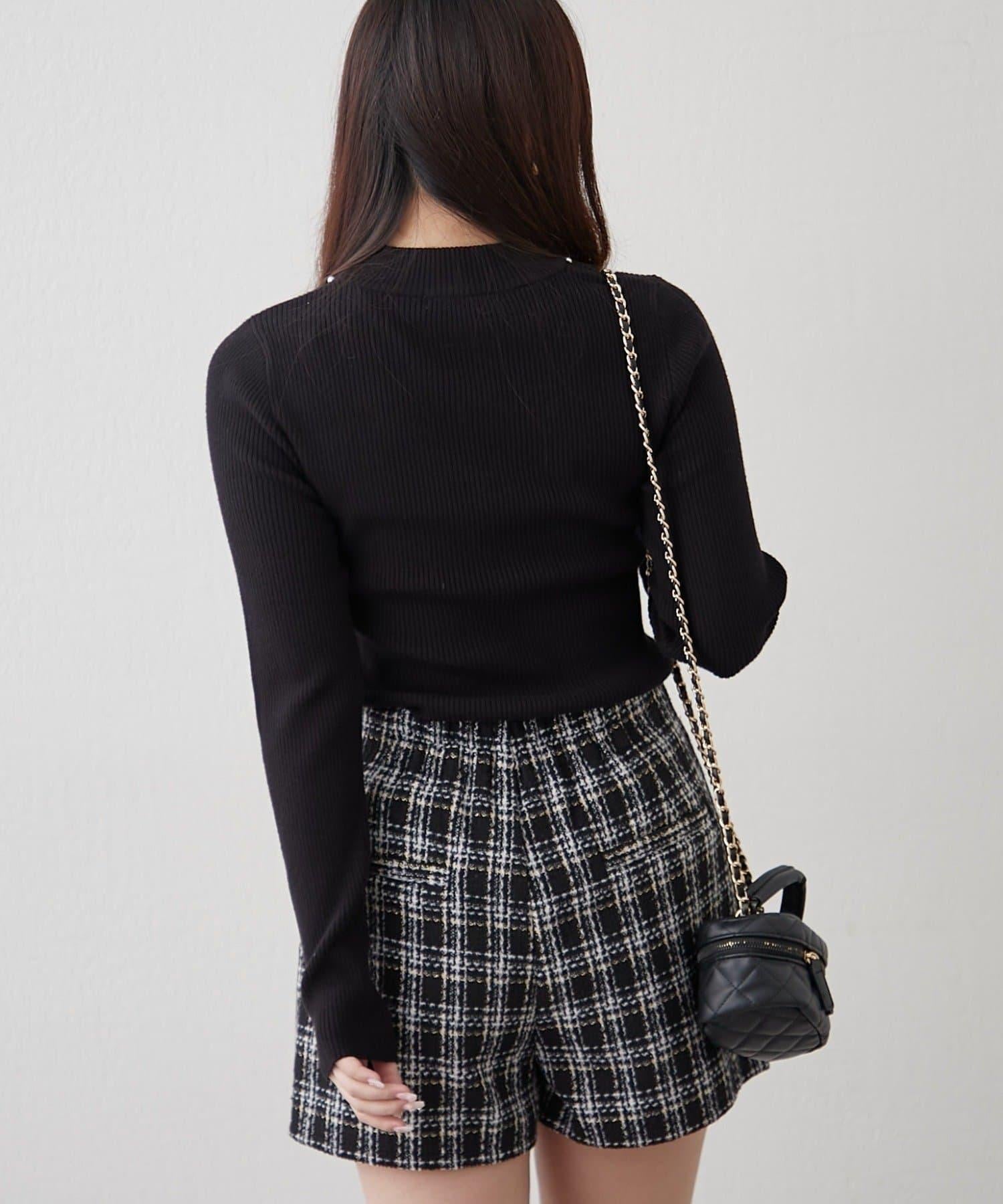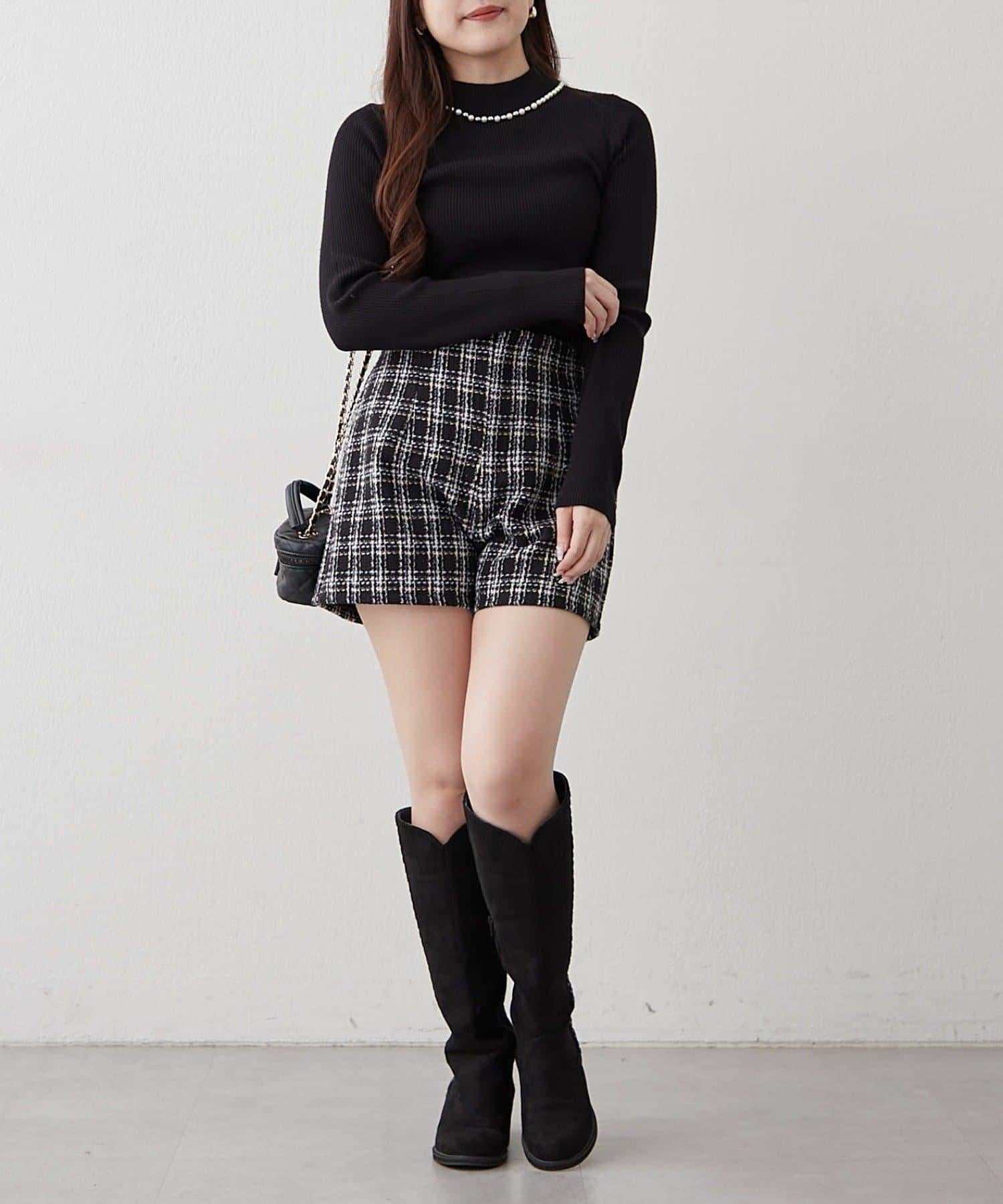 【RMAF】珍珠裝飾小高領羅紋針織衫