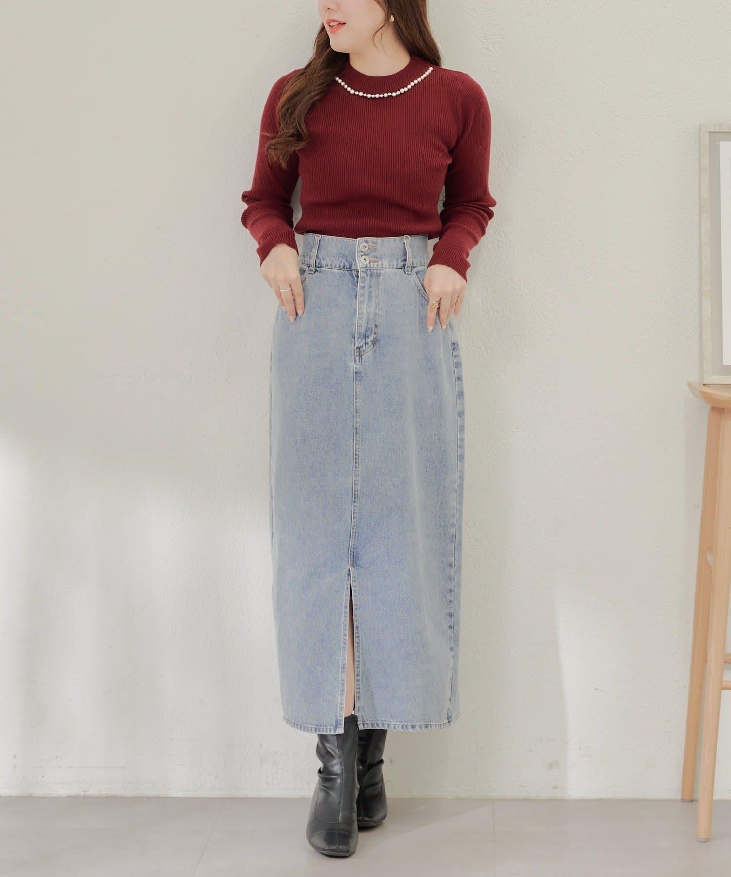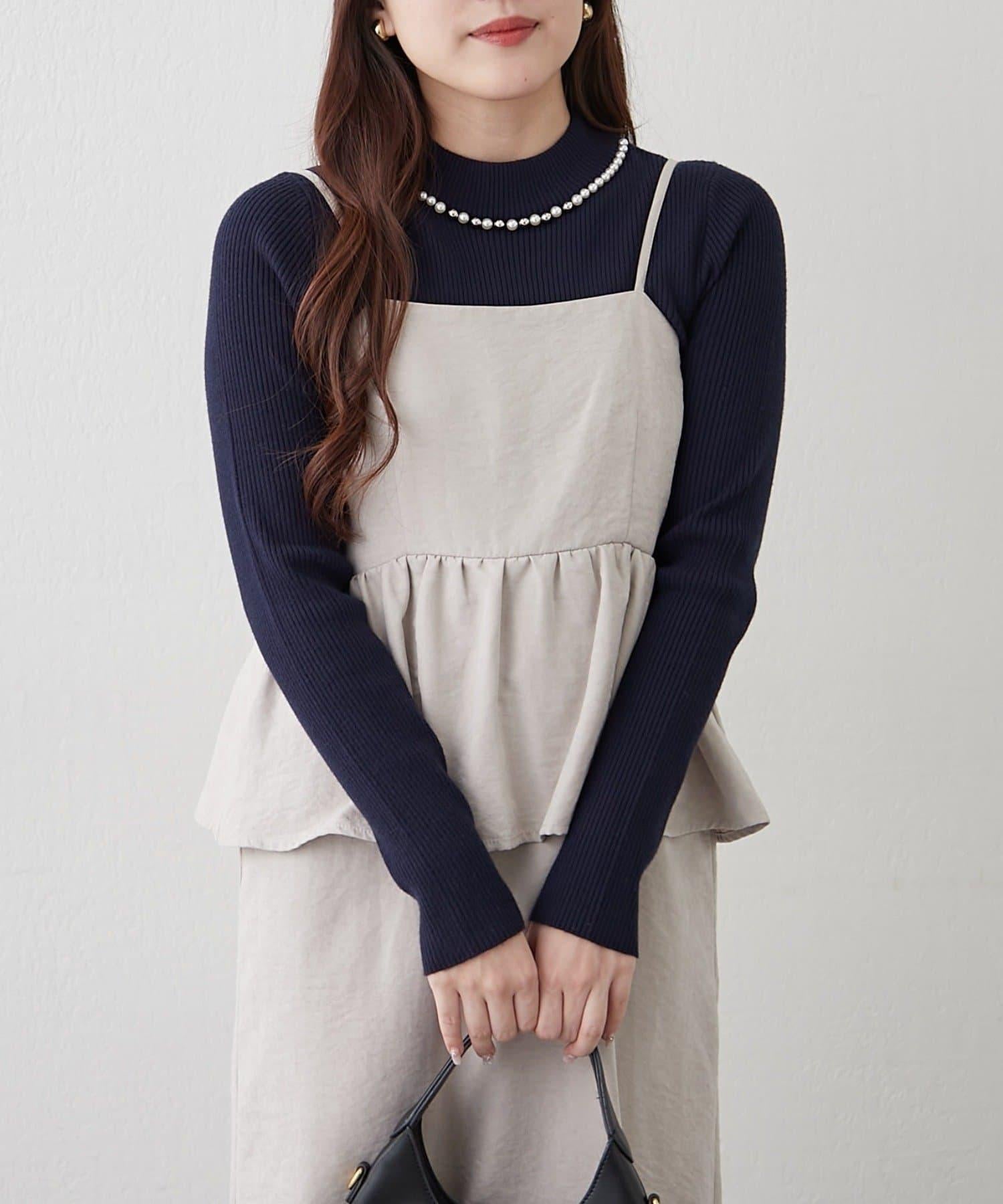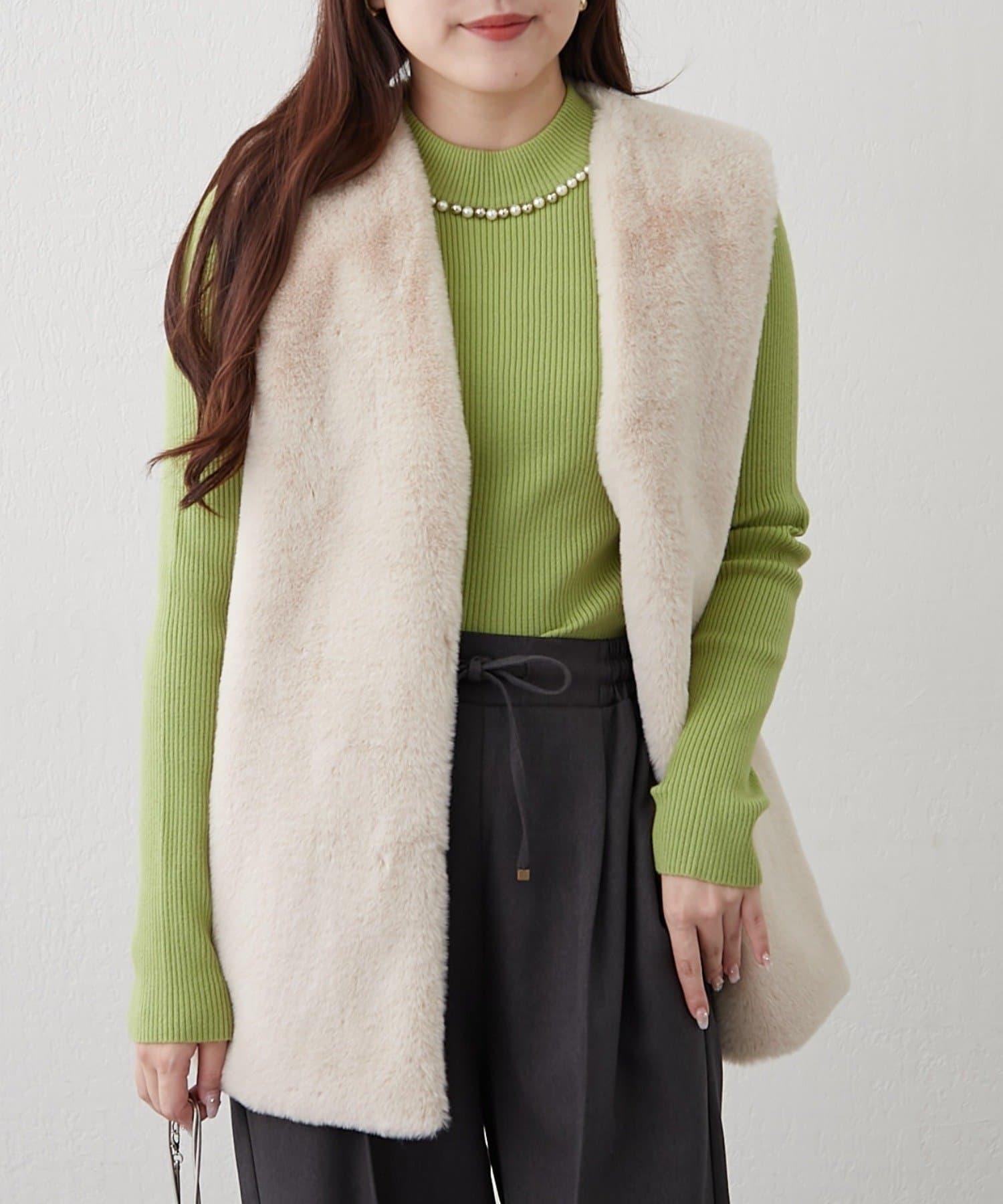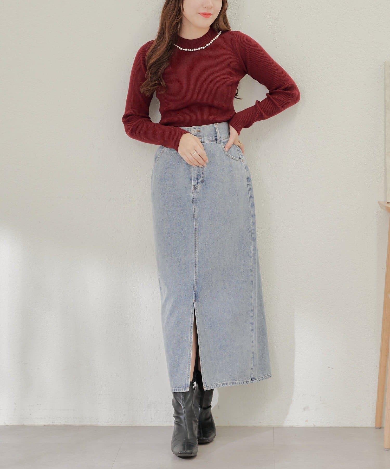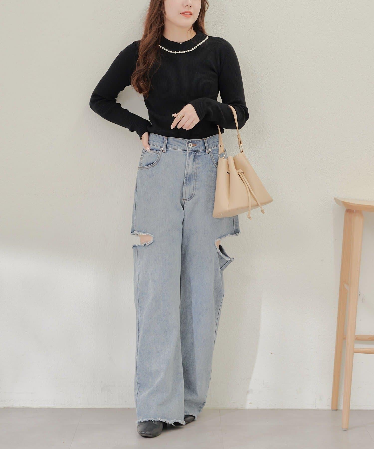 【RMAF】珍珠裝飾小高領羅紋針織衫