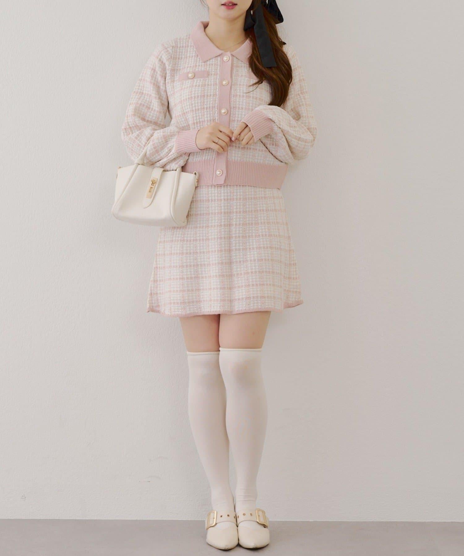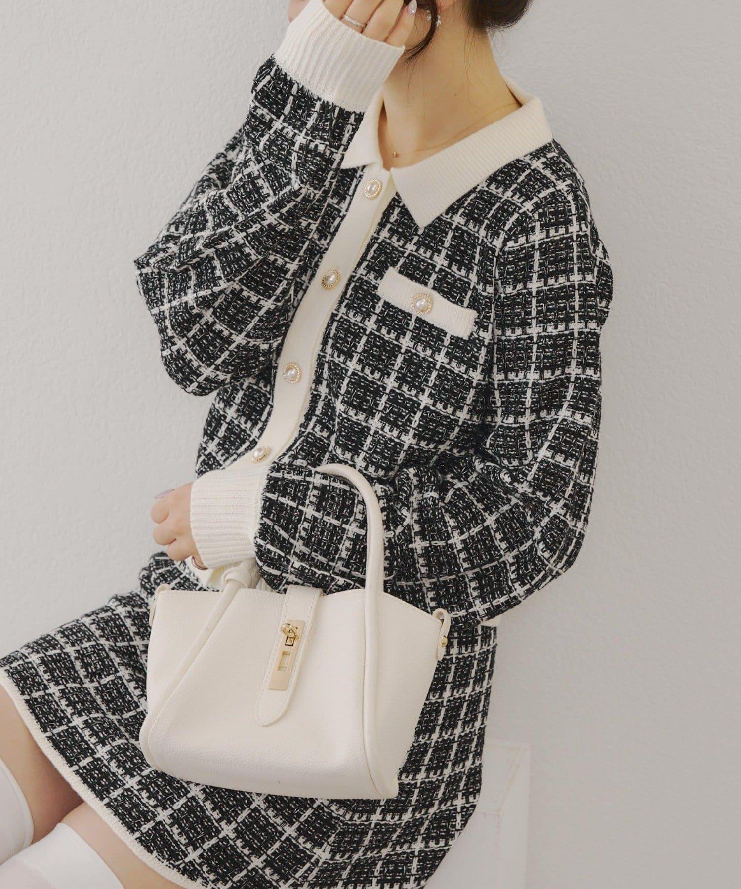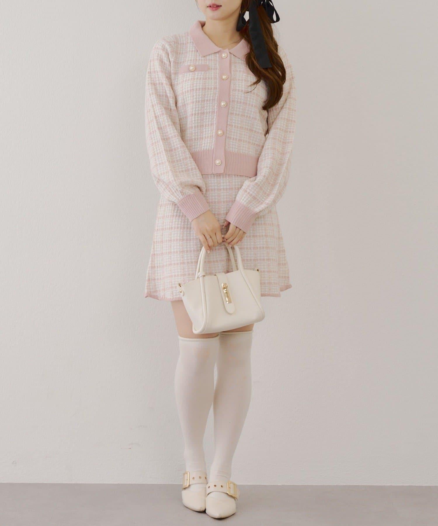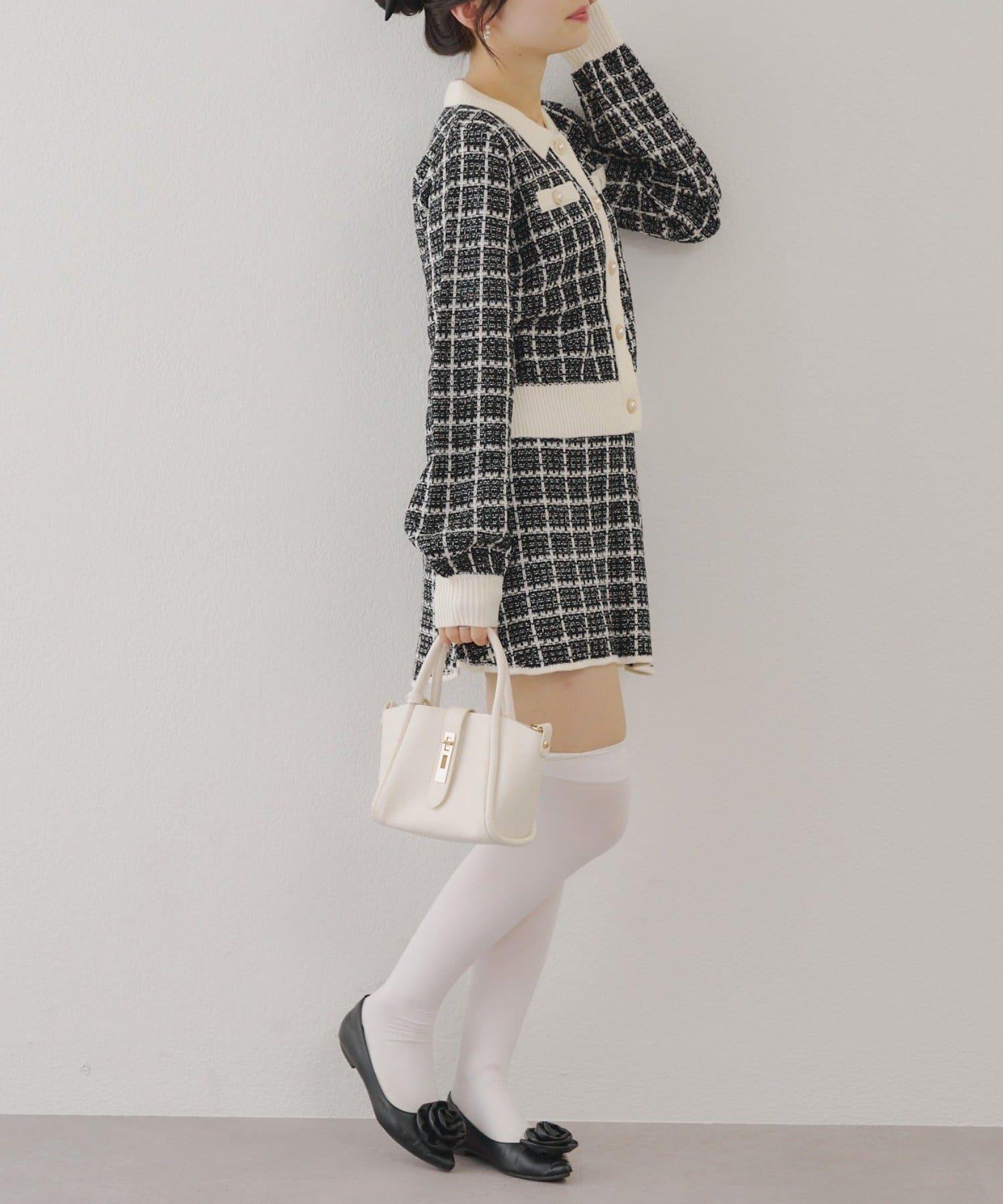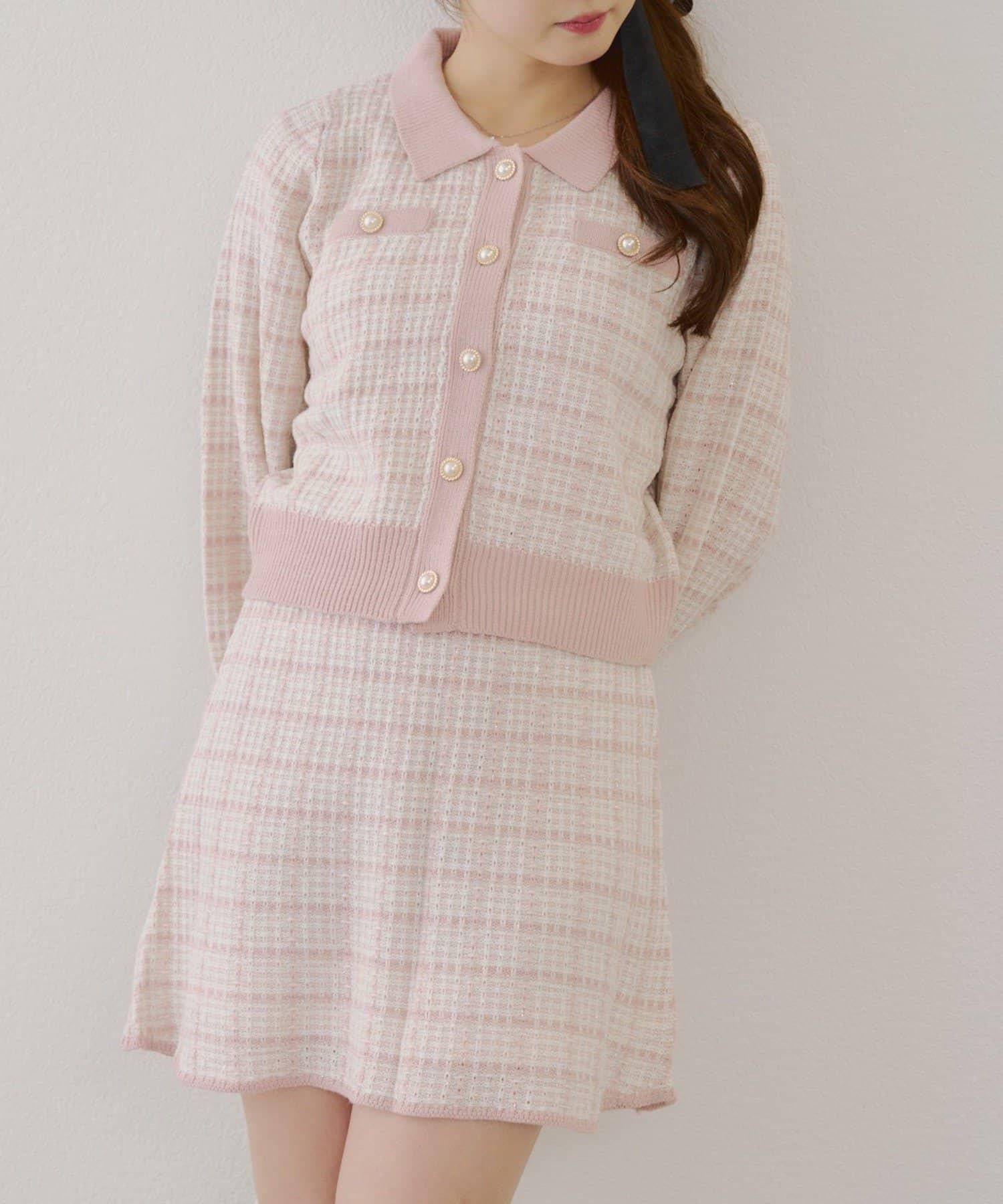 可愛的針織開衫和迷你裙套裝,採用優雅的斜紋軟呢面料。