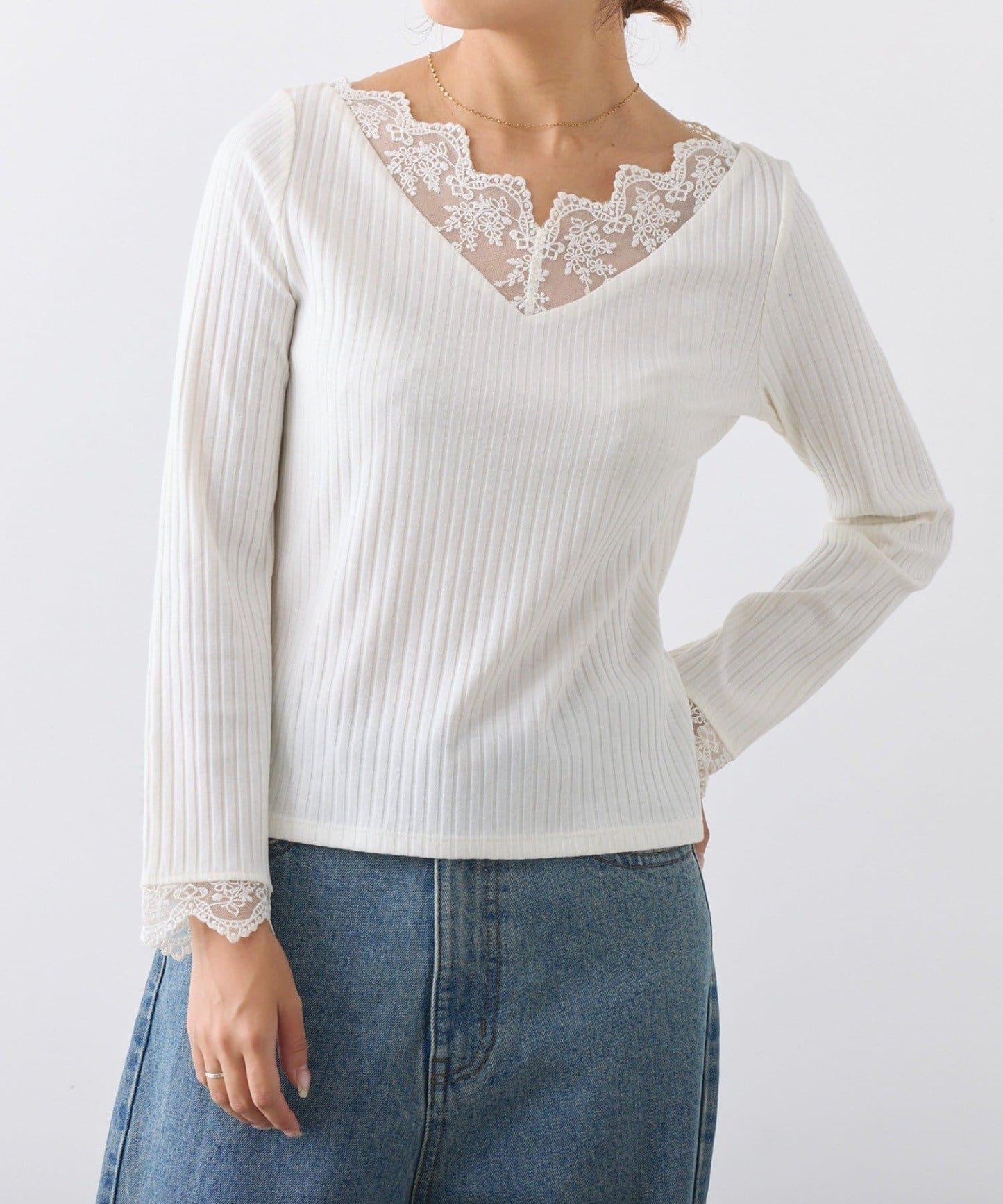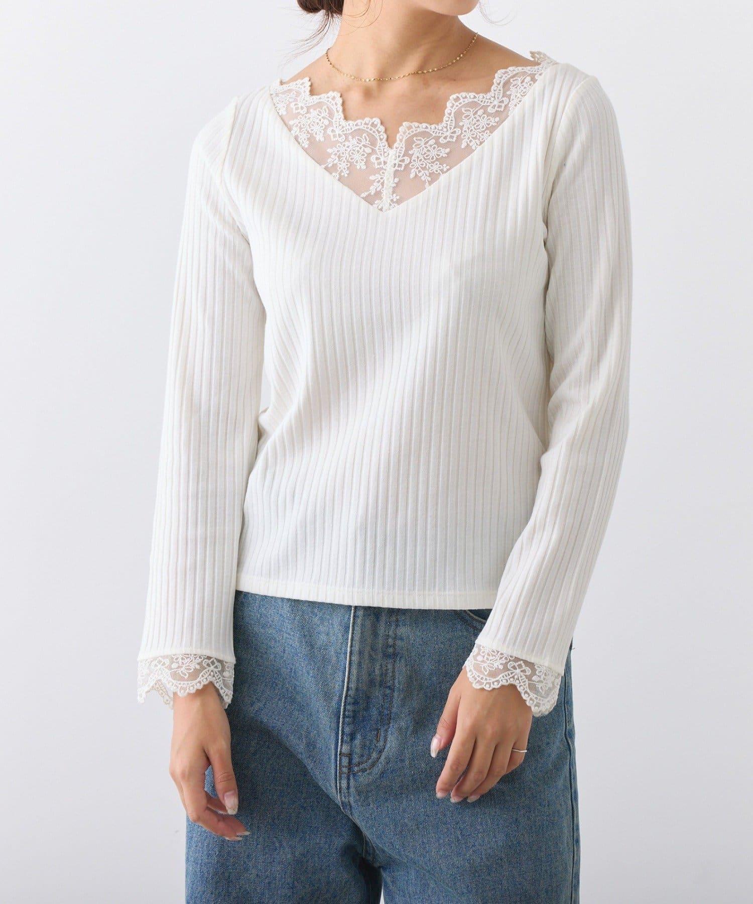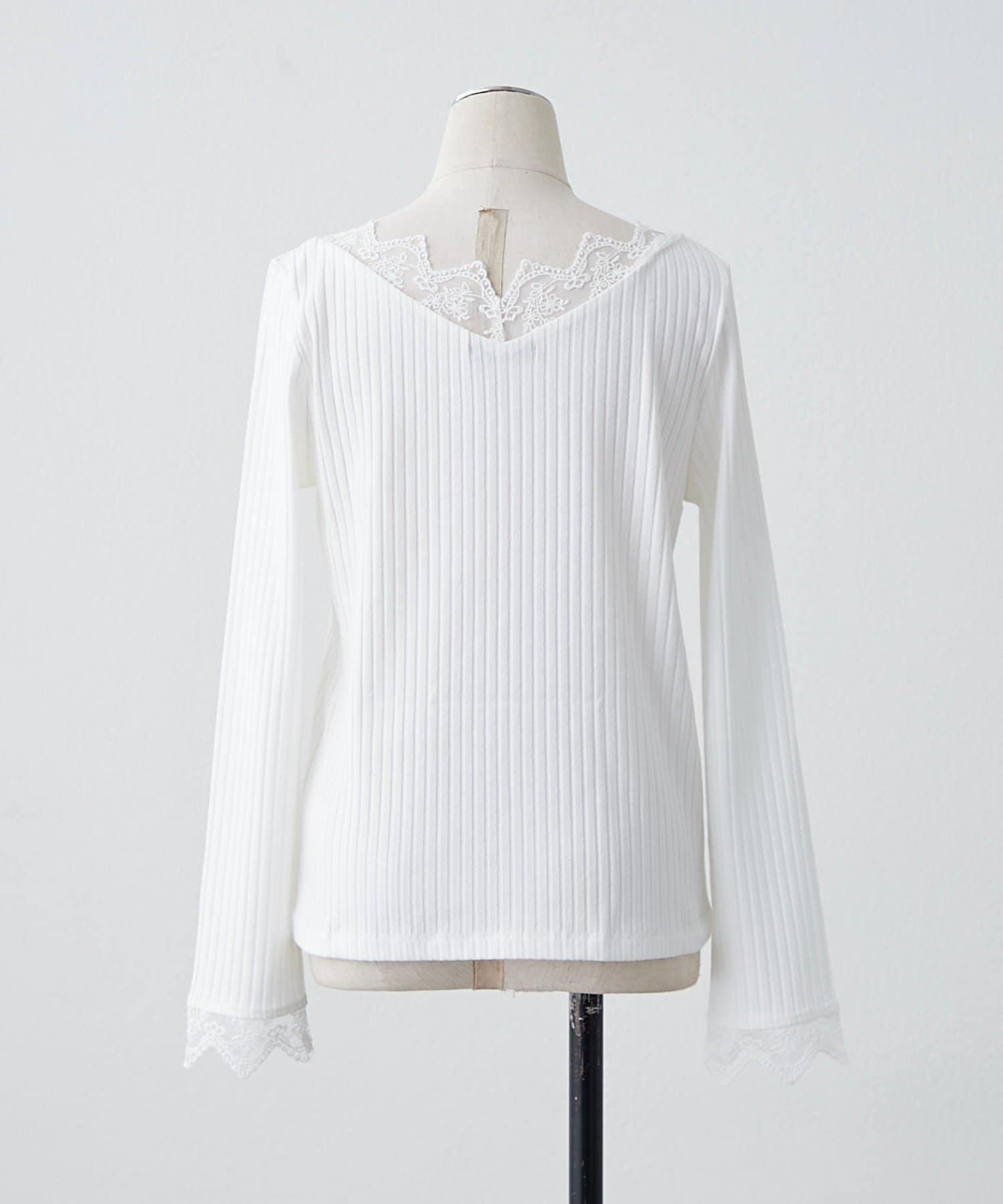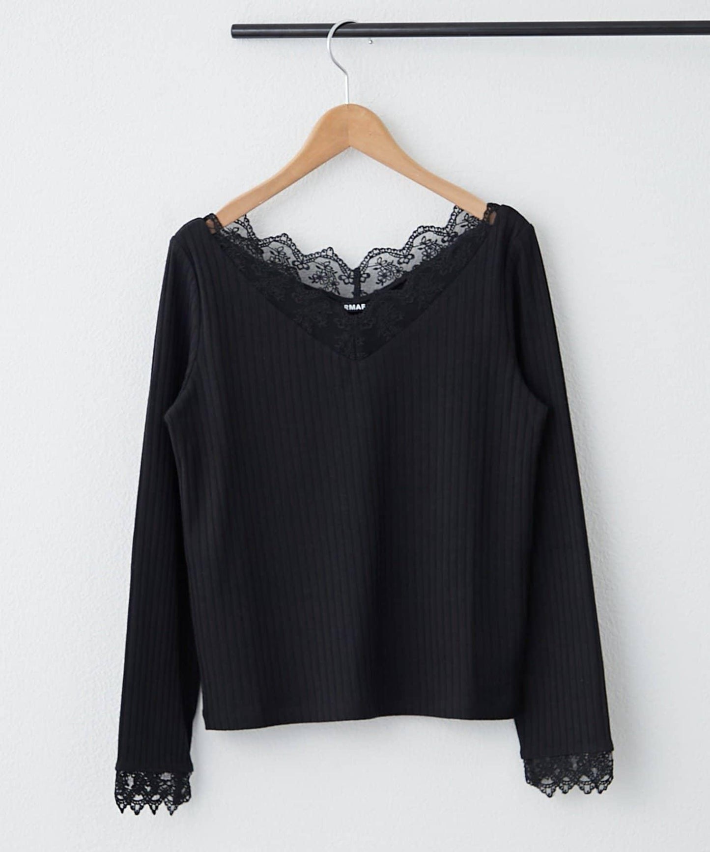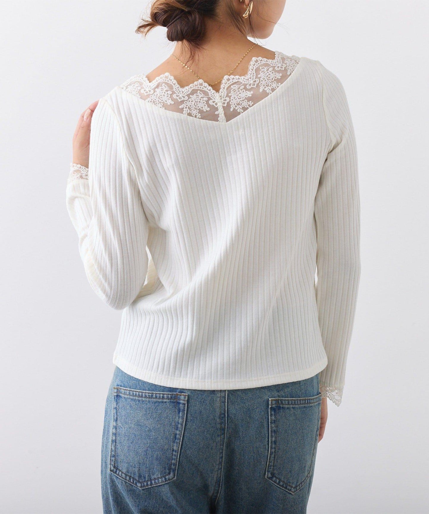 【RMAF】羅紋V領蕾絲長袖套頭衫