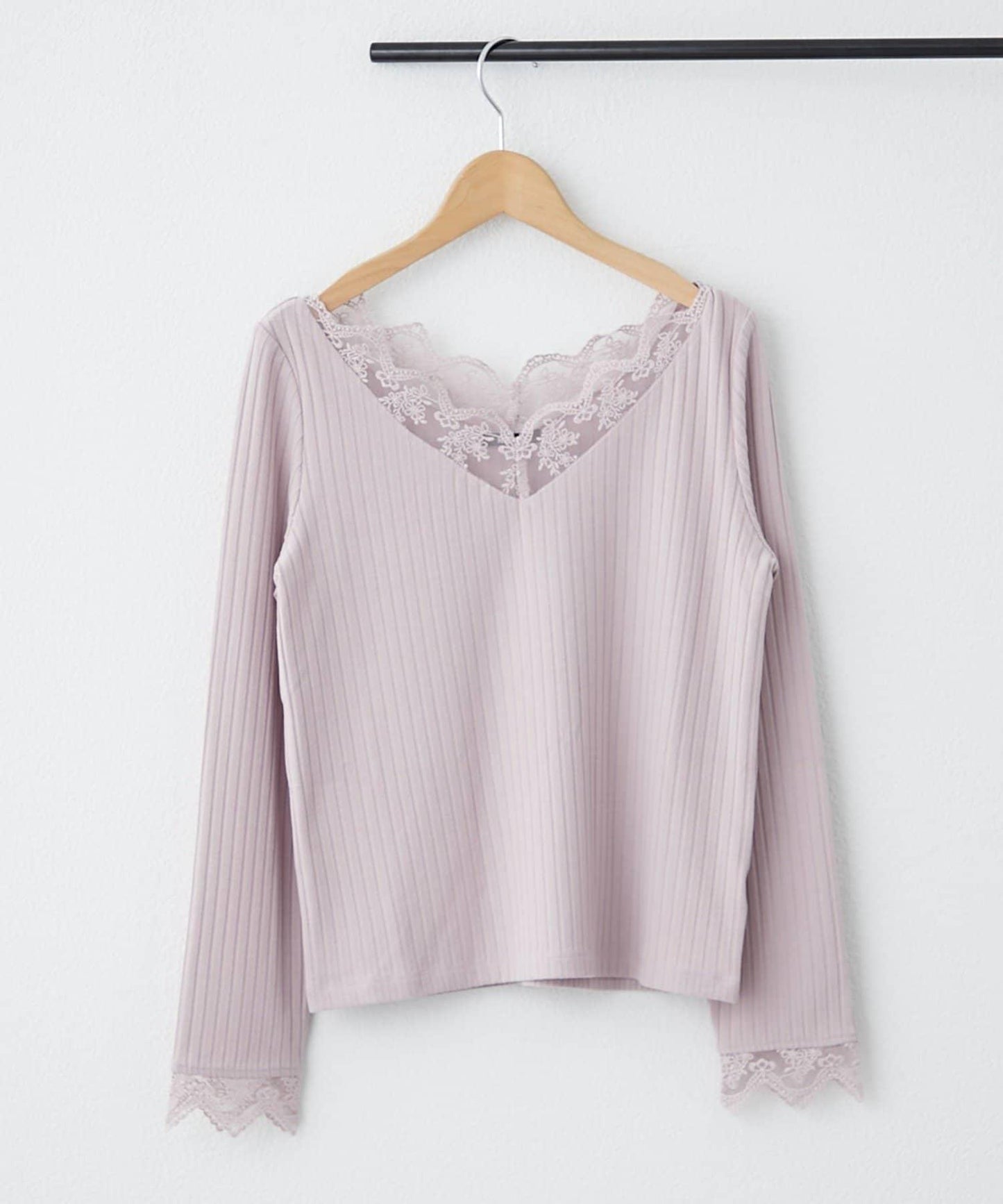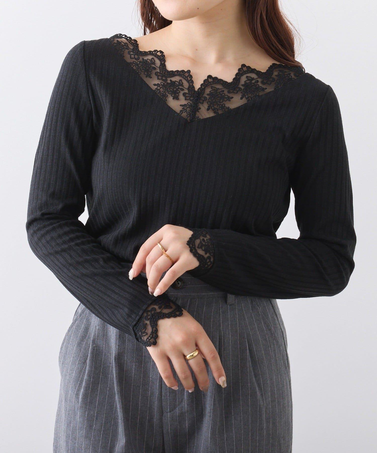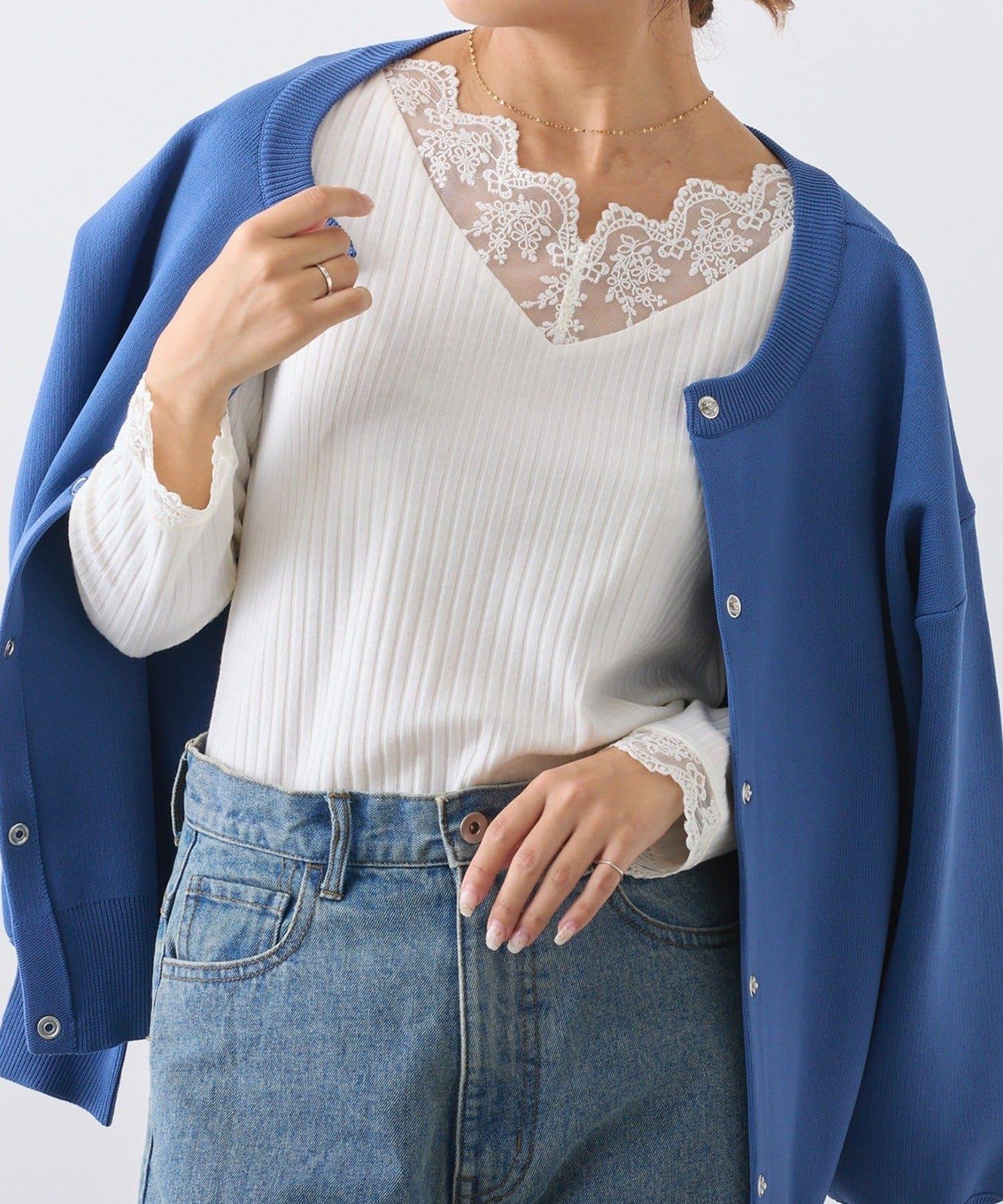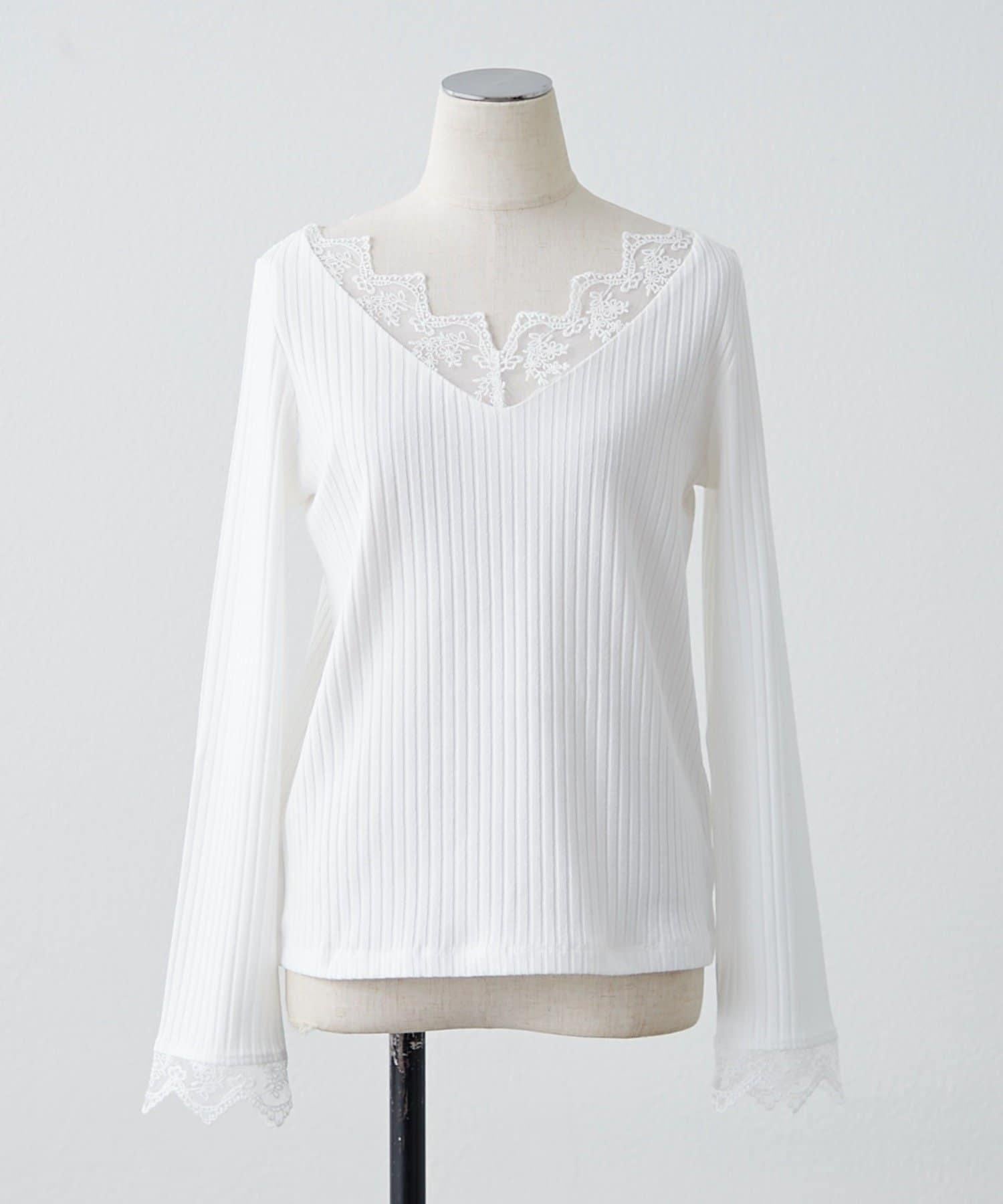 【RMAF】羅紋V領蕾絲長袖套頭衫