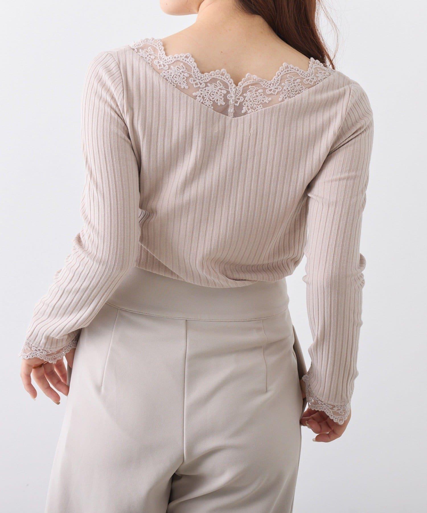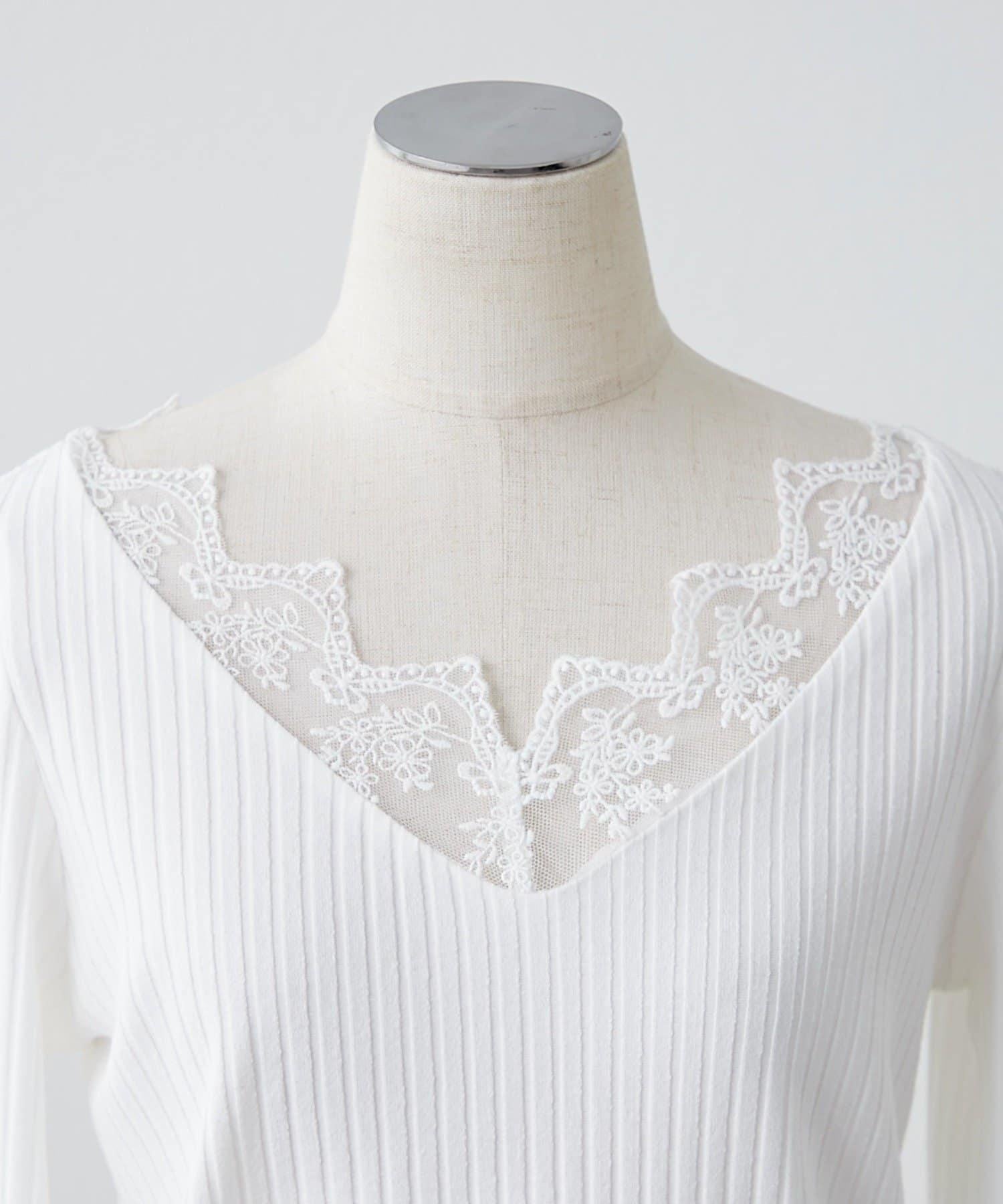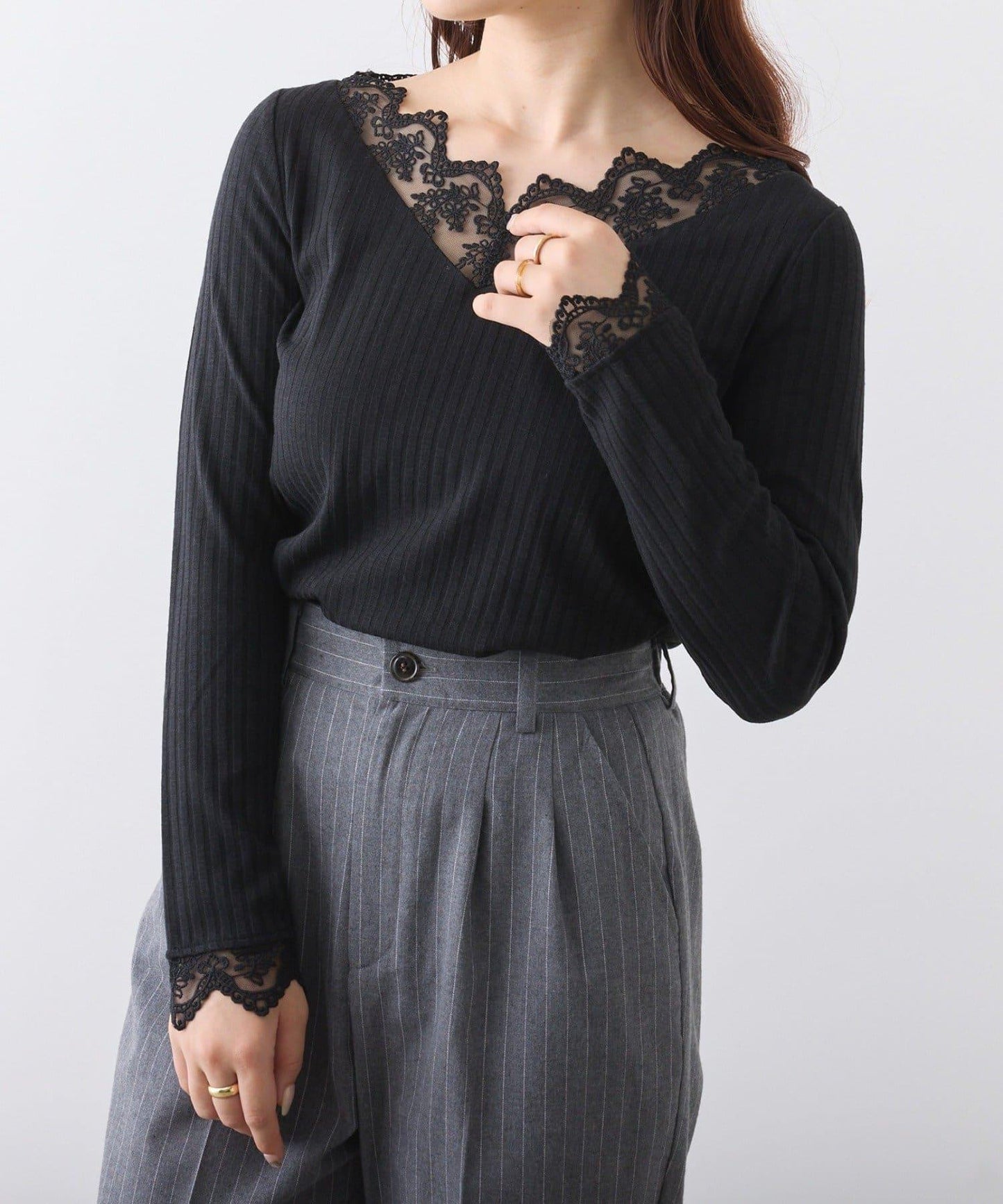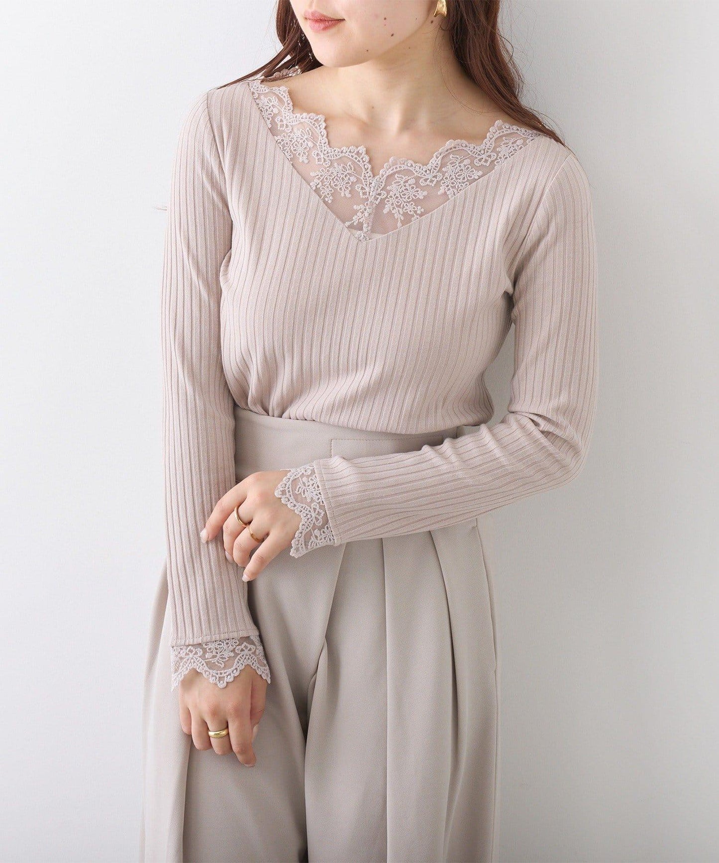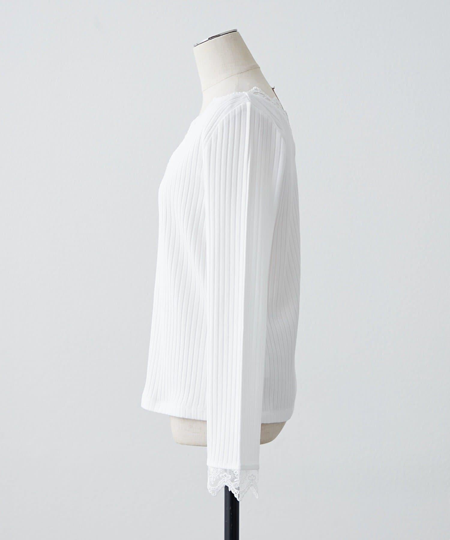 【RMAF】羅紋V領蕾絲長袖套頭衫