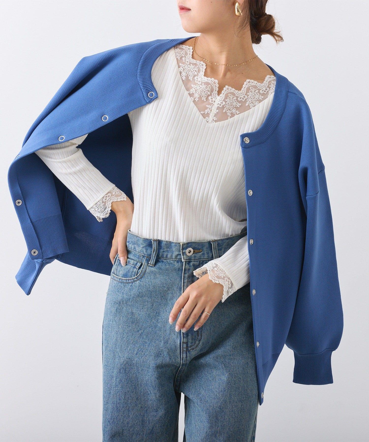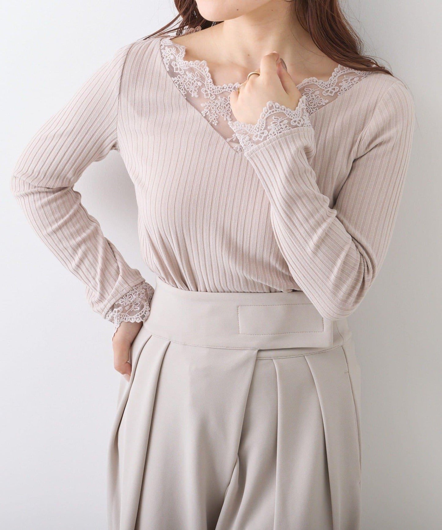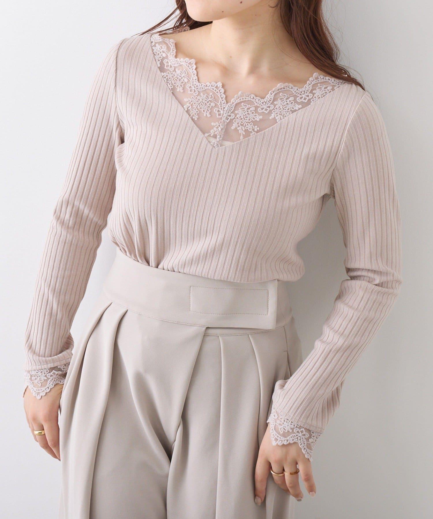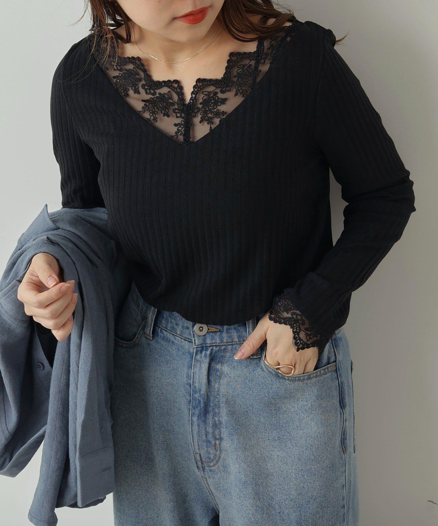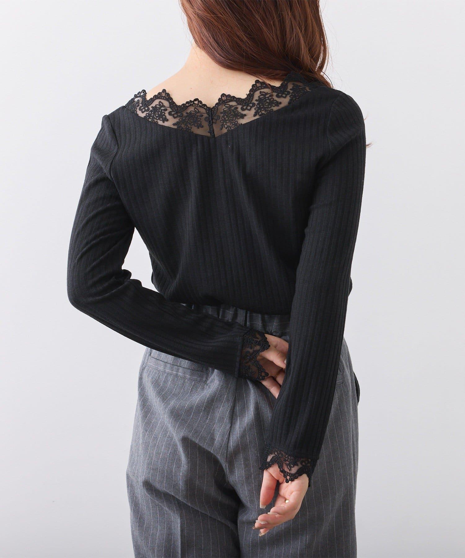 【RMAF】羅紋V領蕾絲長袖套頭衫