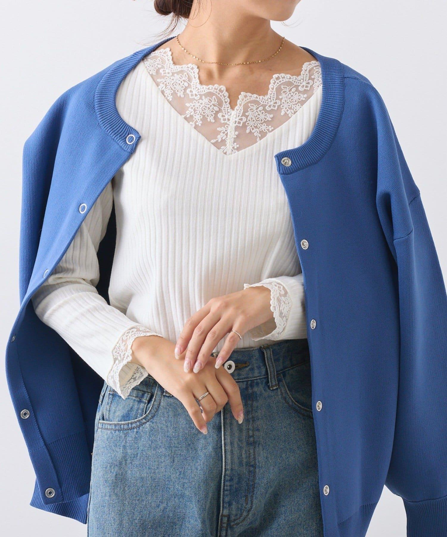 與 V 領針織衫搭配,更顯蕾絲效果。
