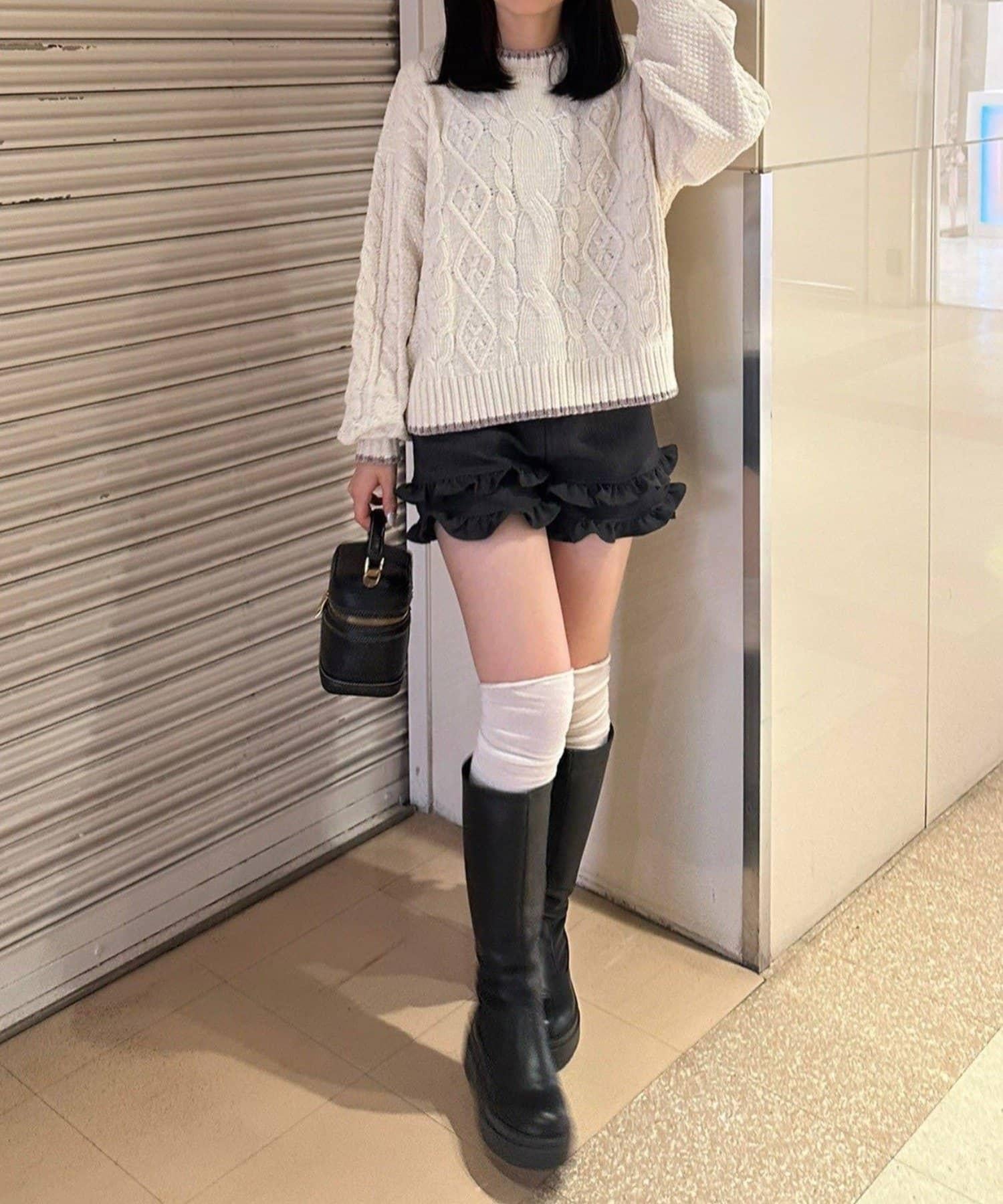 迷你下裝與長筒靴的完美組合,打造皇家圖案的搭配。