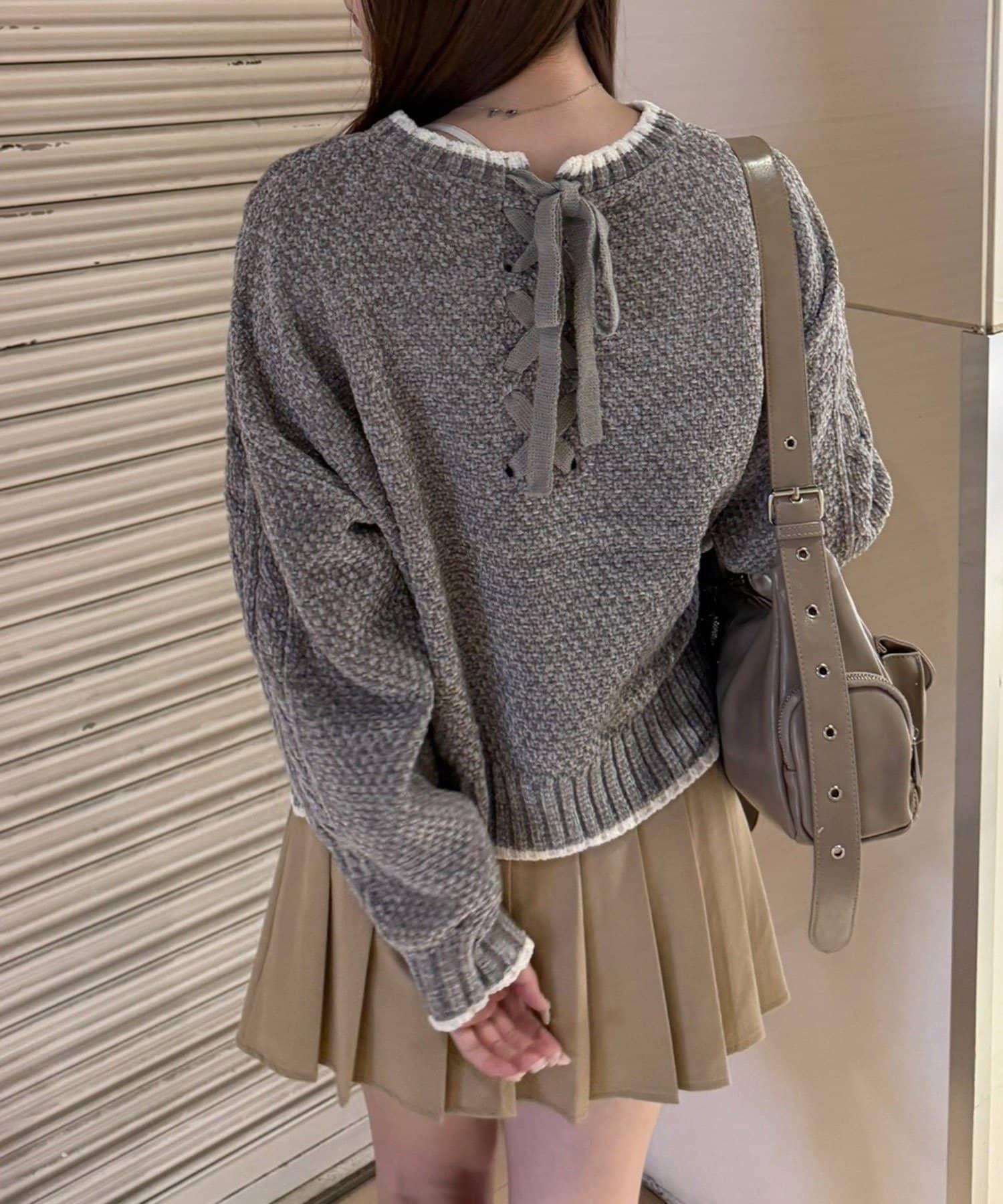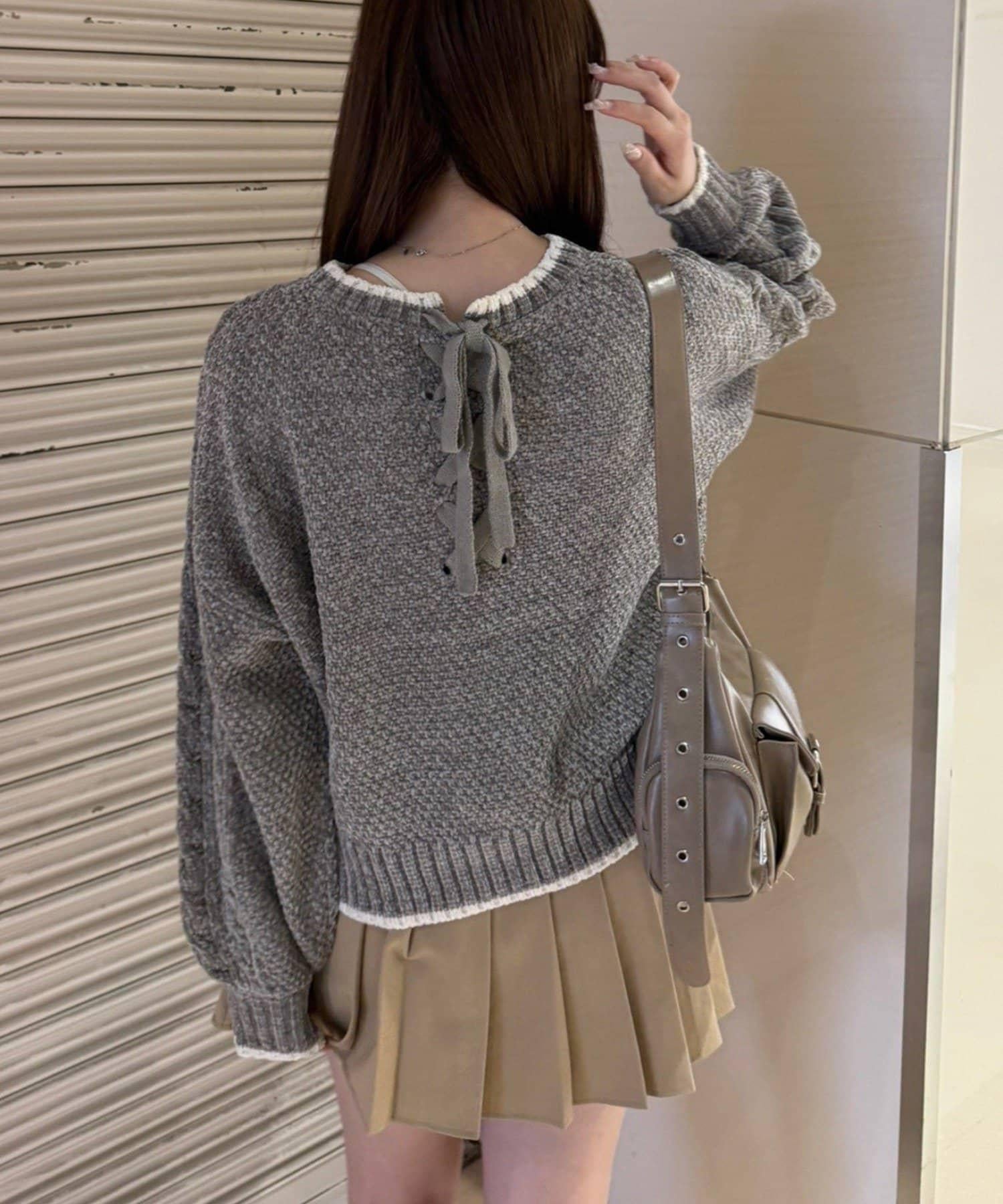 【RMAF】背部蝴蝶結天鵝絨毛線編織針織衫