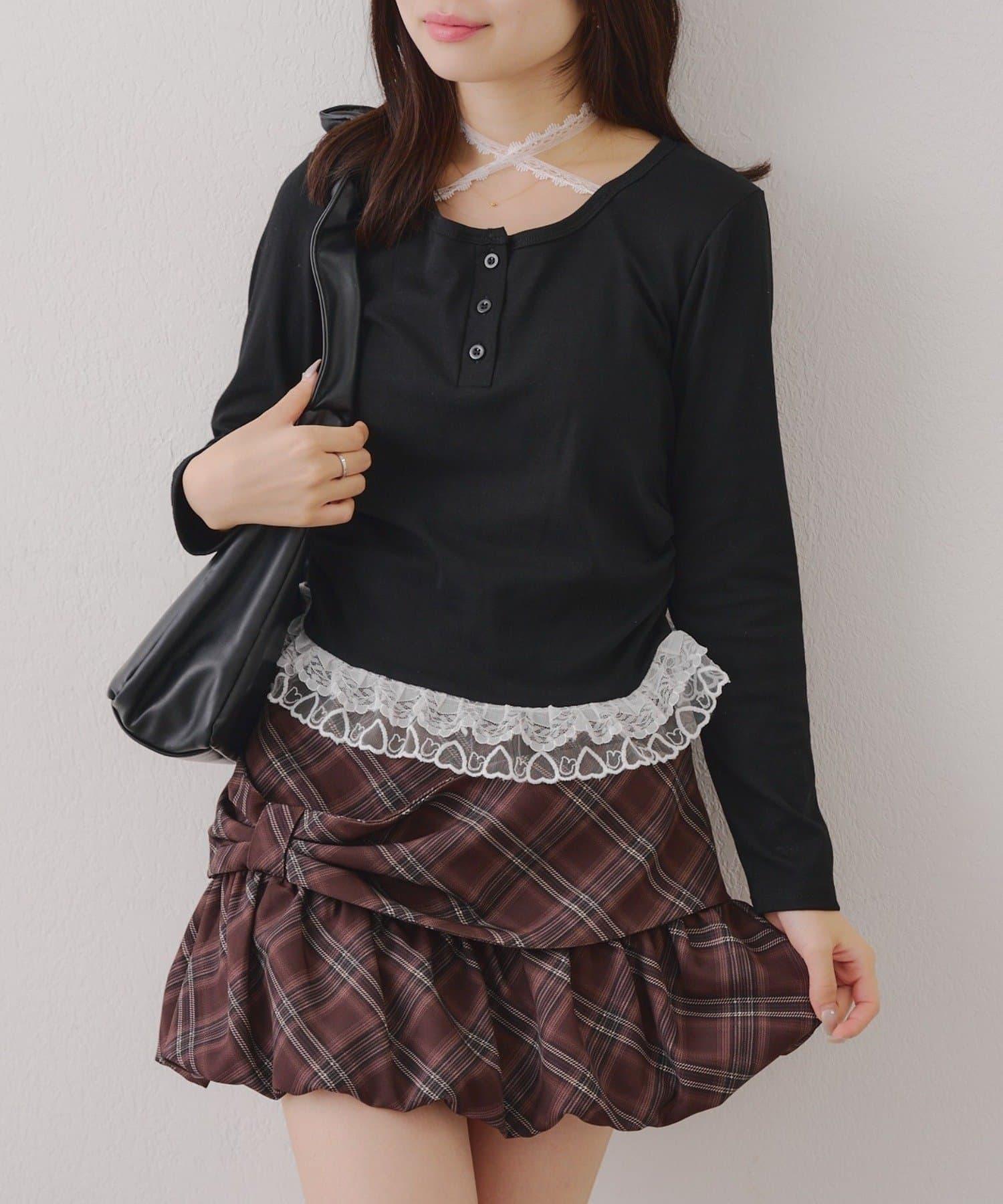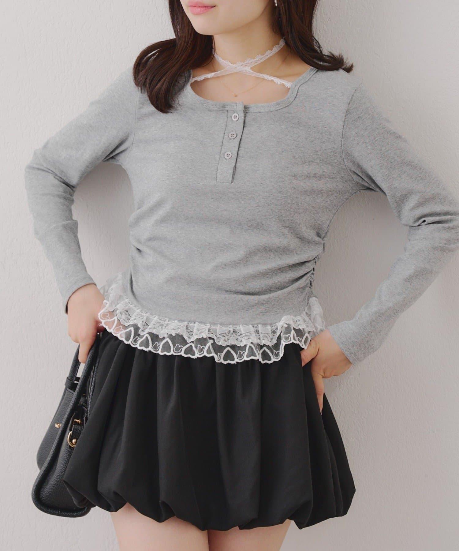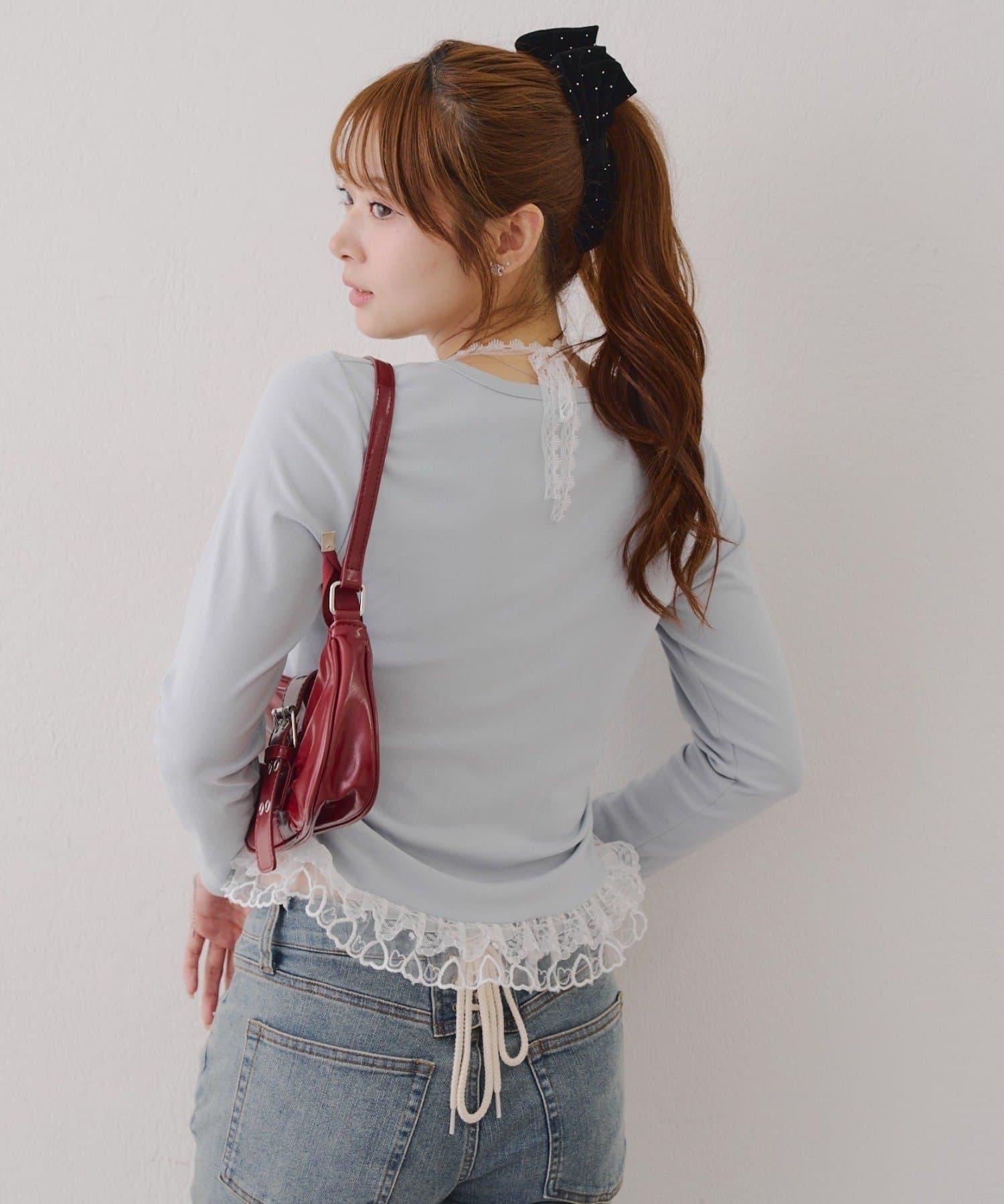 突出甜美感的蕾絲下襬也是亮點之一。