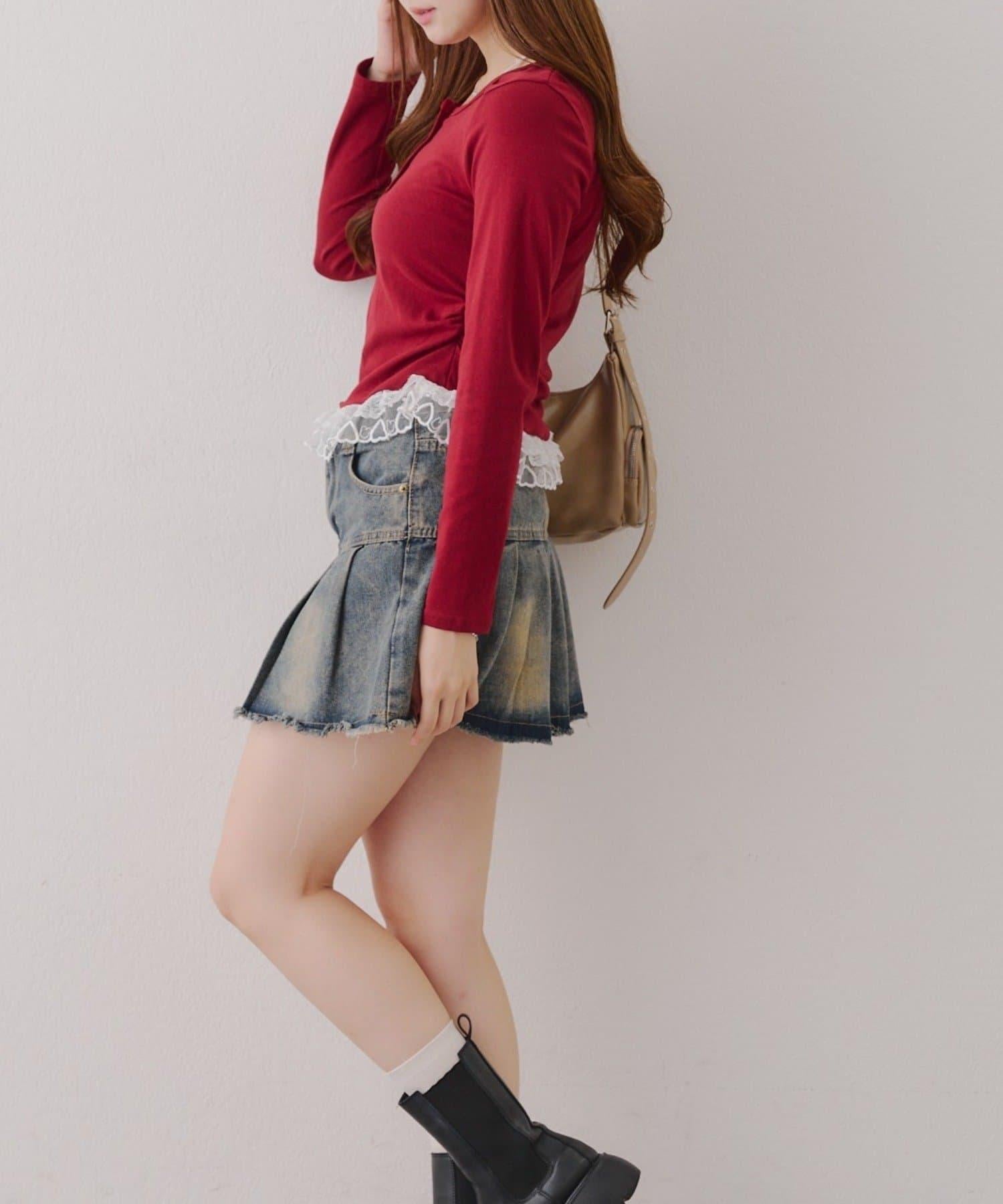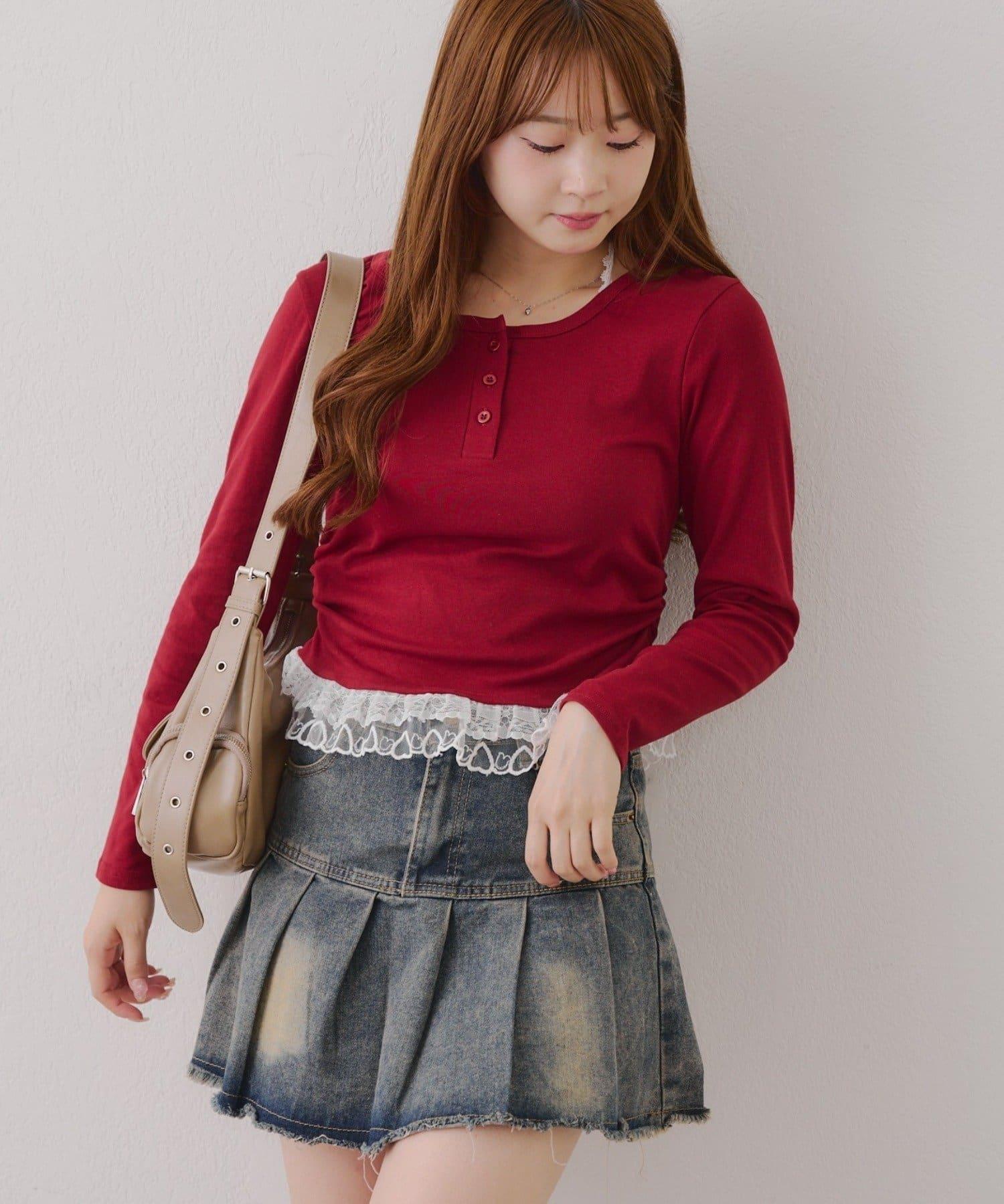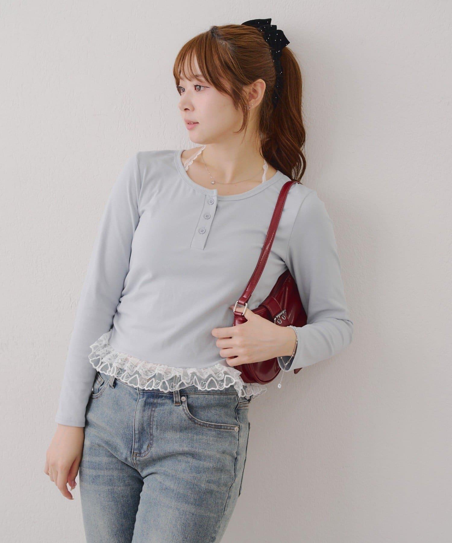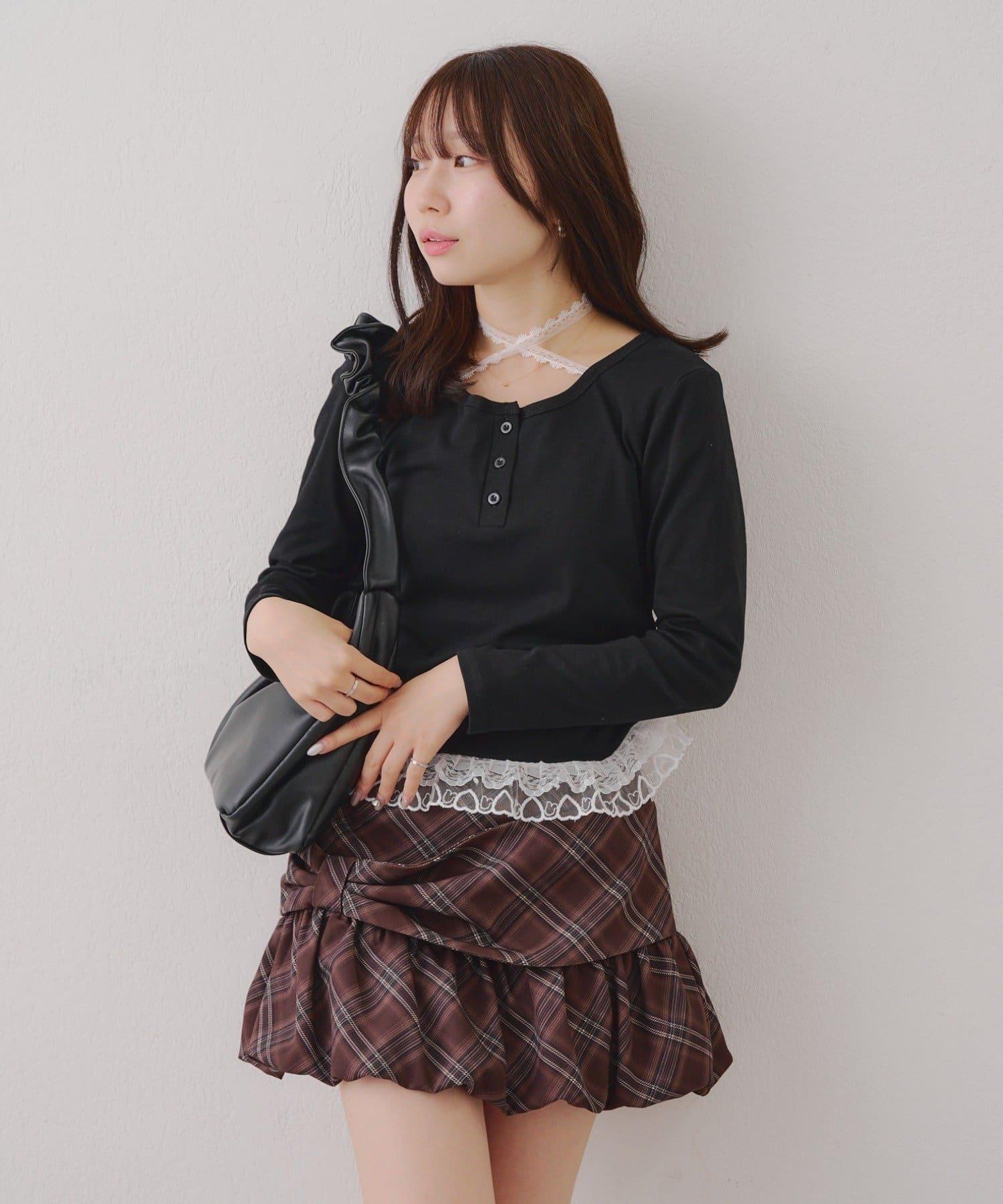 突出甜美感的蕾絲下襬也是亮點之一。