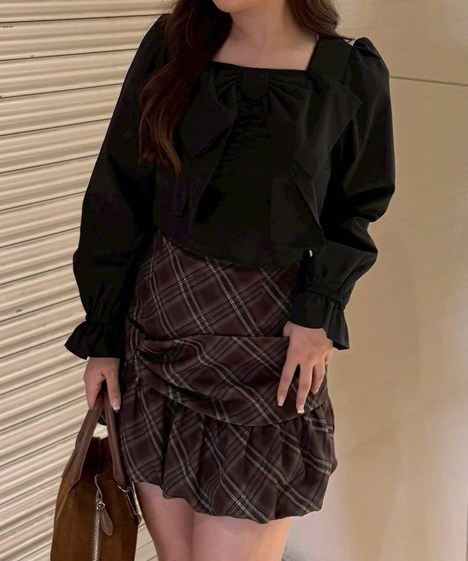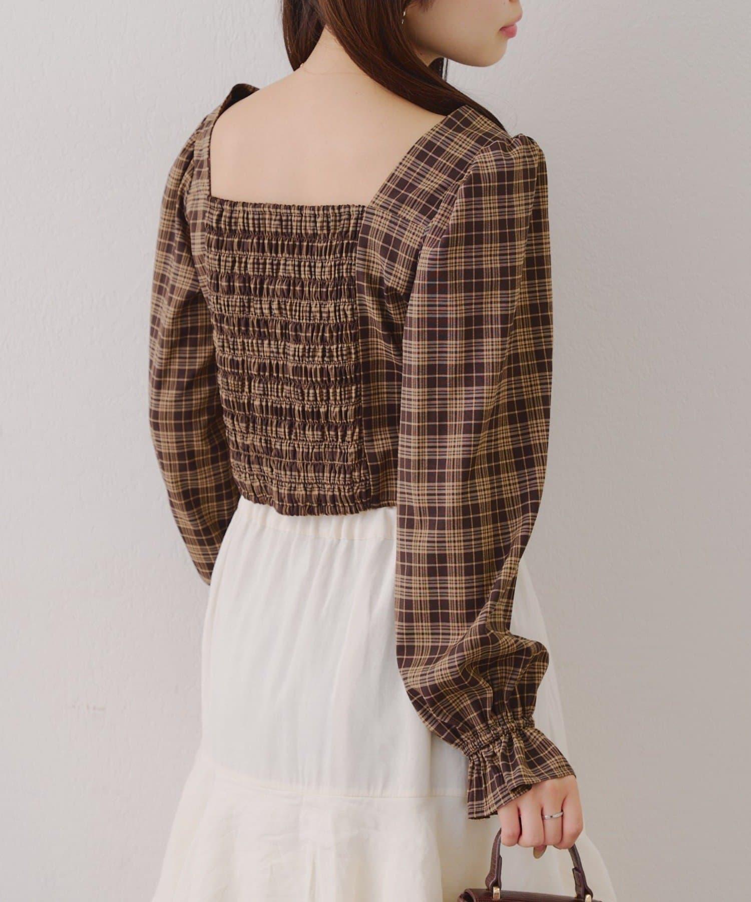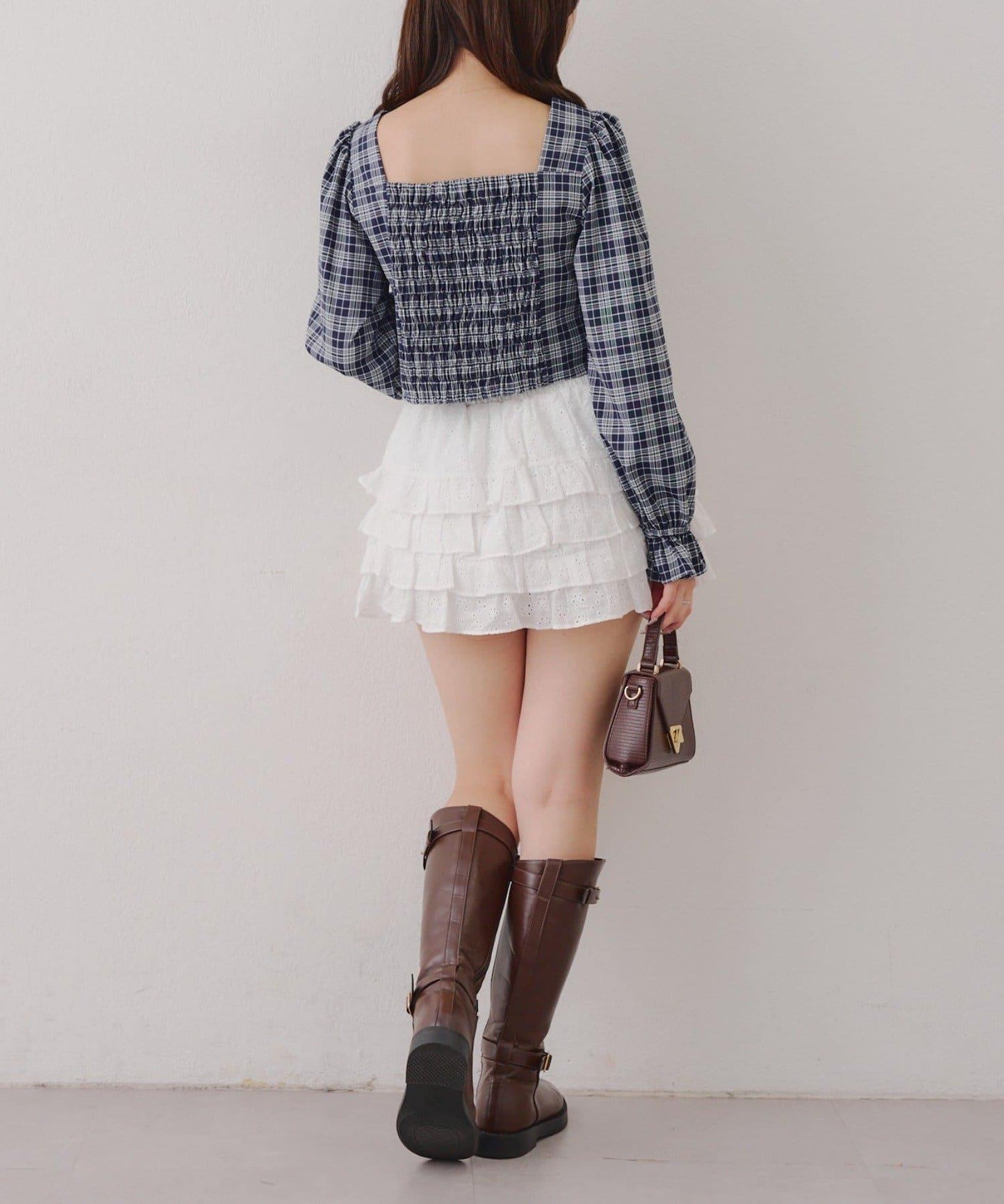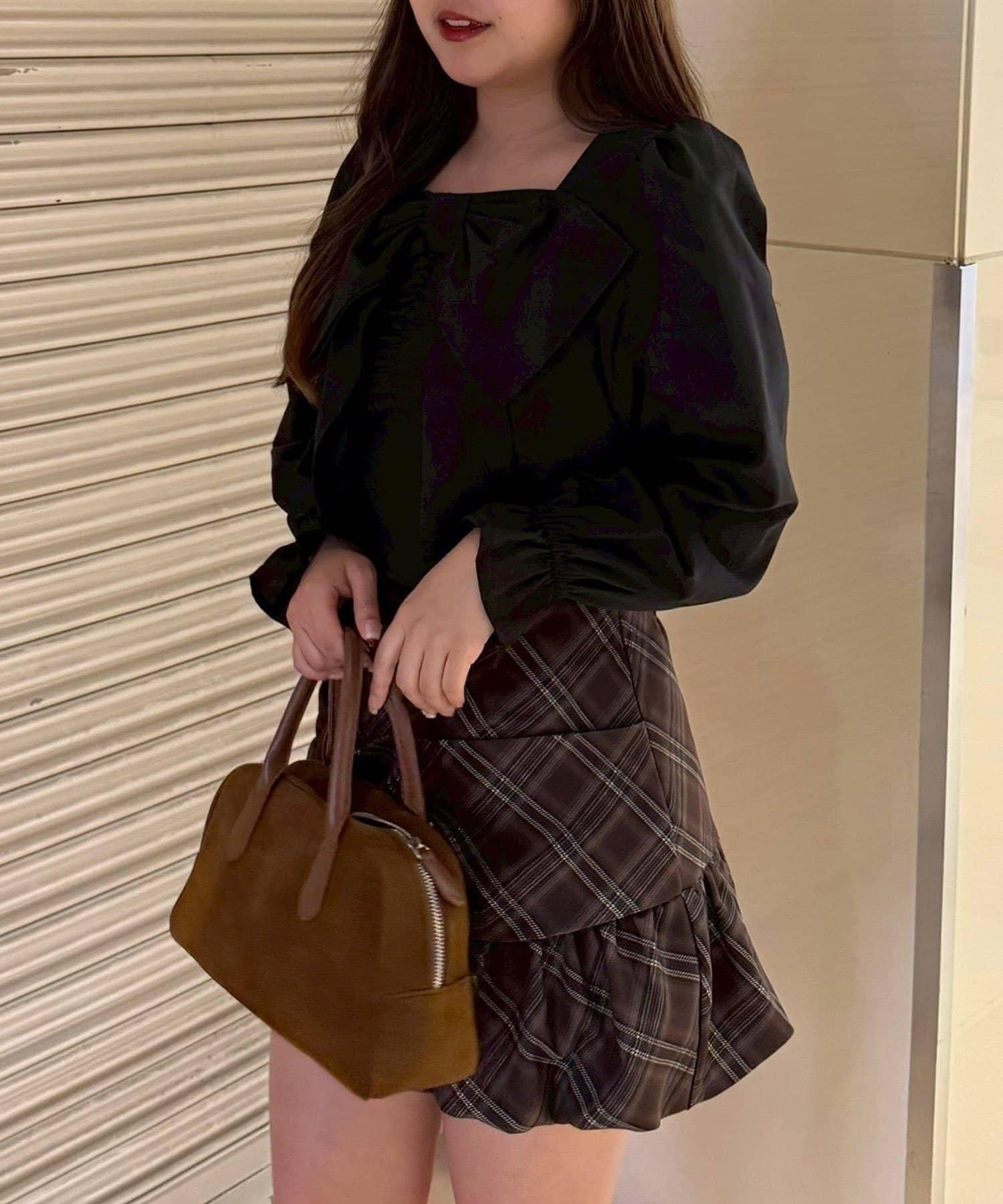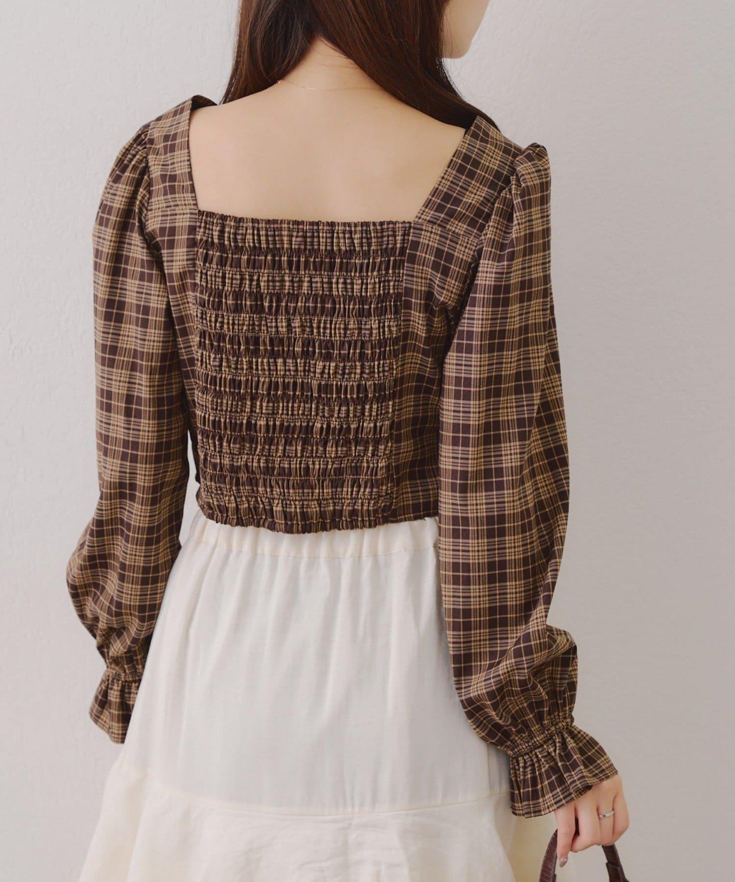 方形領口的上衣,將肩部線條展現得淋漓盡致。