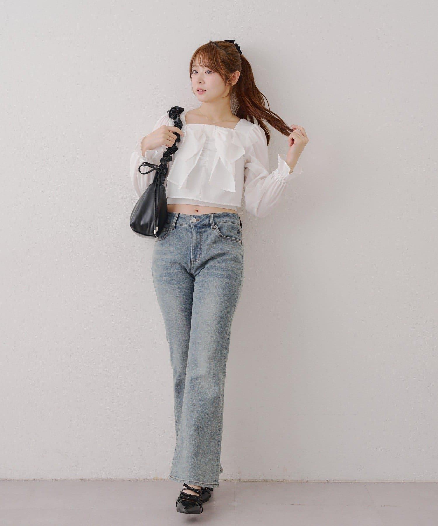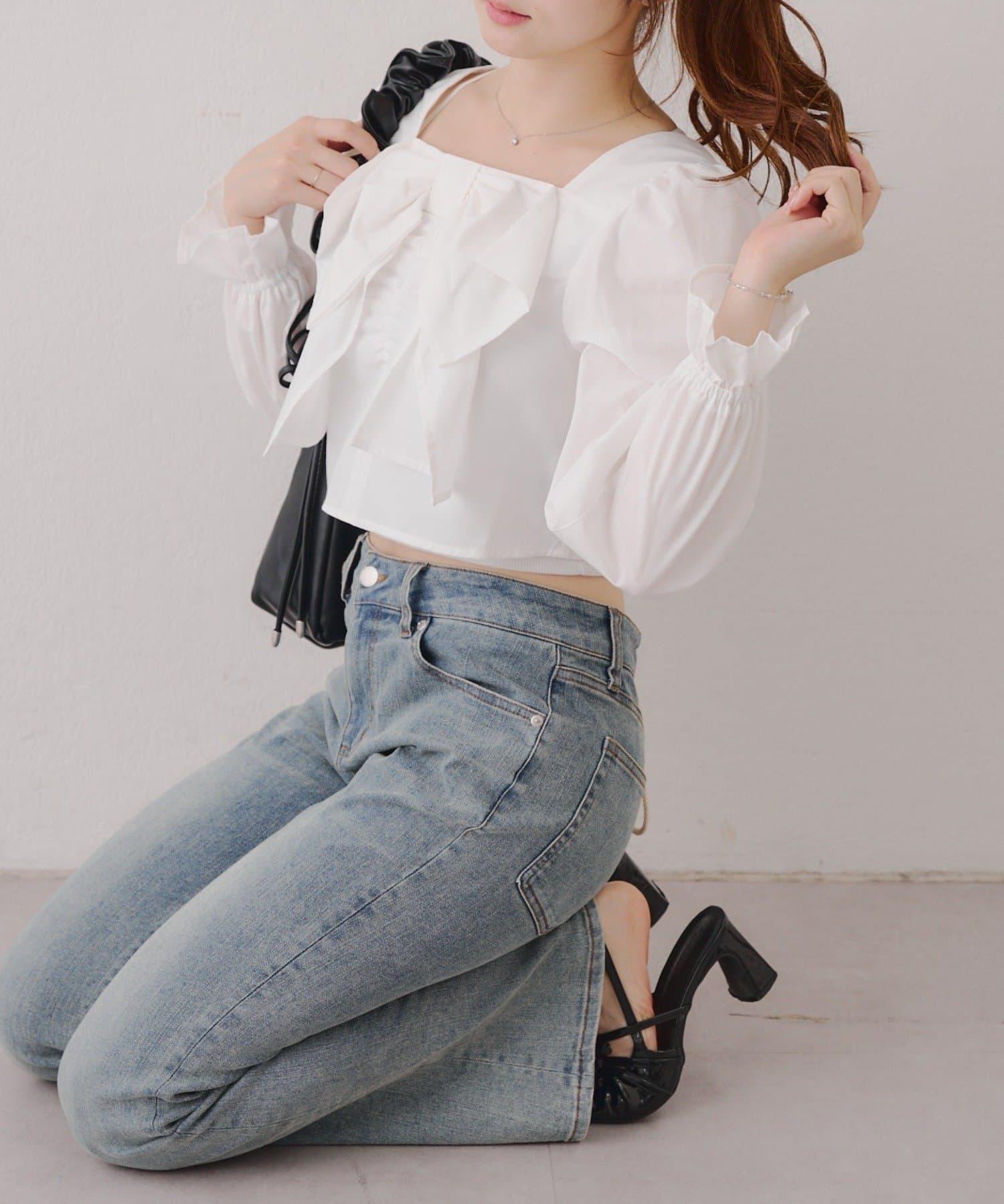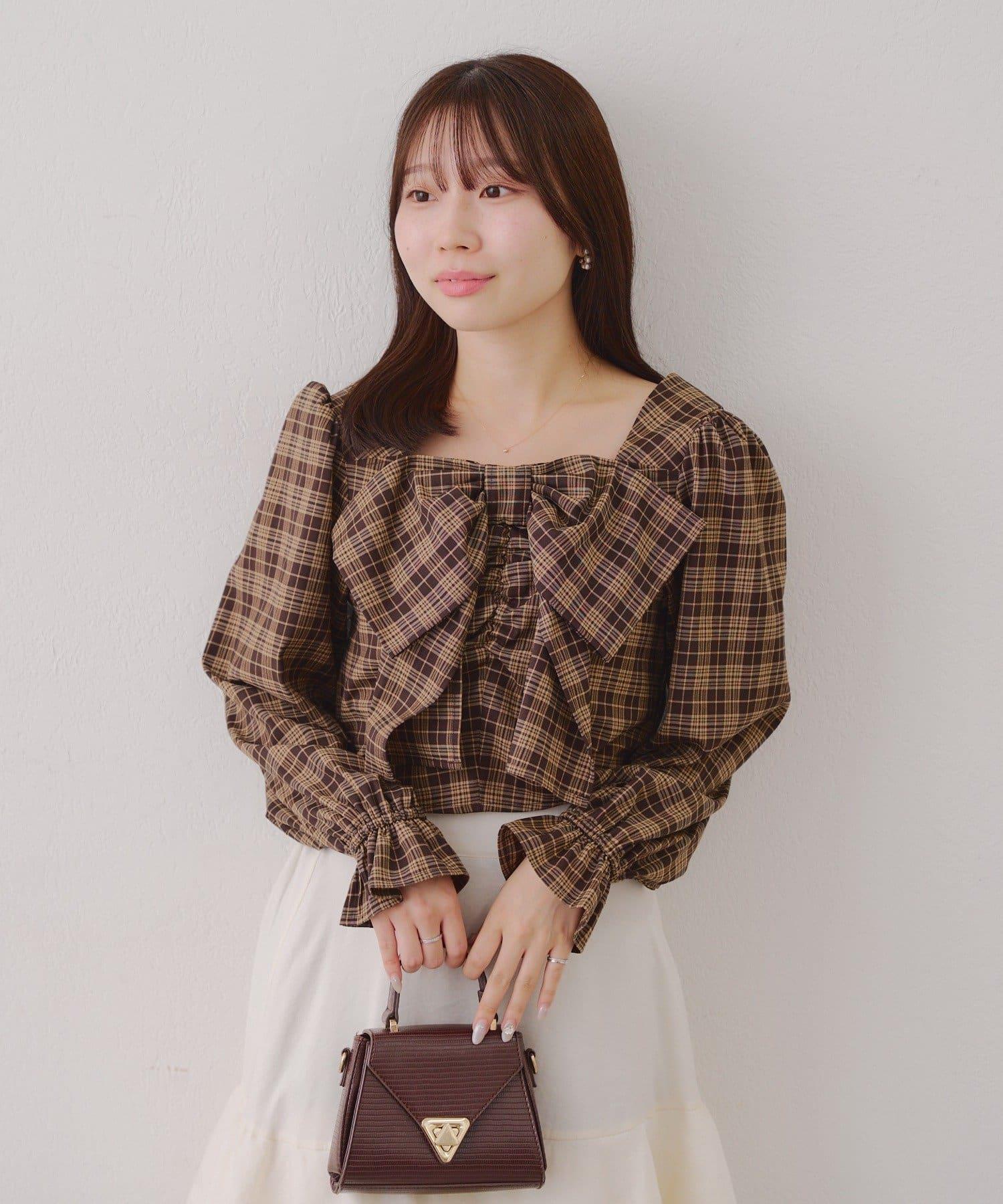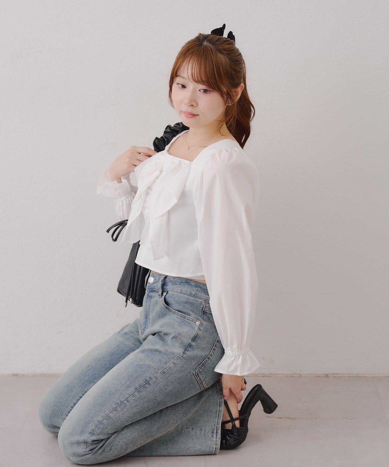 方形領口的上衣,將肩部線條展現得淋漓盡致。