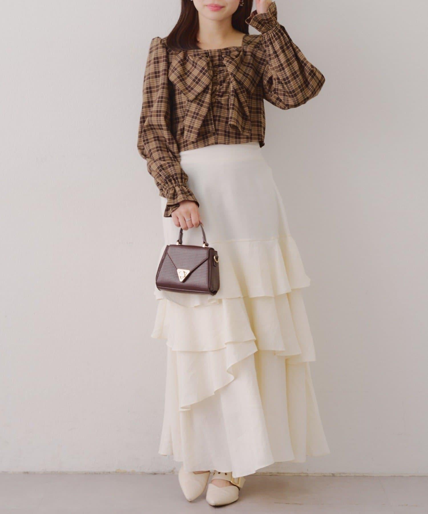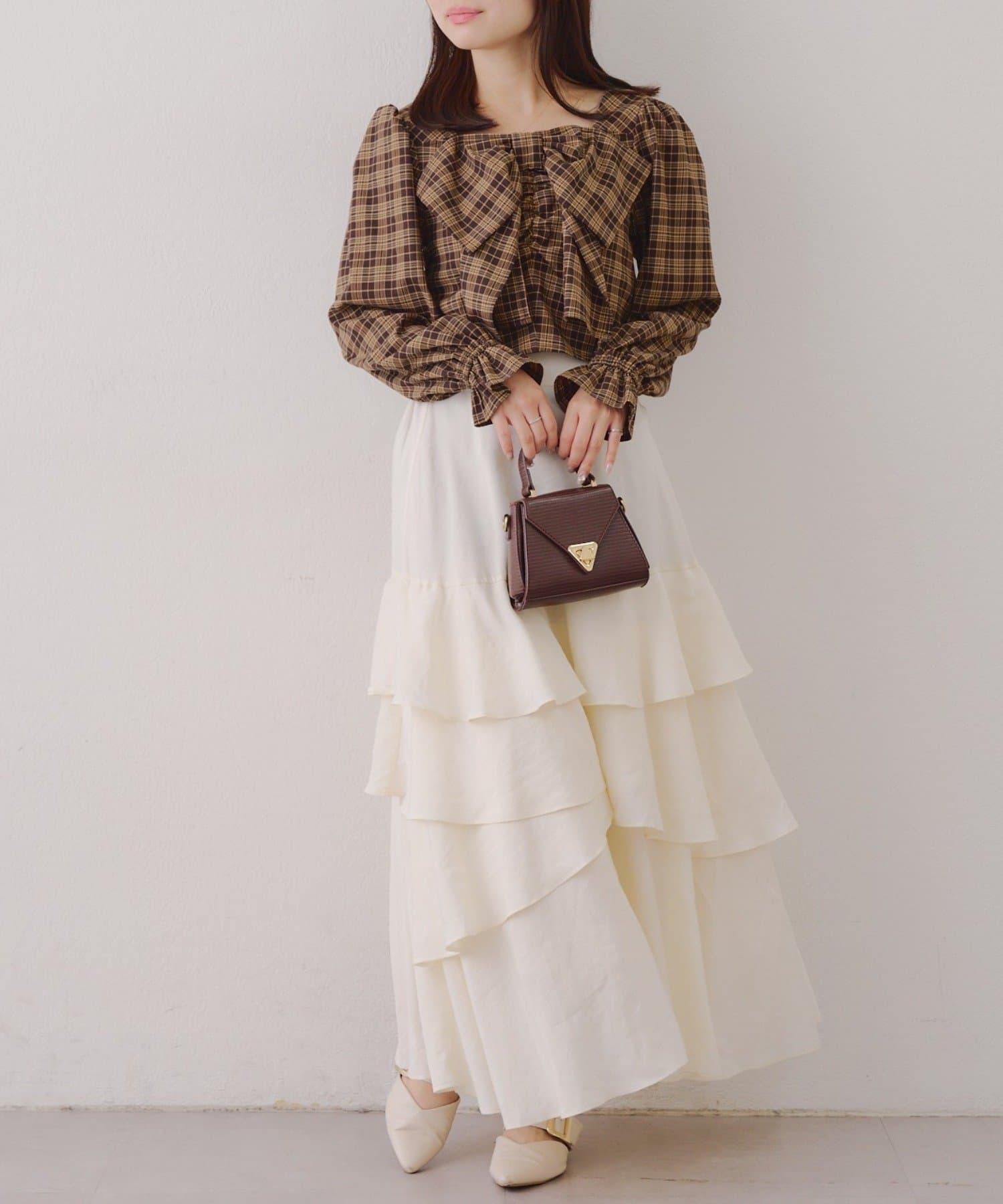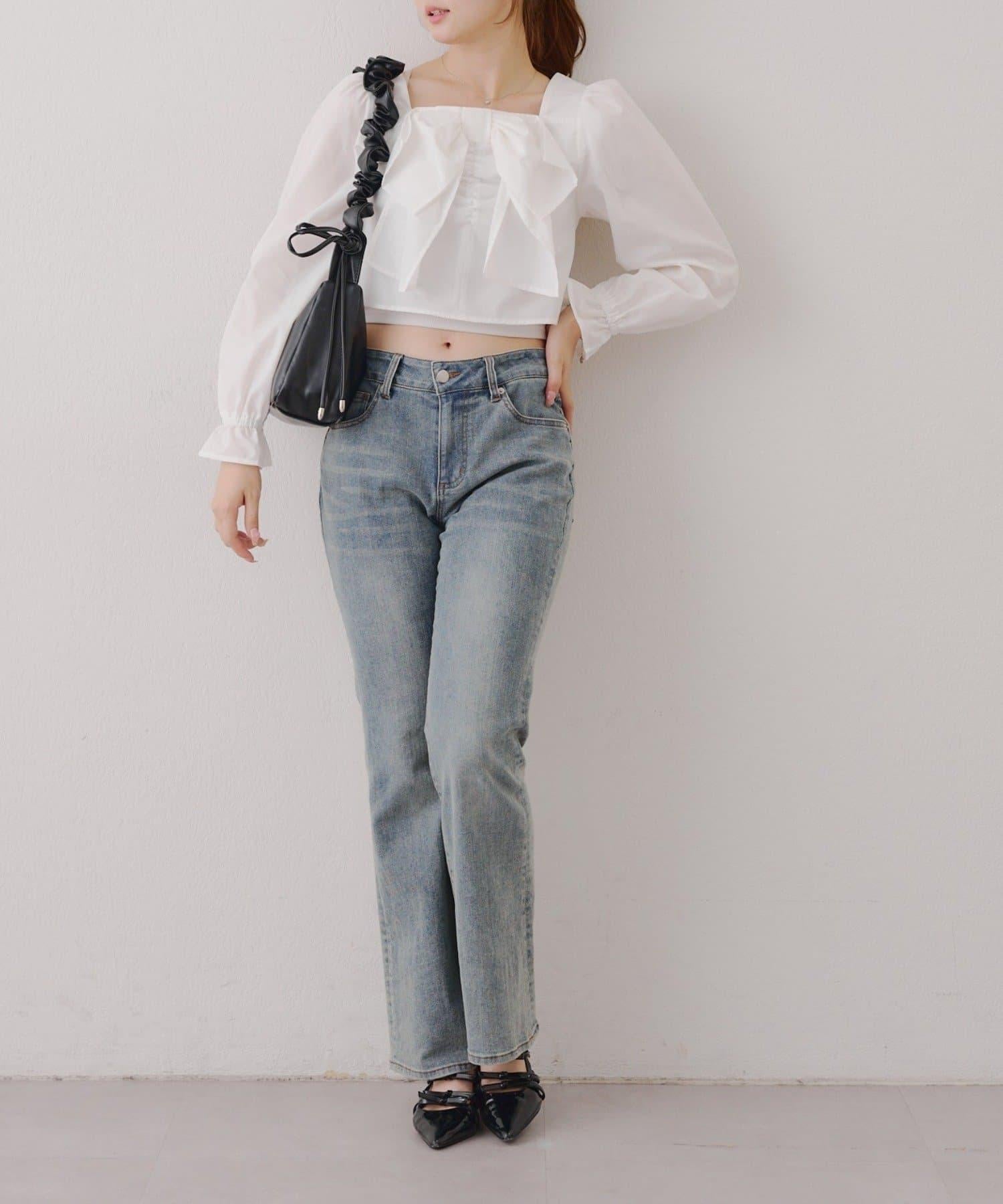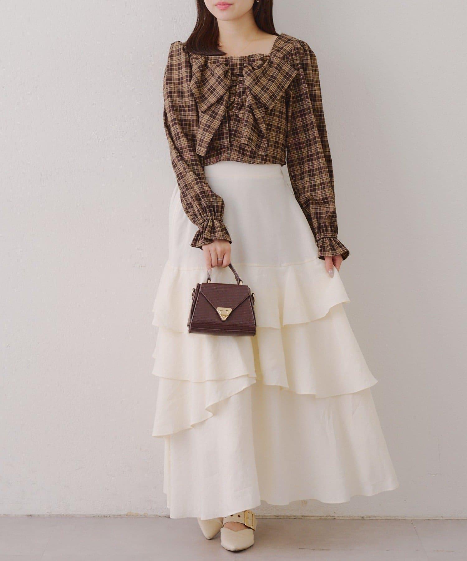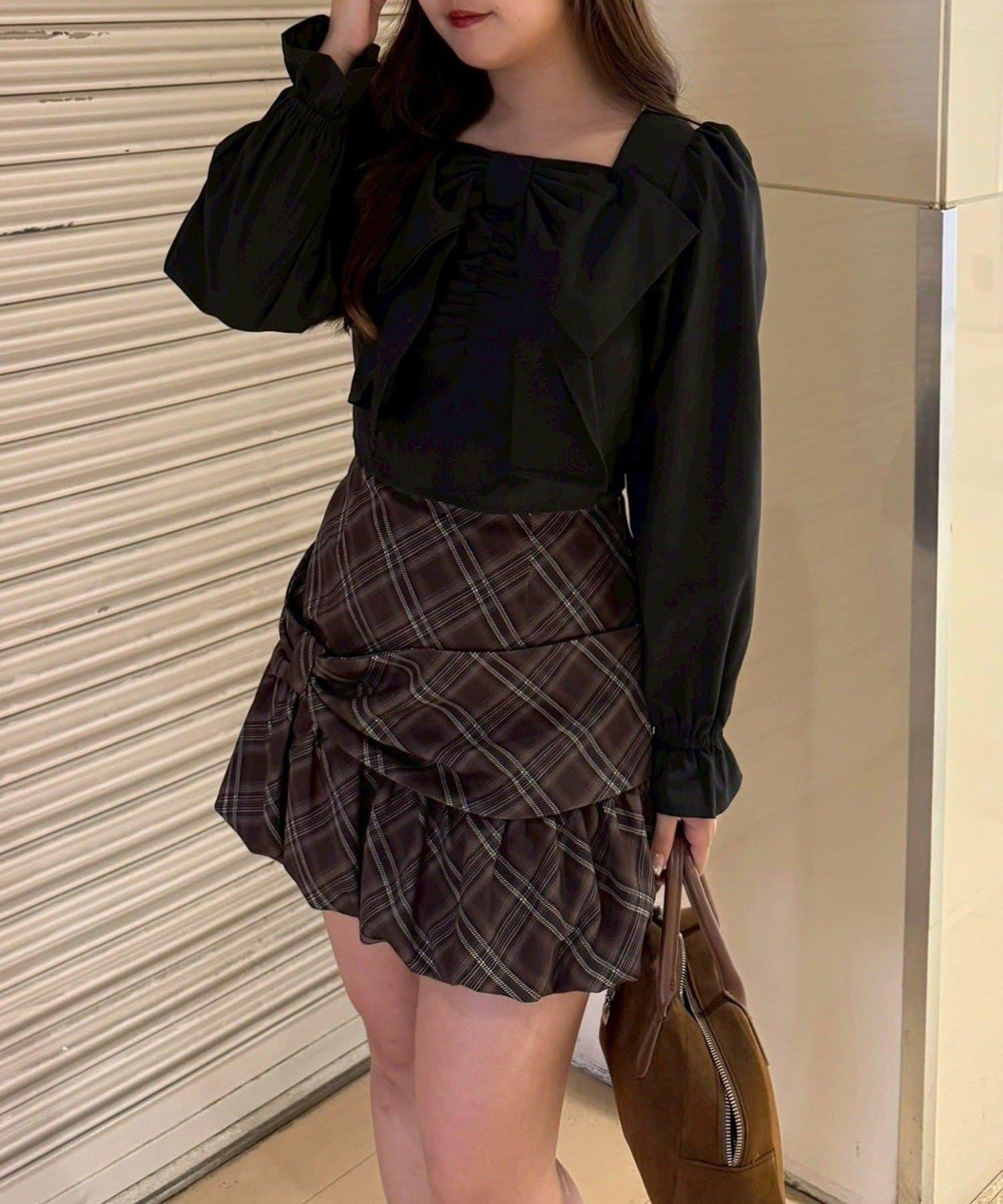 方形領口的上衣,將肩部線條展現得淋漓盡致。