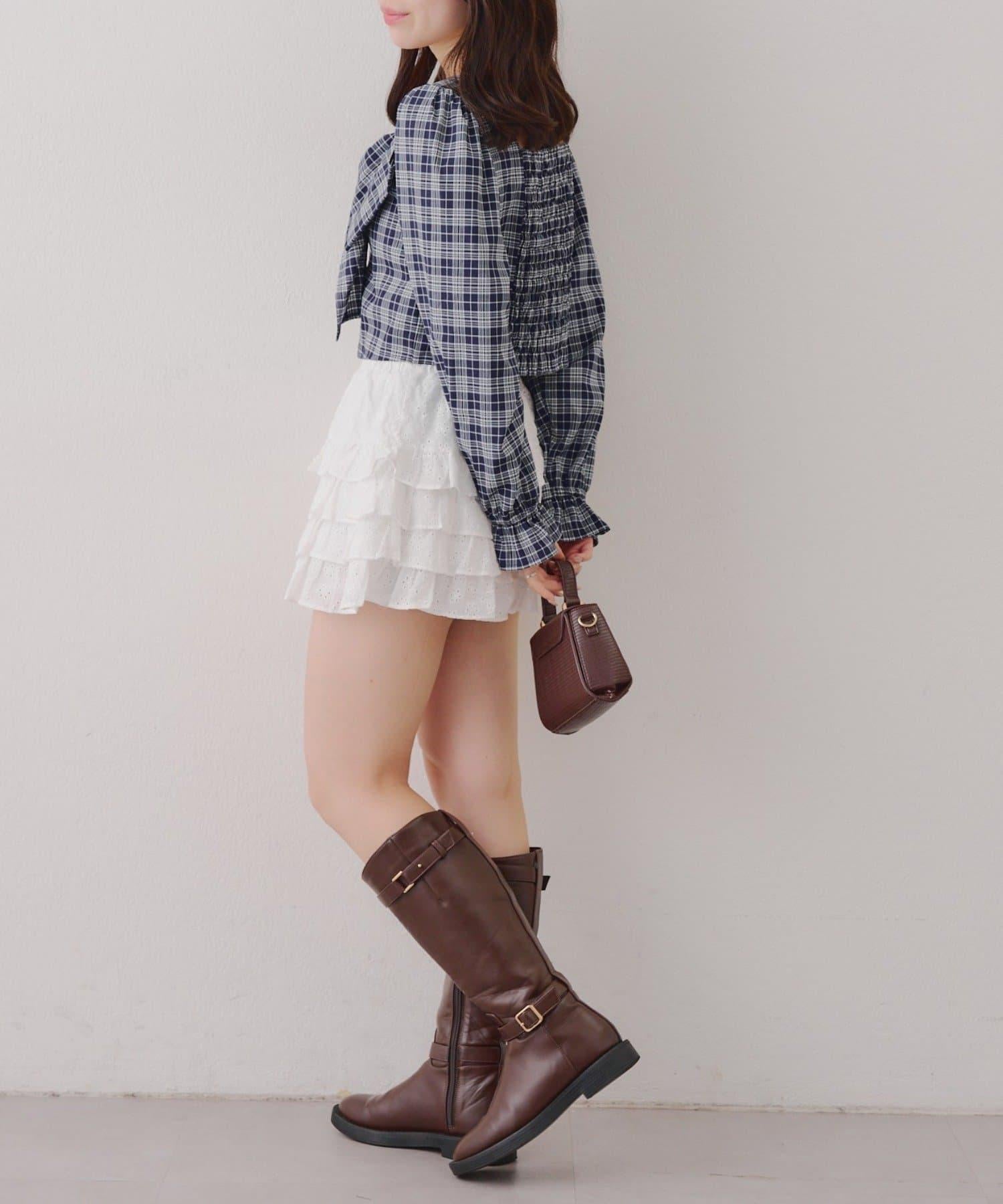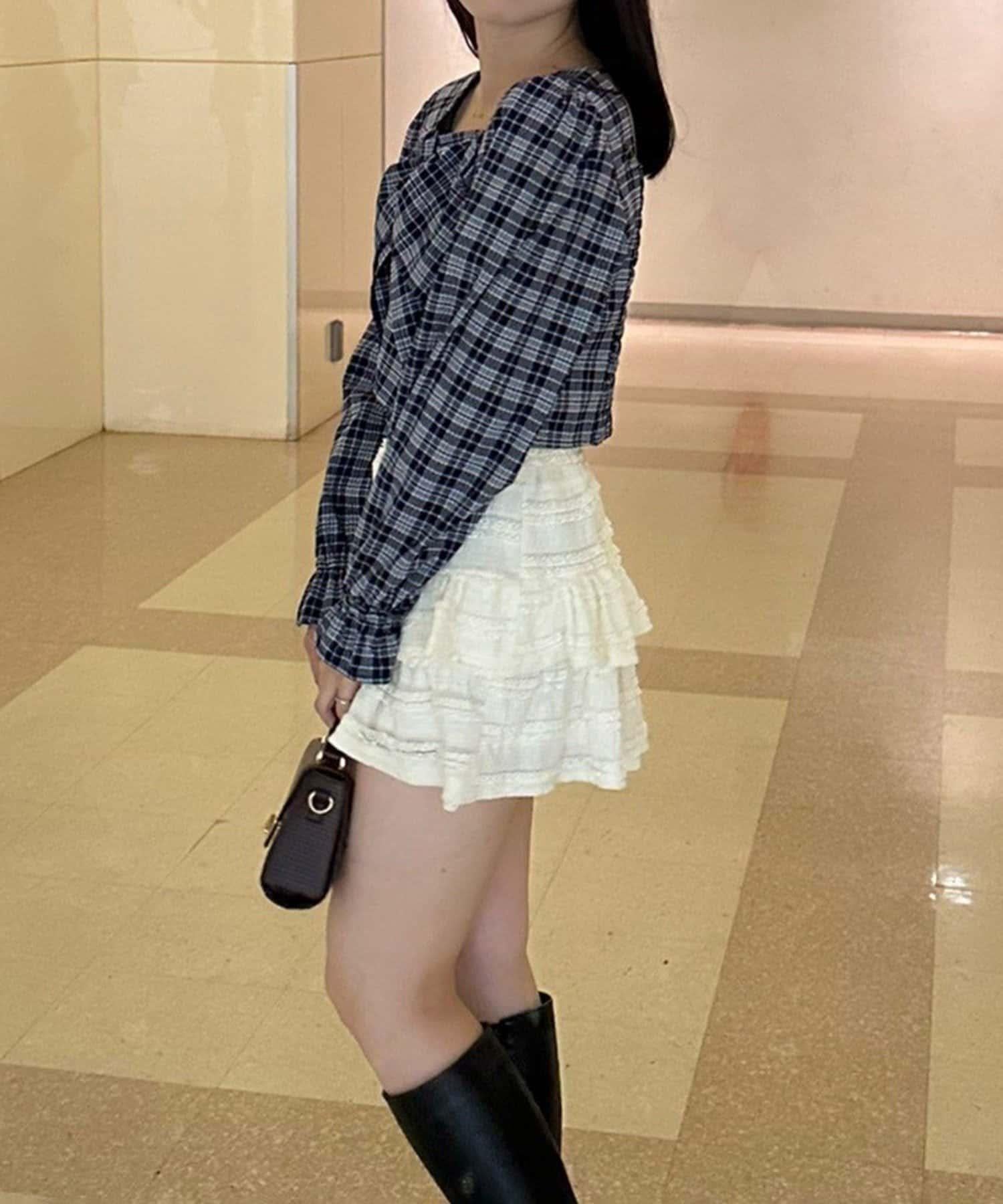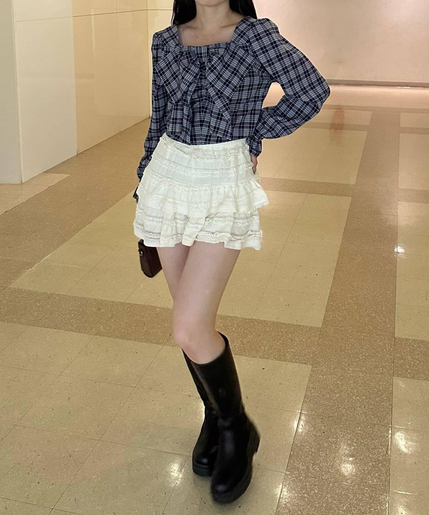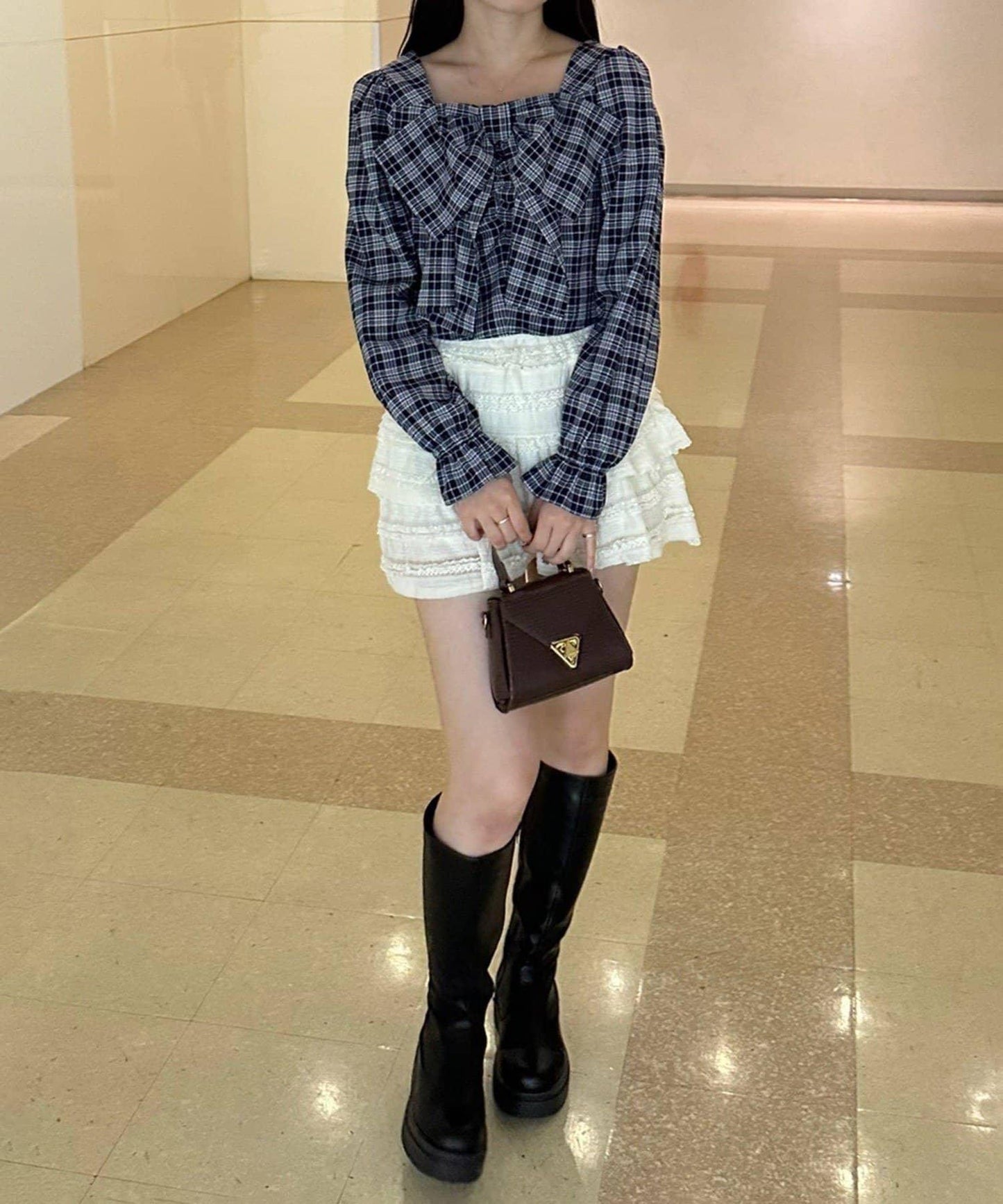 搭配迷你裙、及膝襪和高跟鞋,盡顯少女風情。