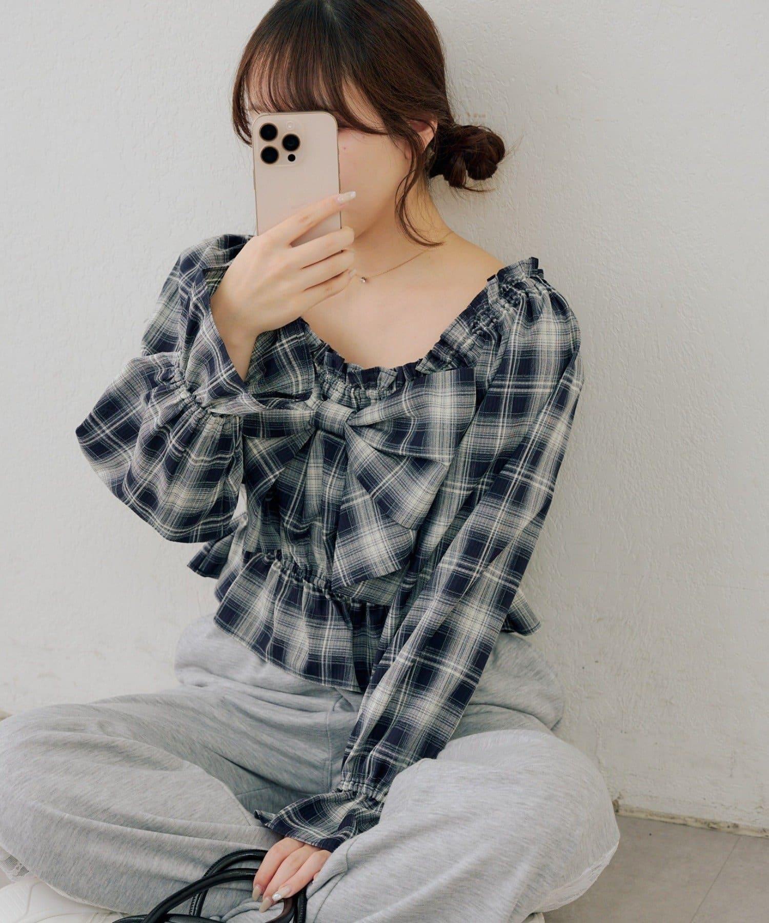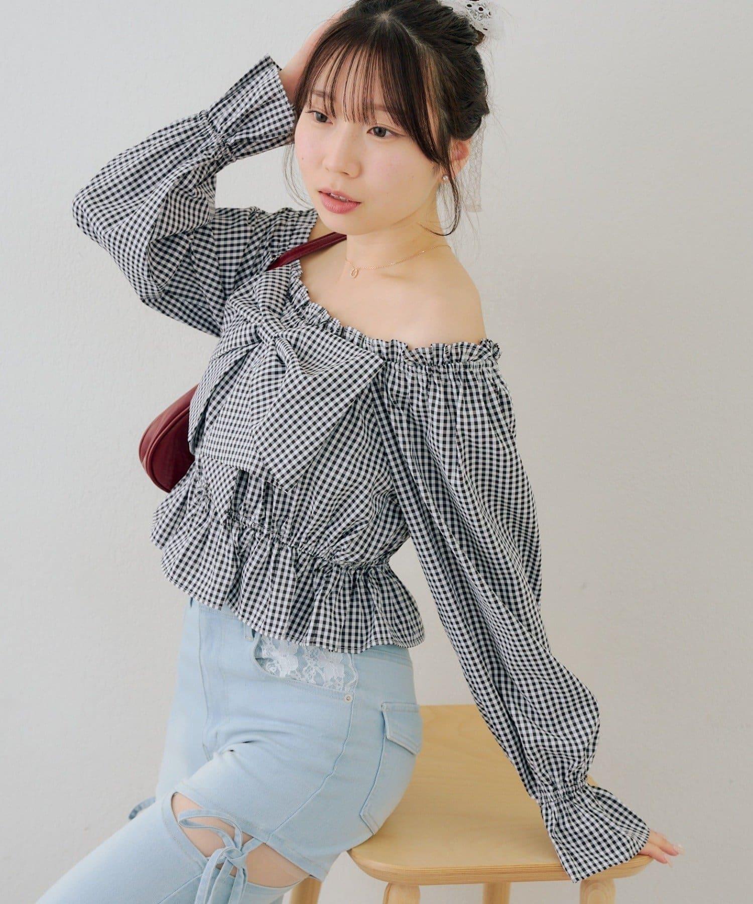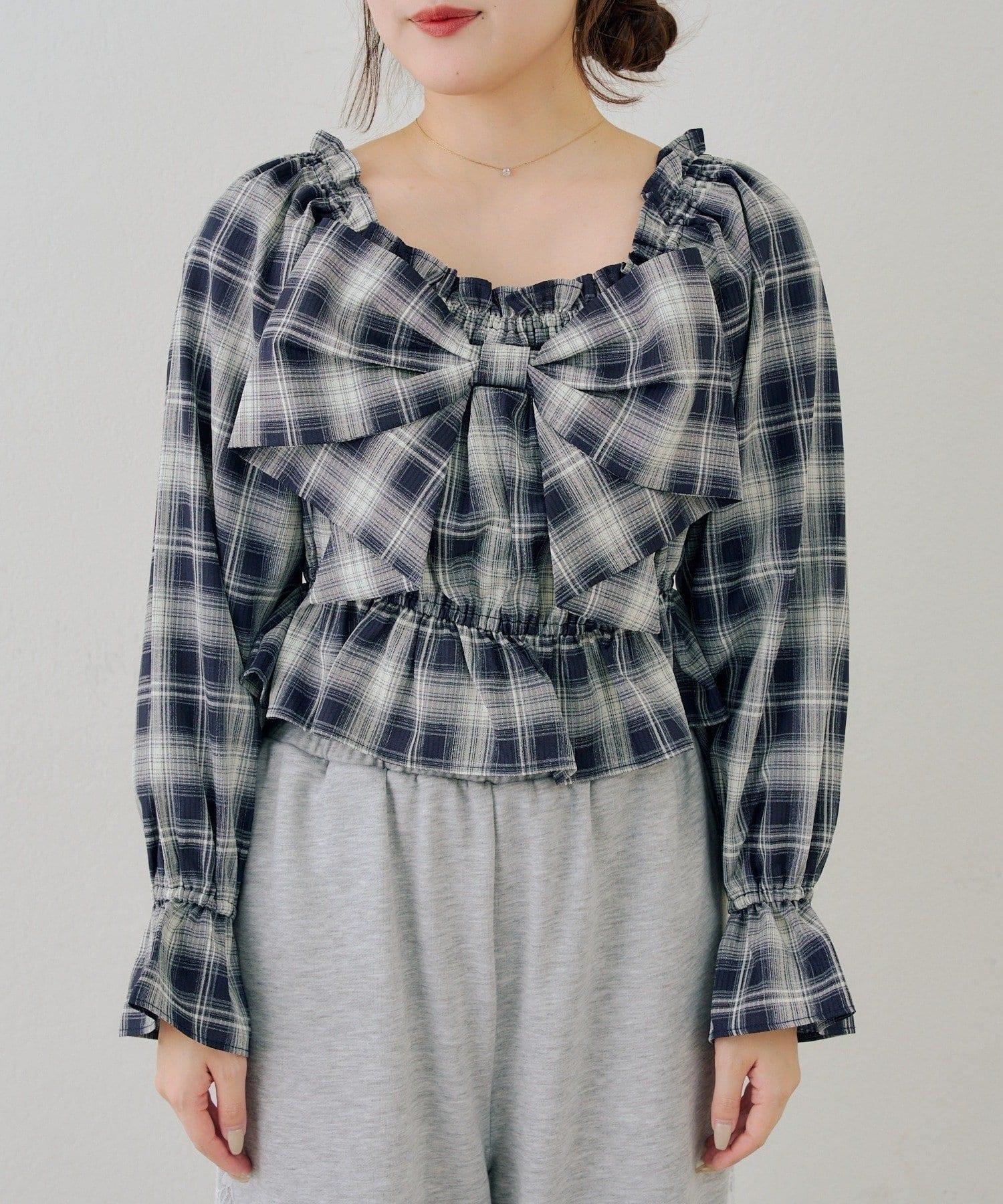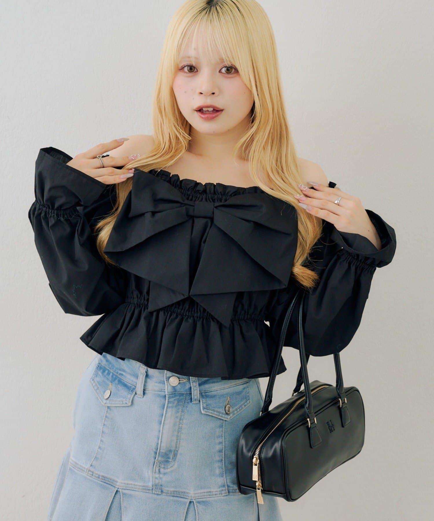短款上衣,胸前飾有可愛的 BIG 綵帶。