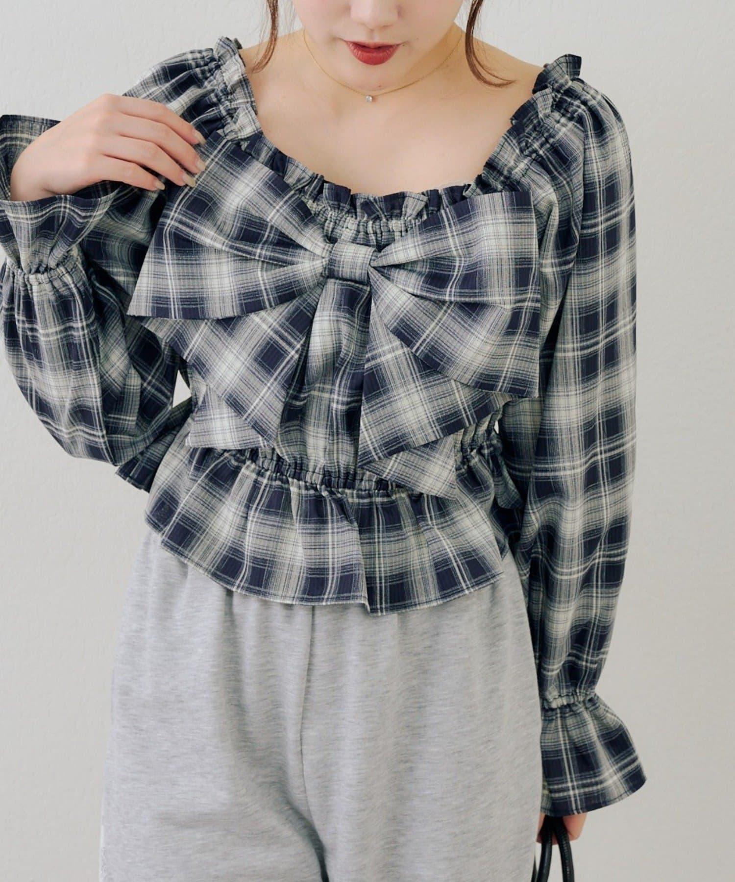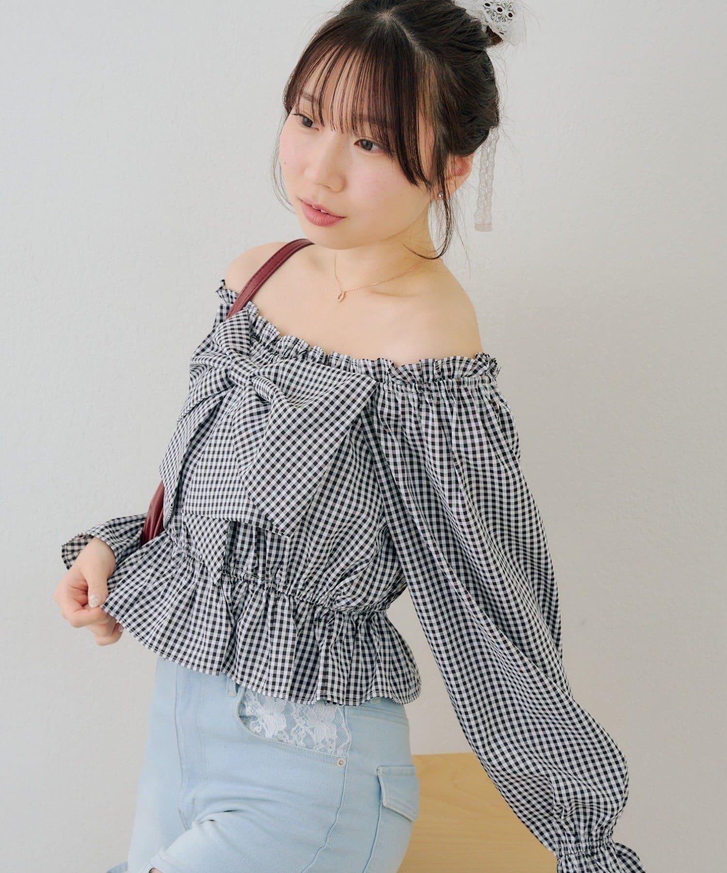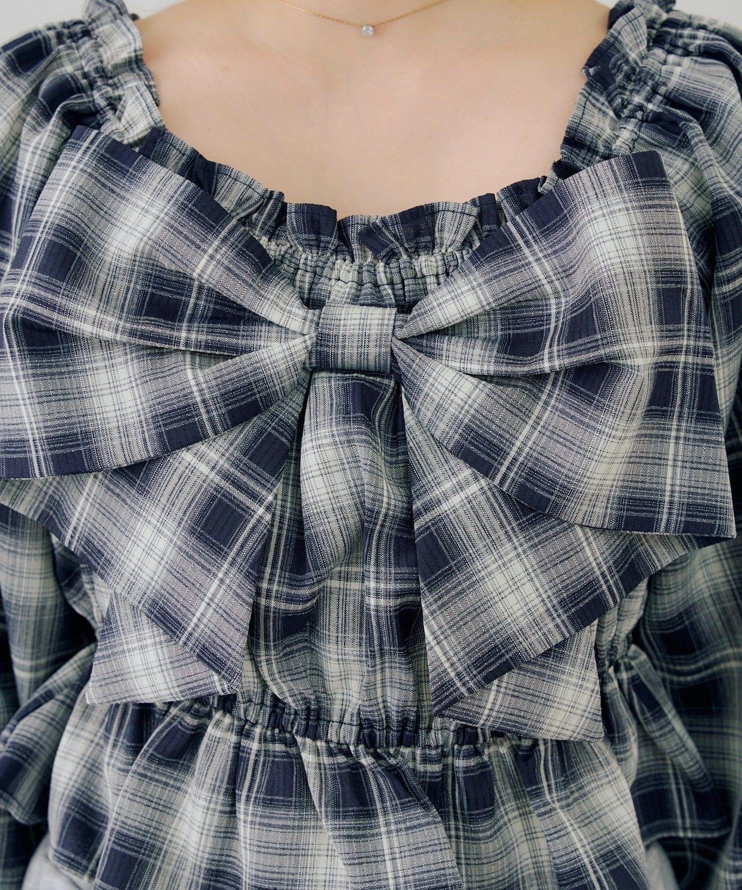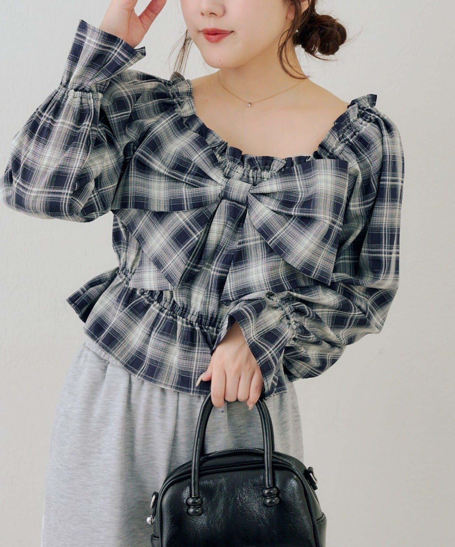 短款上衣,胸前飾有可愛的 BIG 綵帶。