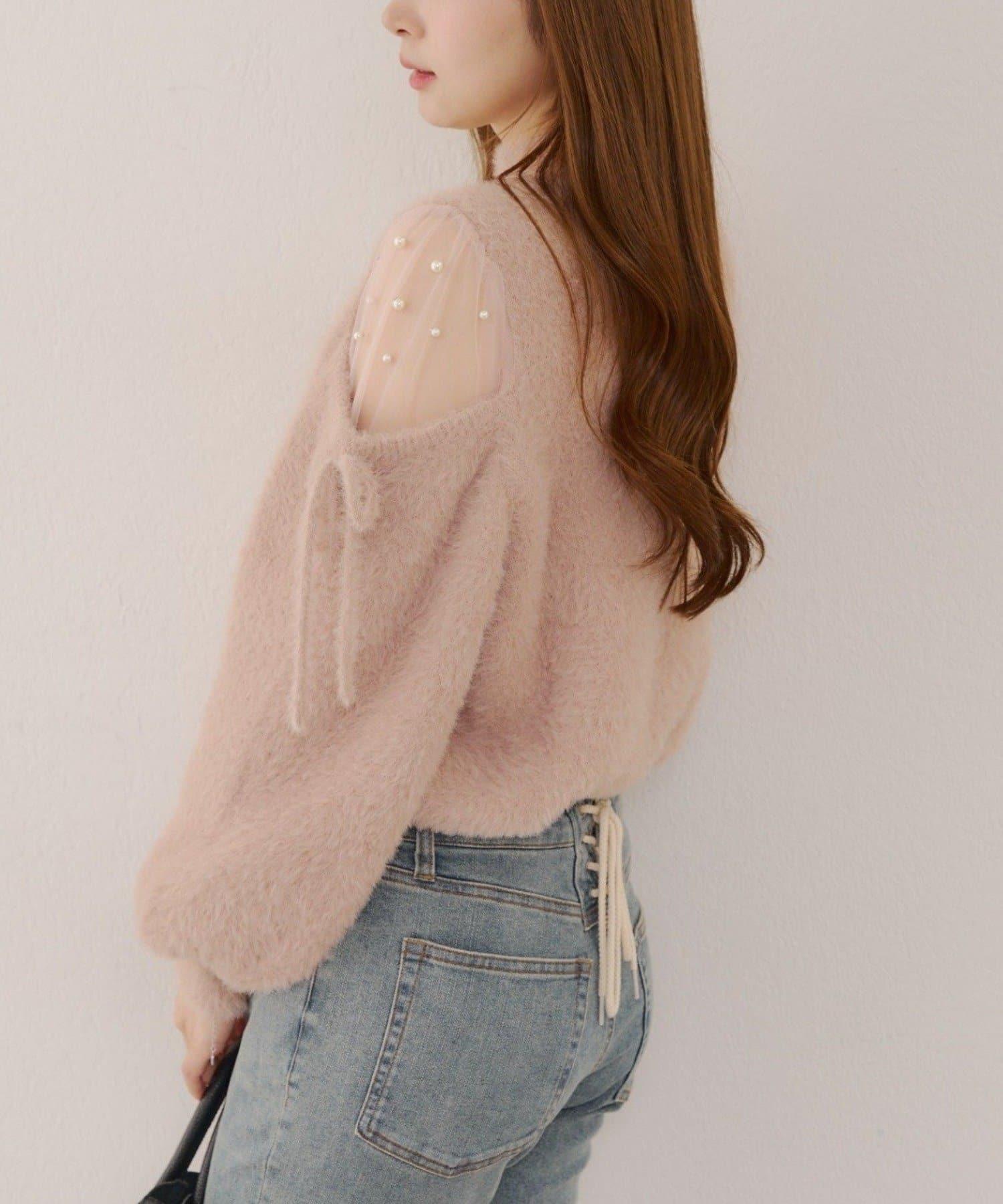 這是一款具有蓬鬆柔軟觸感的針織衫,絲帶細節讓它看起來更加少女。