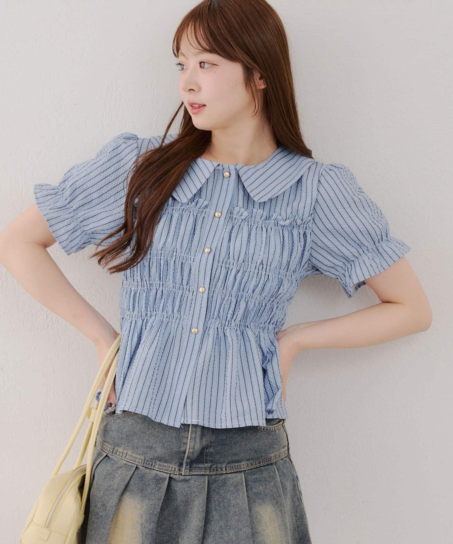 【RMAF】【韓國風搭配實現!】新色!荷葉邊領配飾襯衫