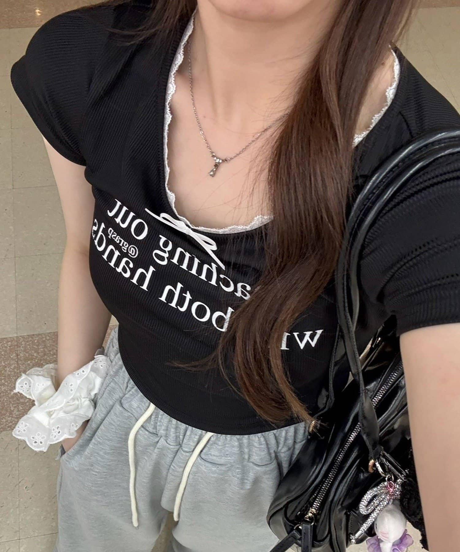 上衣長度較短,可以毫不猶豫地搭配下裝。