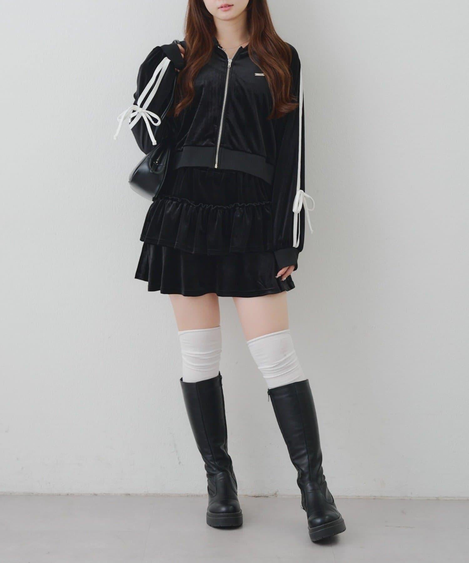 【RMAF】【套裝】袖部蝴蝶結天鵝絨連帽衛衣 & 百褶迷你裙