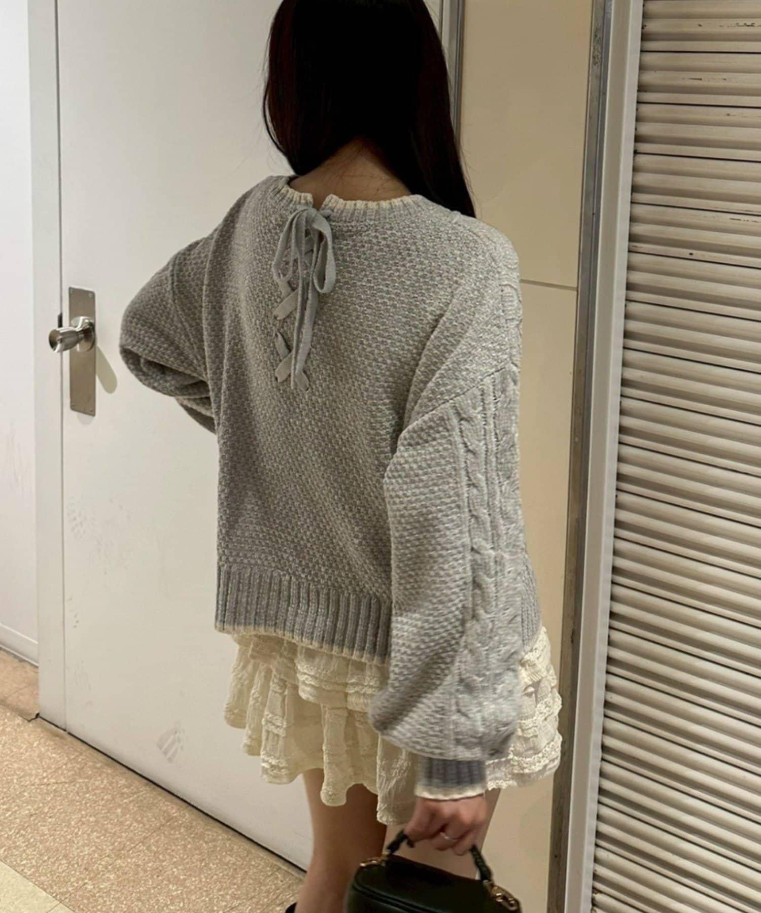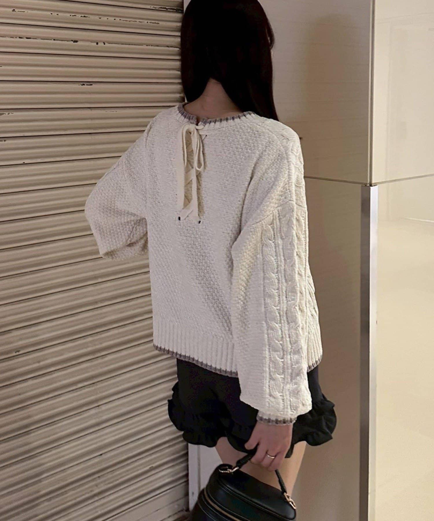 【RMAF】背部蝴蝶結天鵝絨毛線編織針織衫