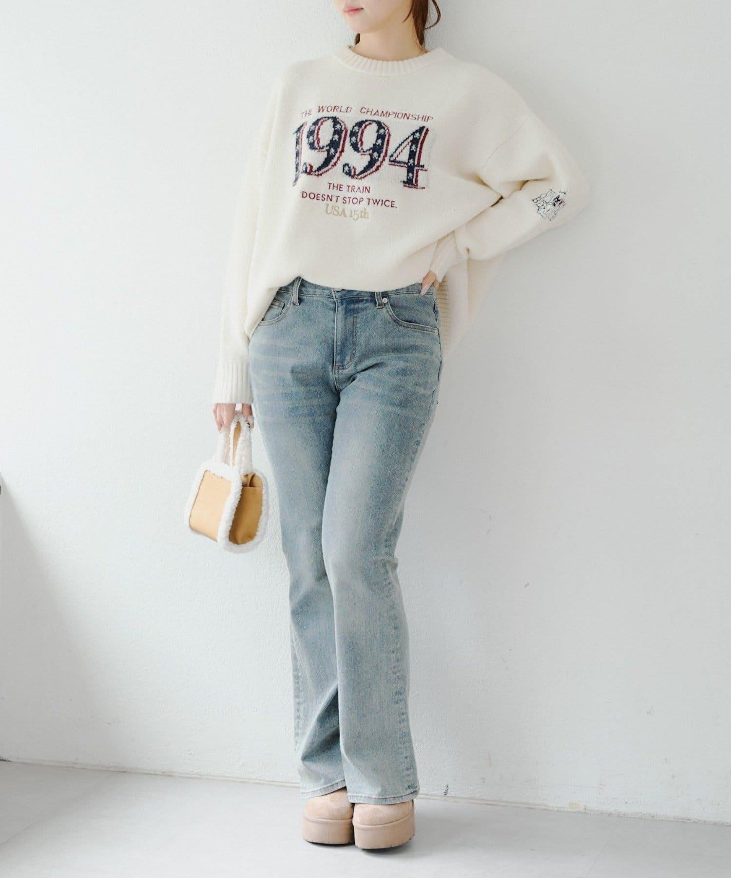 搭配寬鬆牛仔褲和蟒蛇涼鞋,打造時尚休閒造型。