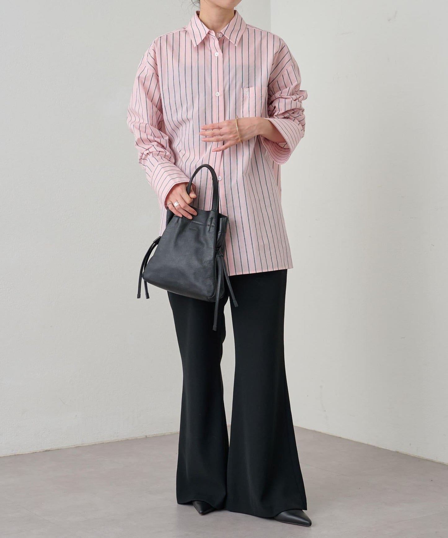 Omekashi 長期暢銷的 ROROL 皮革迷你抽繩手提包。
