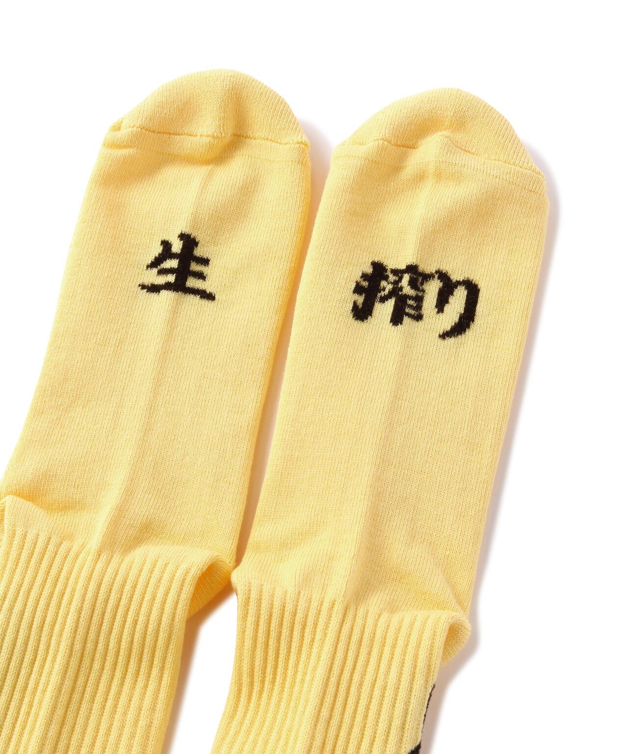 ROSTER SOX LEMON SOCKS 人氣酒類系列男女襪子。主要特徵是左右兩側的 "Lemon Sour "字樣和腳趾上的 "Nama-Shibori "字樣!這一季,它們採用了像毛巾一樣的布克萊面料。ROSTER SOX】 ROSTER(羅斯特)在棒球術語中意為👍隊註冊。該品牌名稱蘊含著在襪子行業中專門生產日本製造的運動襪和使用功能性材料的願望,並以其設計和質量在👍軍團中發揮積極作用。設計師將自己的成長環境和感受融入設計中,因為一隻襪子就能改變他們的心情和協調性。機器