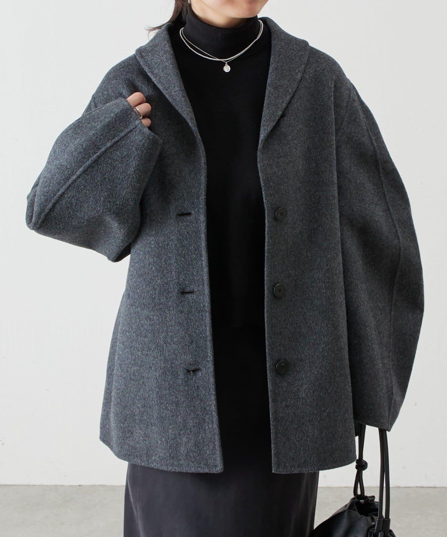披肩領半身大衣,來自韓國品牌 RRACE。