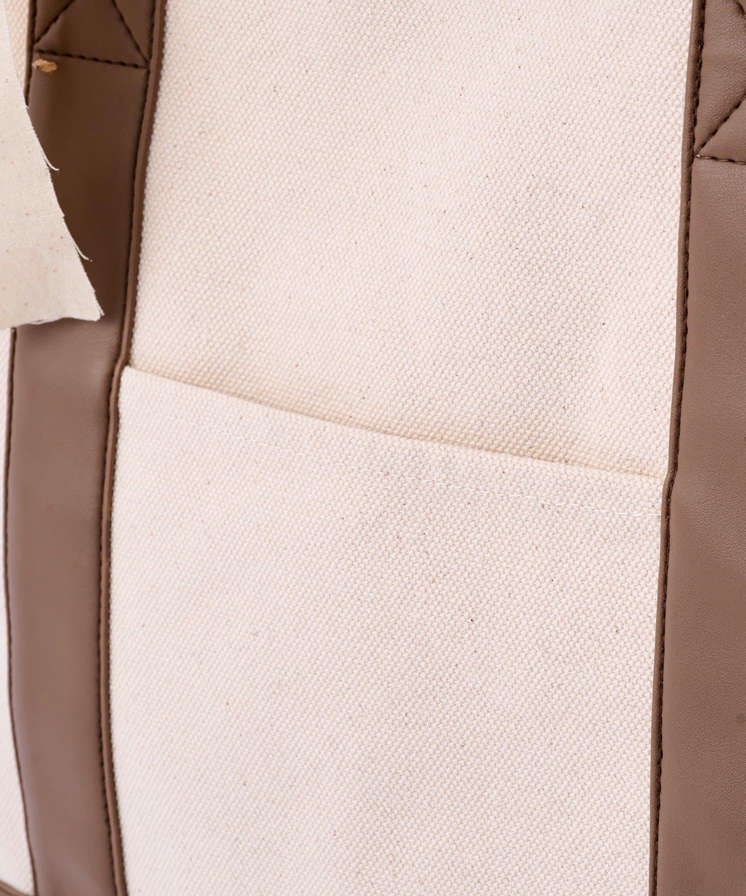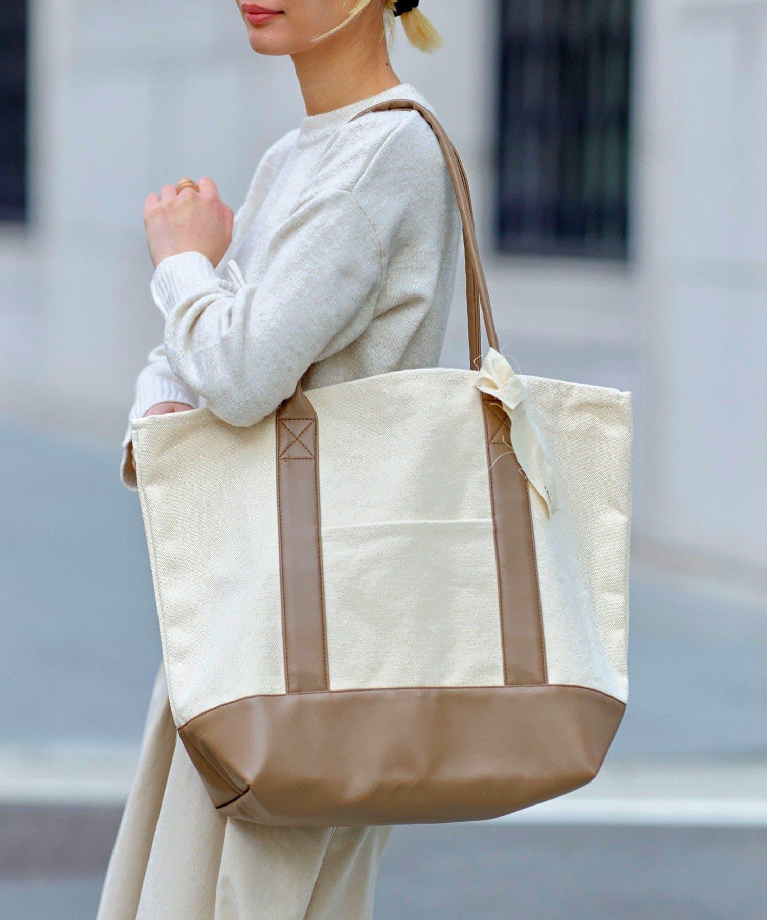 自然時尚的雙向包,由結實的 22 盎司帆布和棕色人造革組合而成。