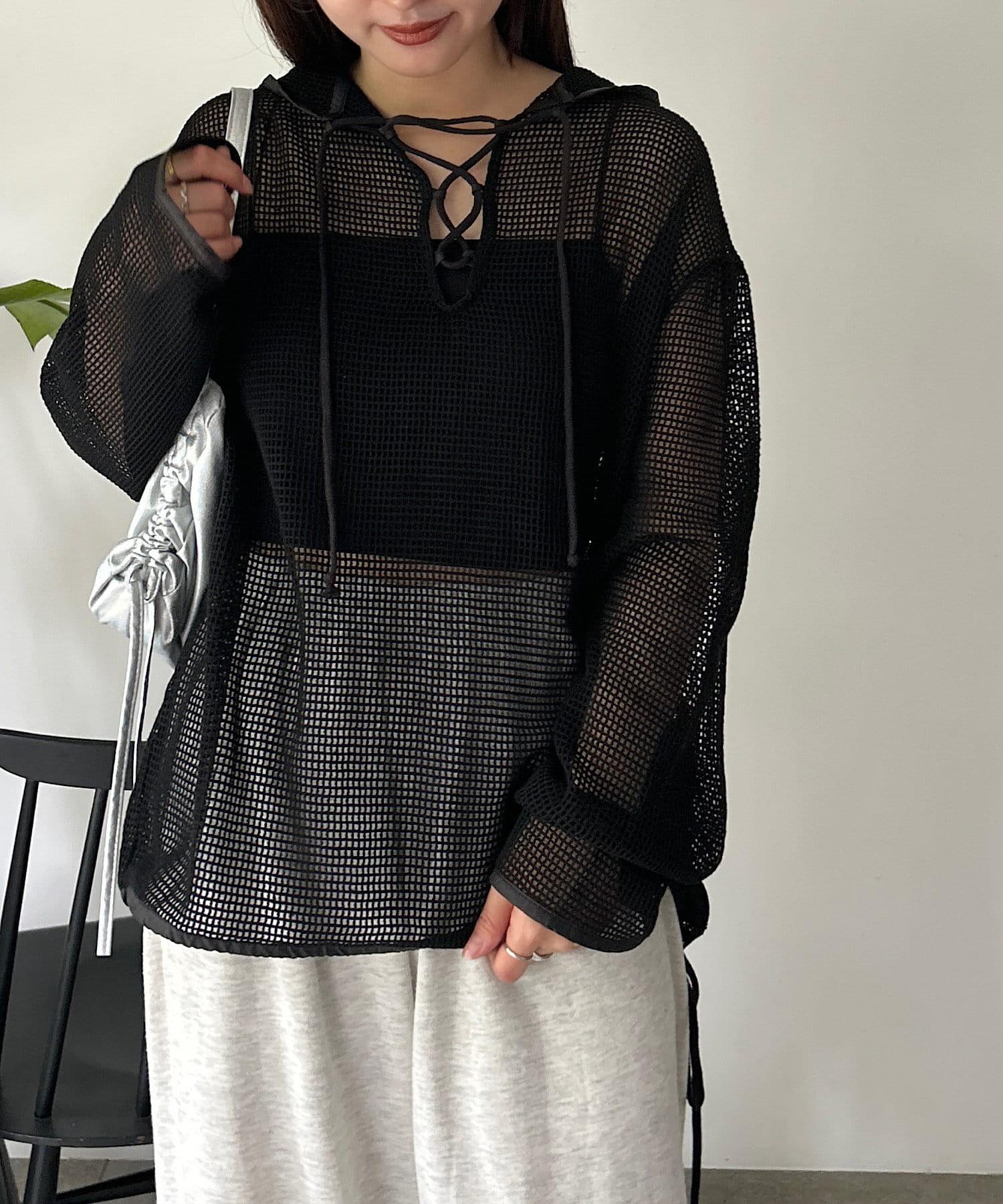 【S.L尺碼展開】網眼繫帶帽衛衣