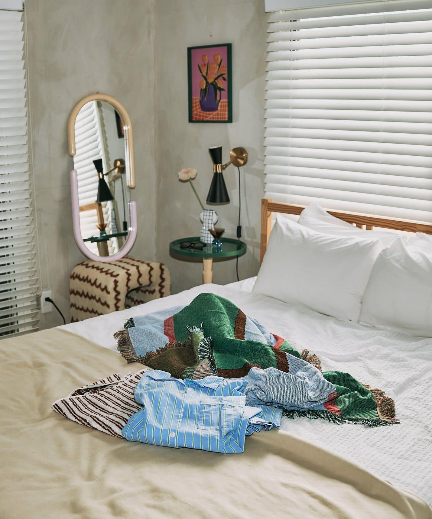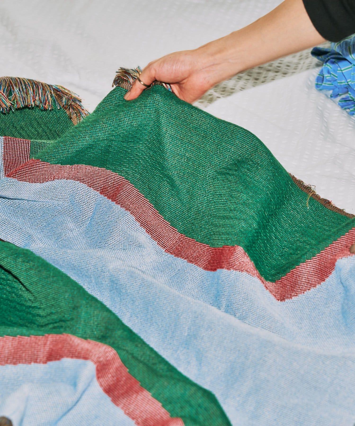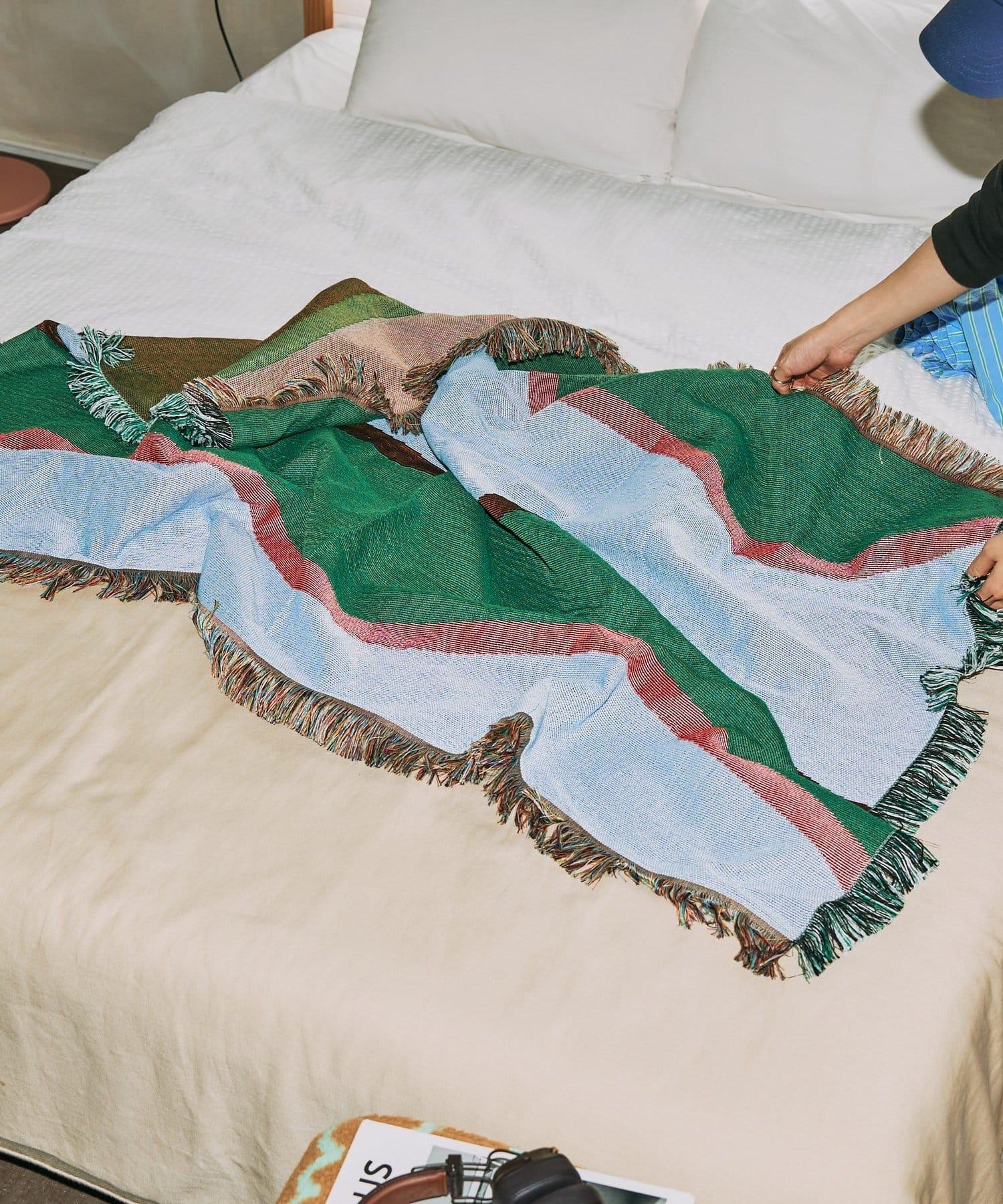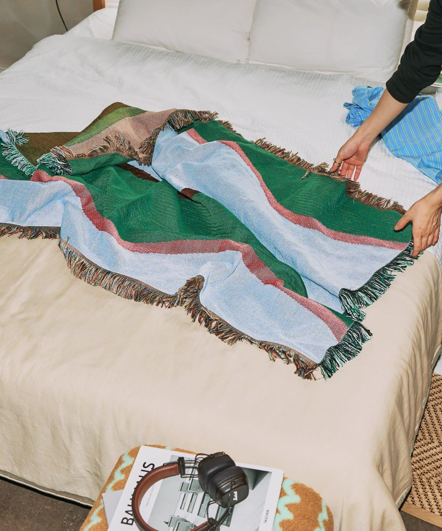 同樣,它可以正反兩面使用,可以鋪在沙發和床上營造不同的氛圍,也可以用作地毯。