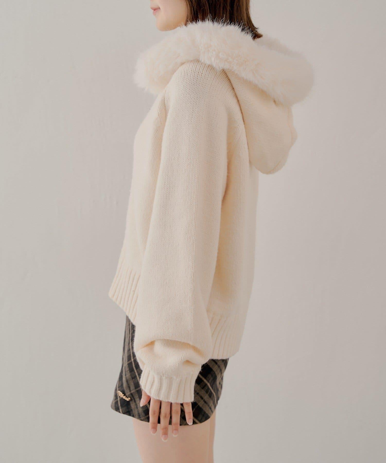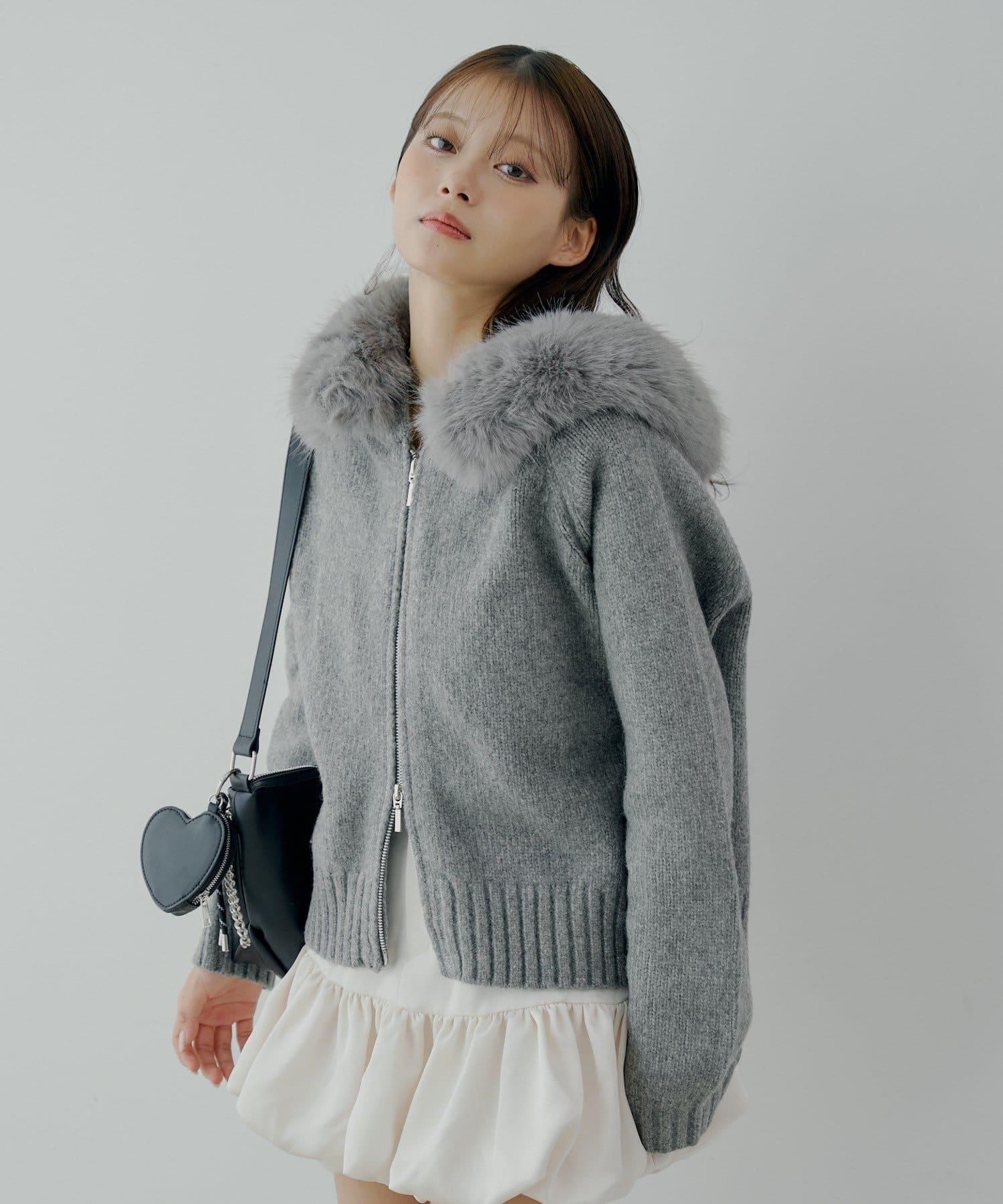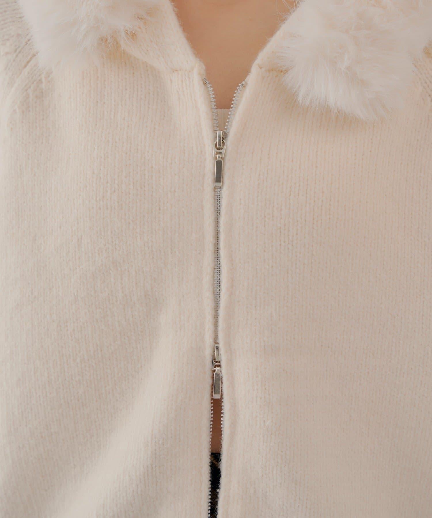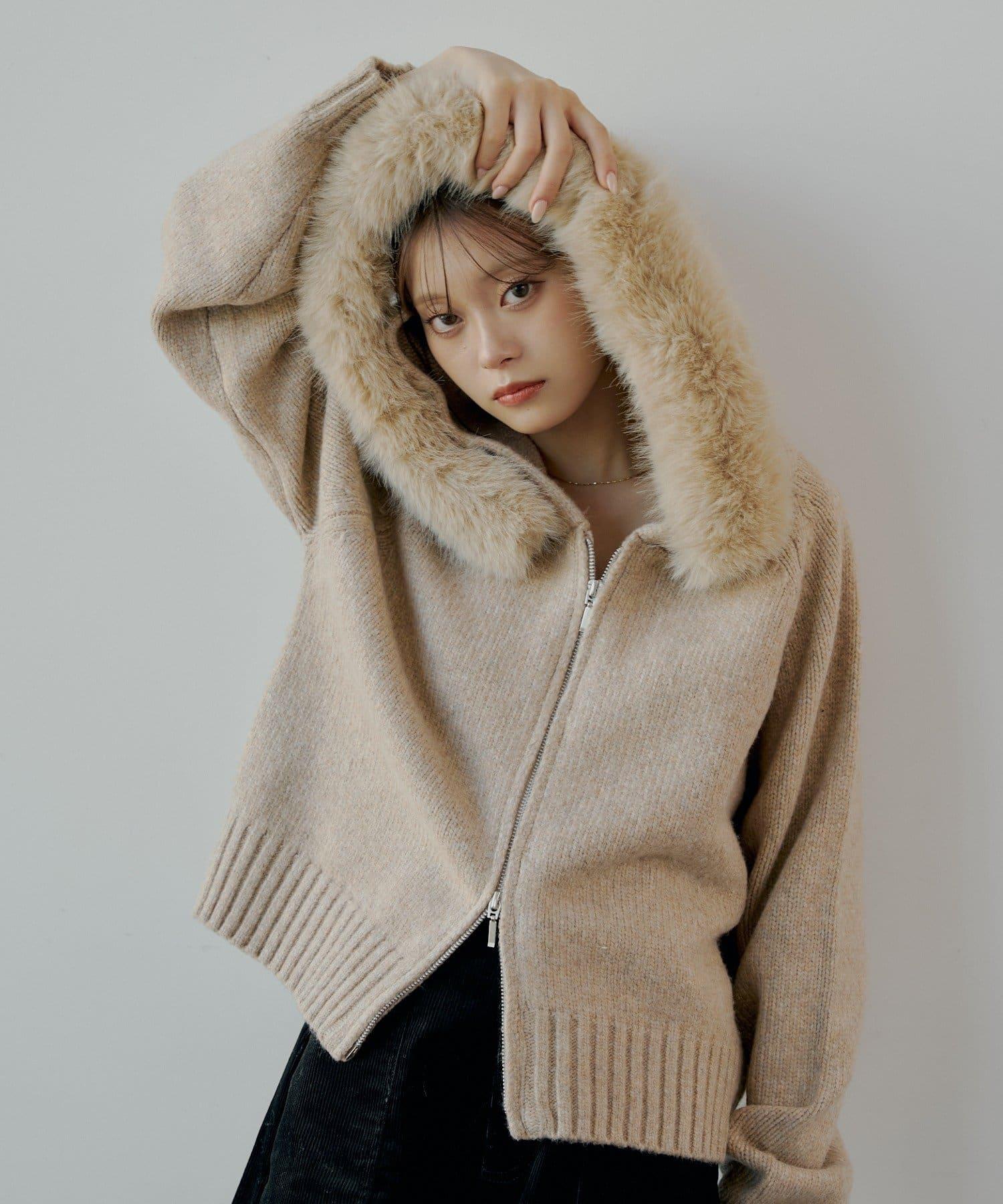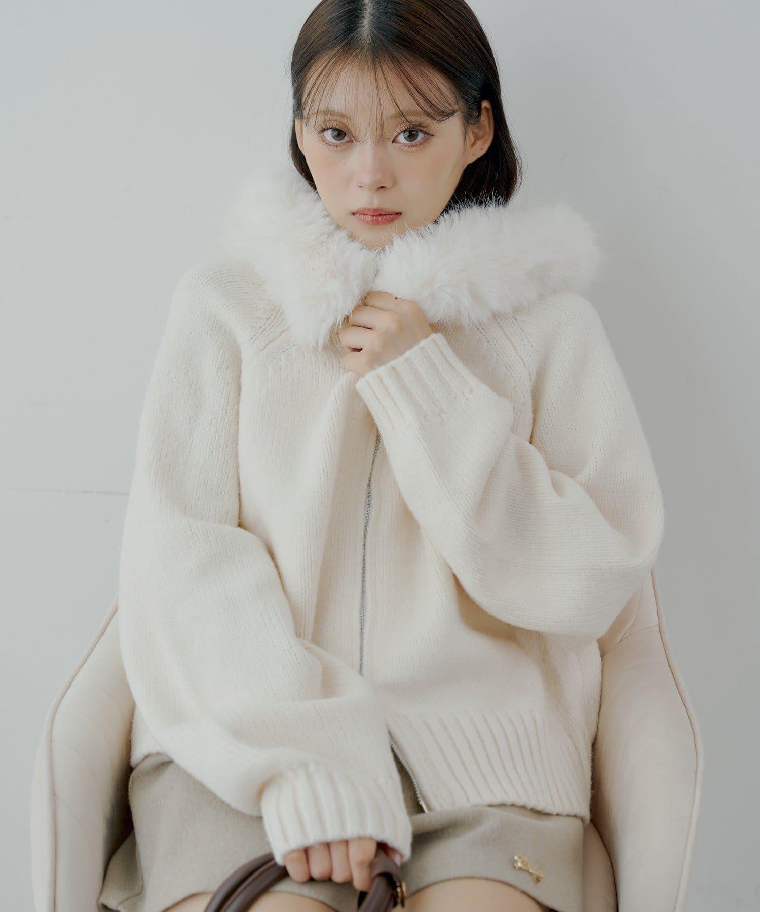 寬鬆 W 型拉鍊針織開衫,配以蓬鬆毛皮,雙向設計。