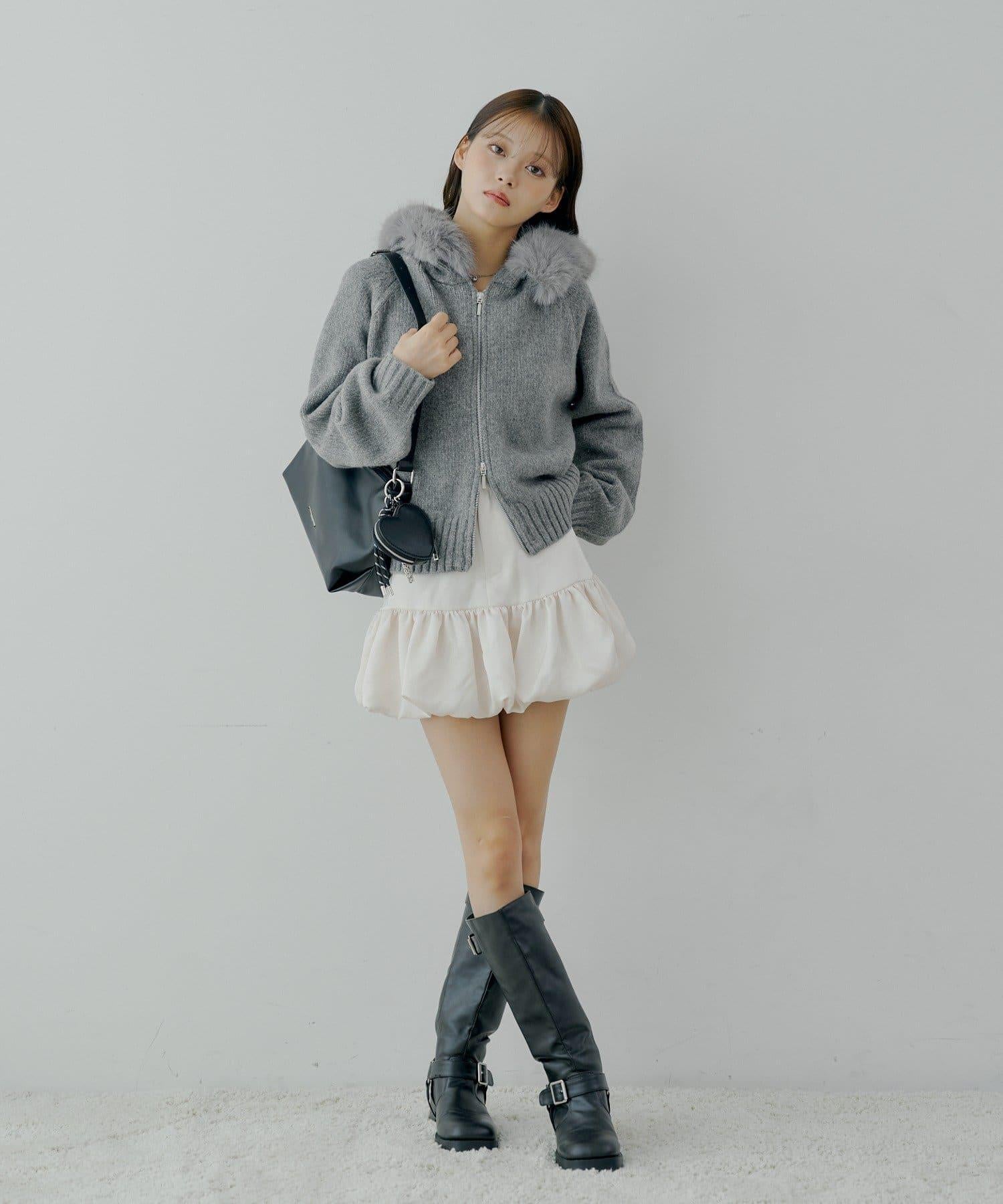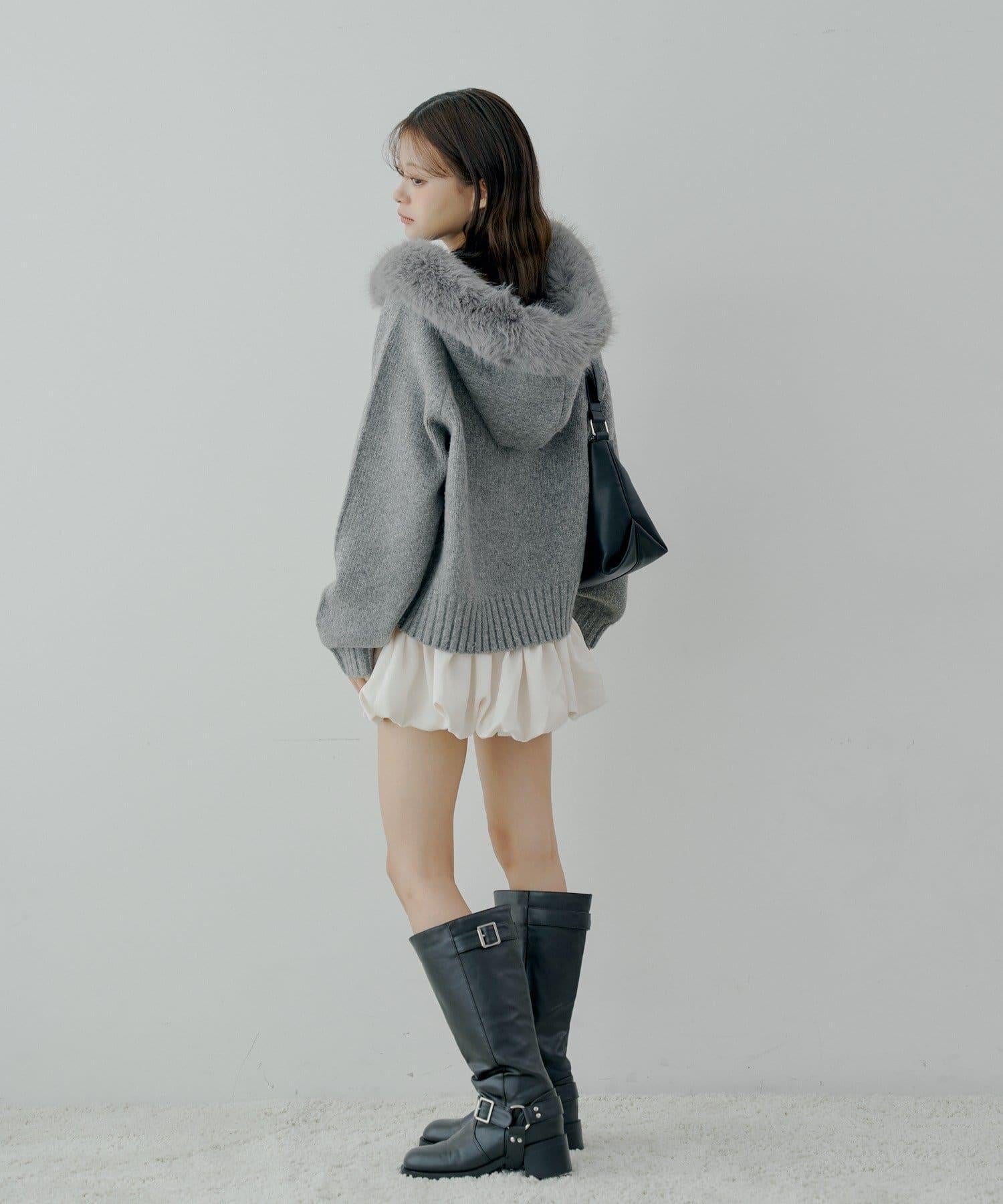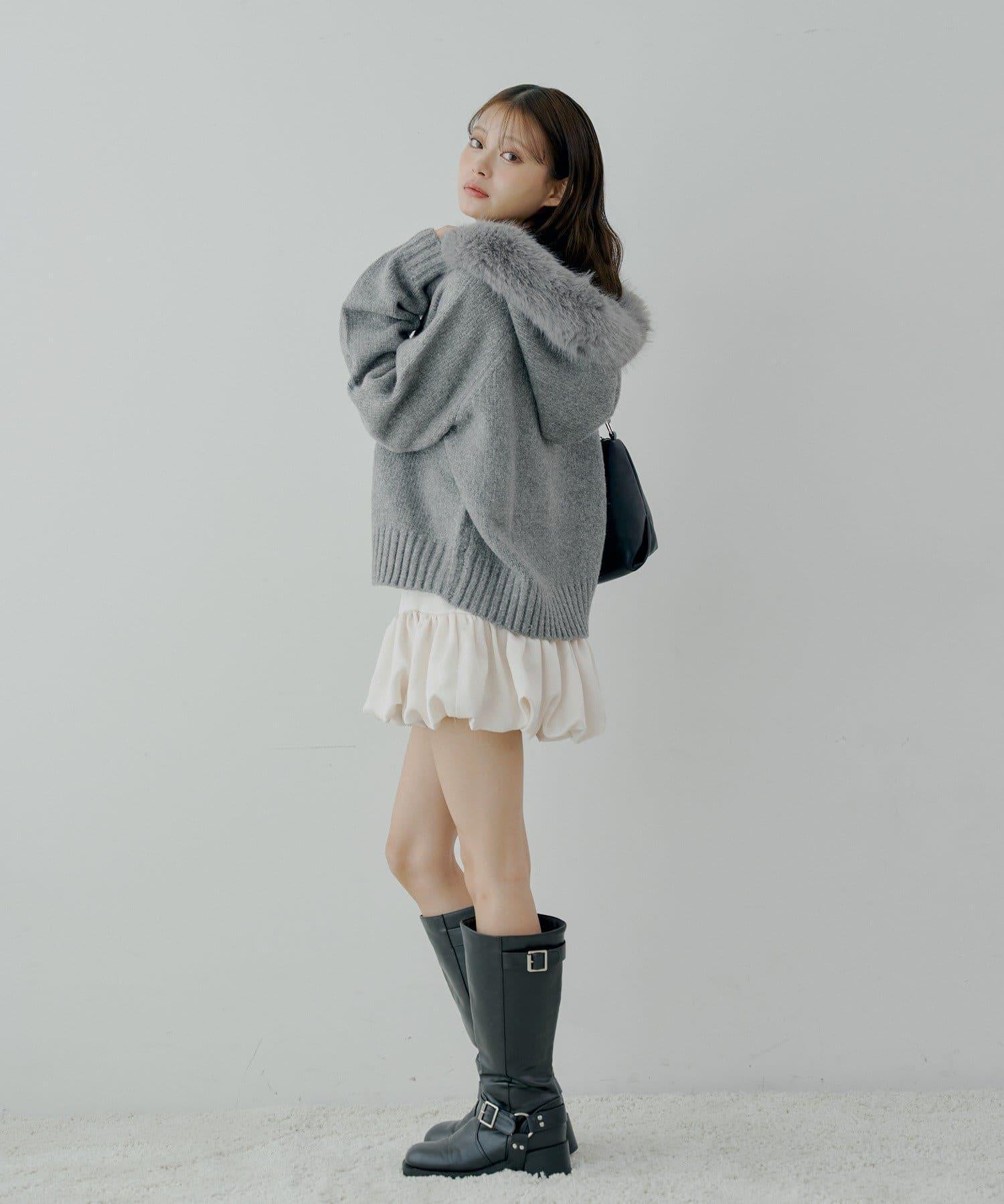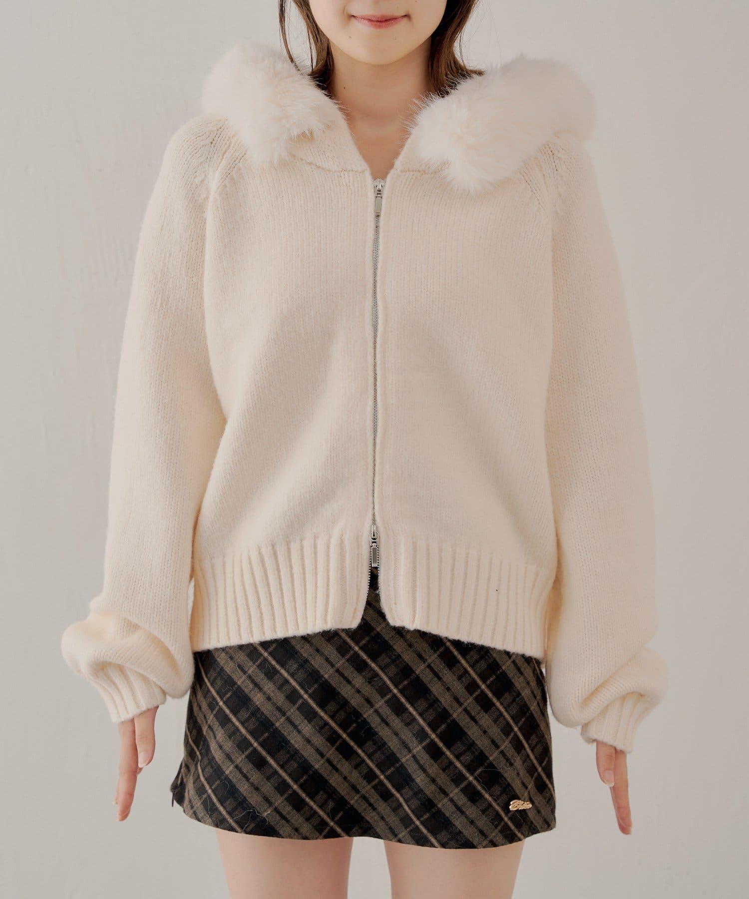寬鬆 W 型拉鍊針織開衫,配以蓬鬆毛皮,雙向設計。